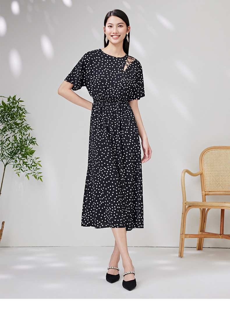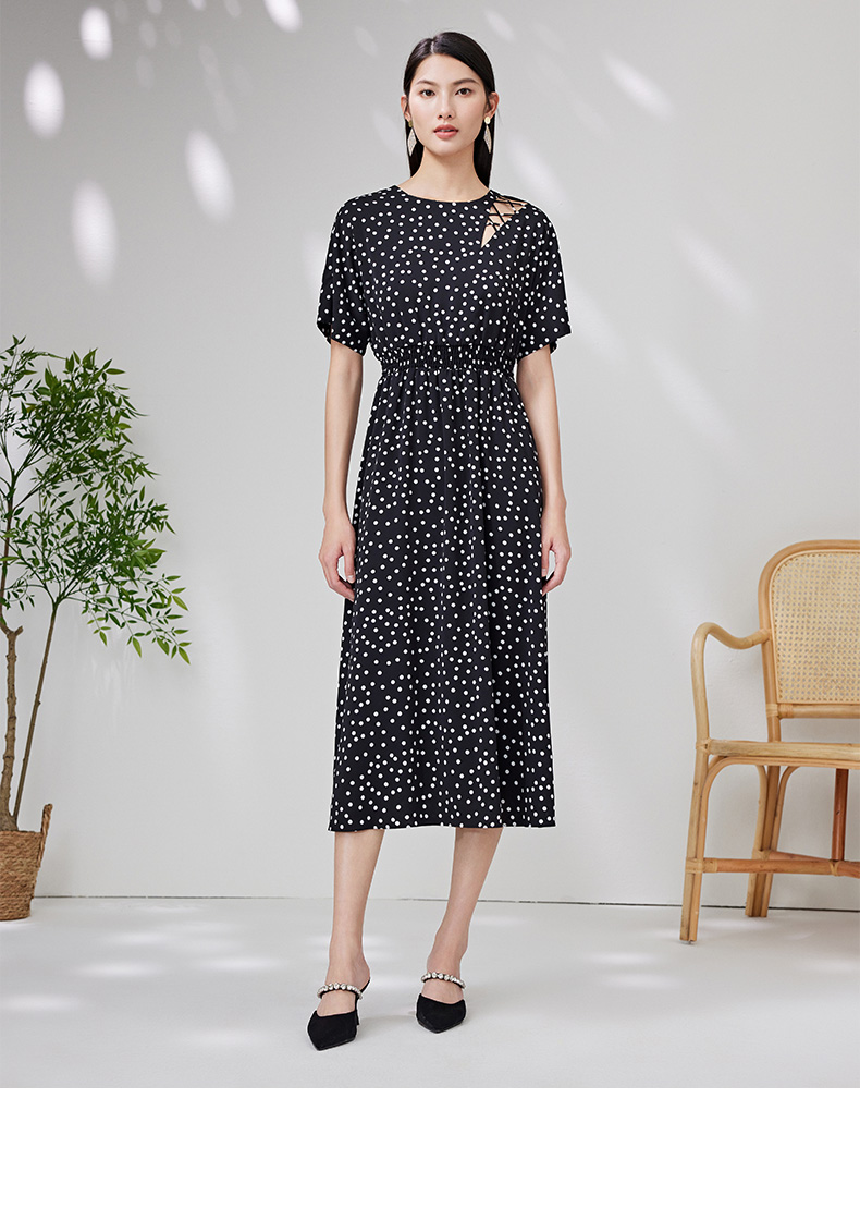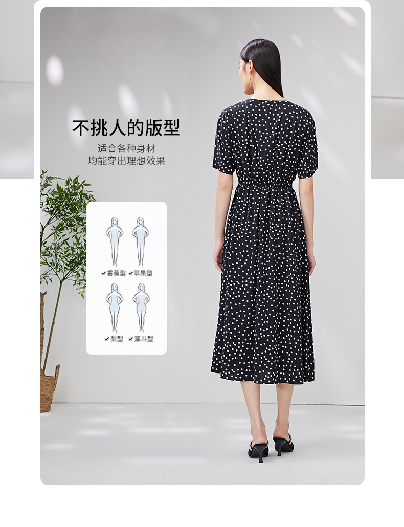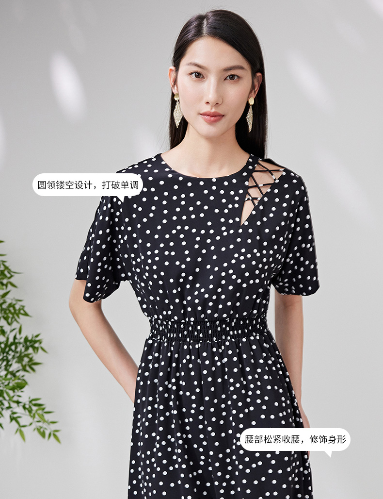 EITIE爱特爱夏季新款时尚气质复古波点修身连衣裙B2307130