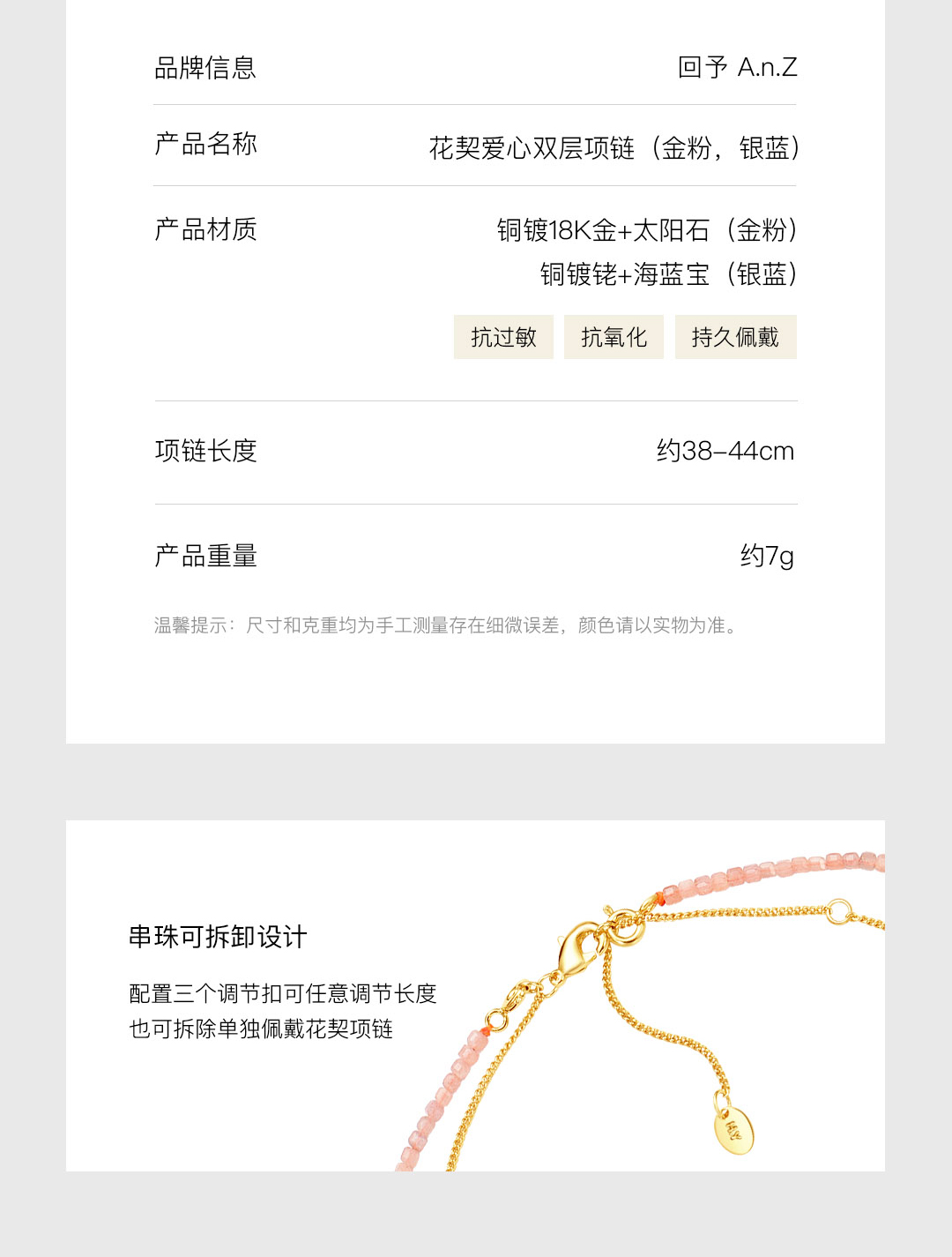 A.n.Z/回予 花契爱心双层项链双层挂链