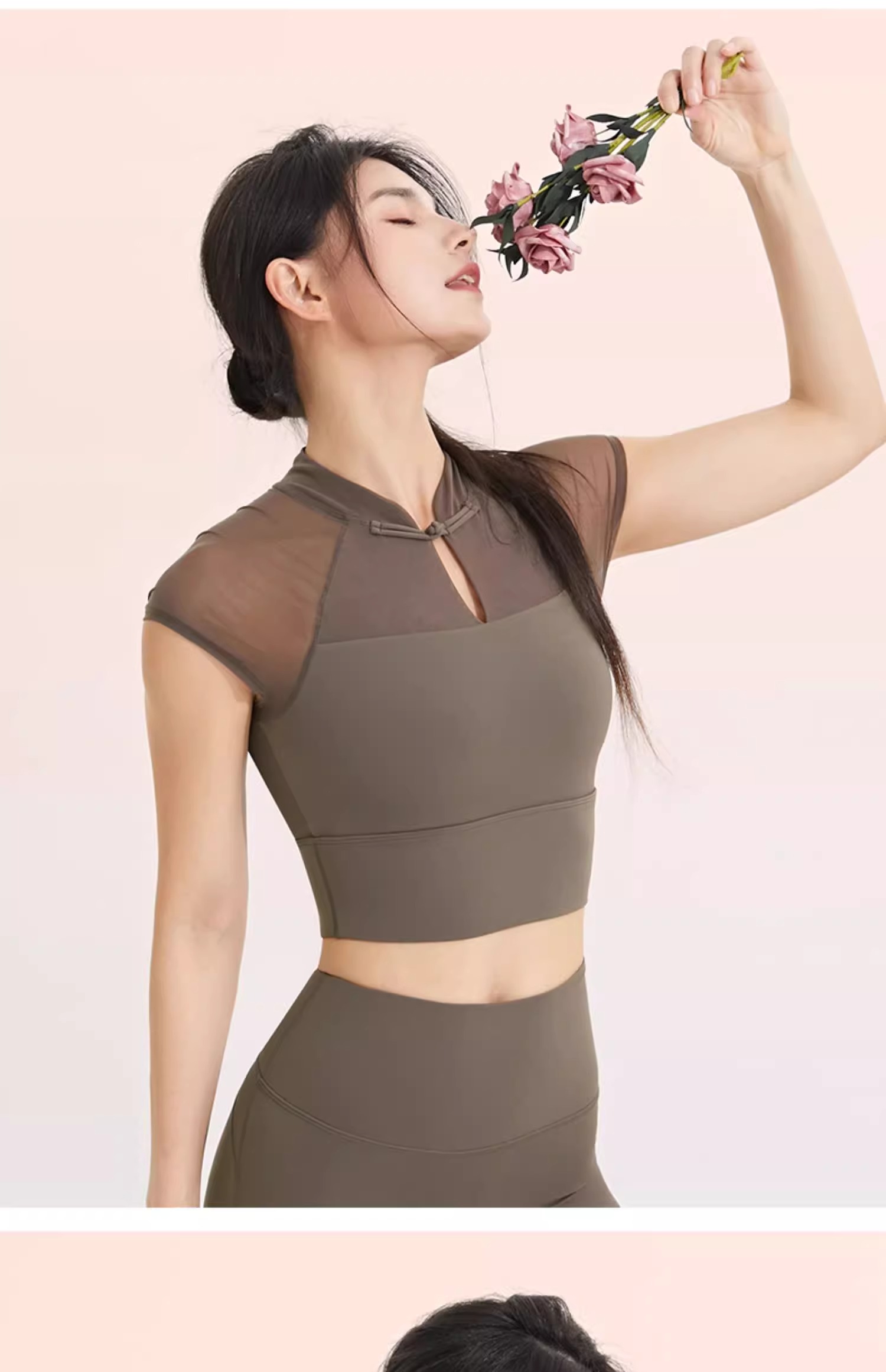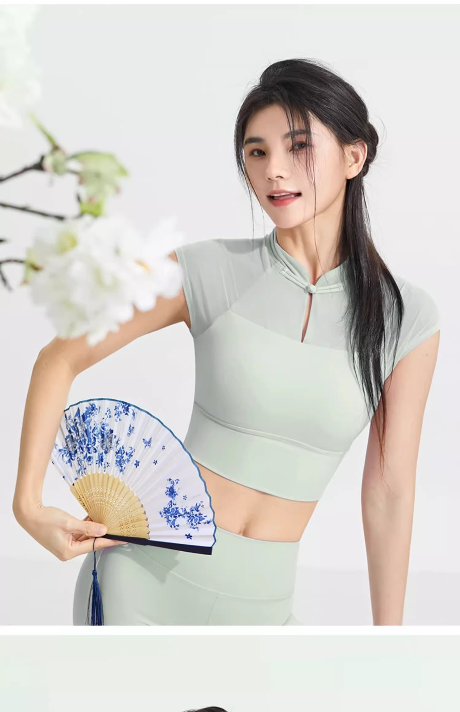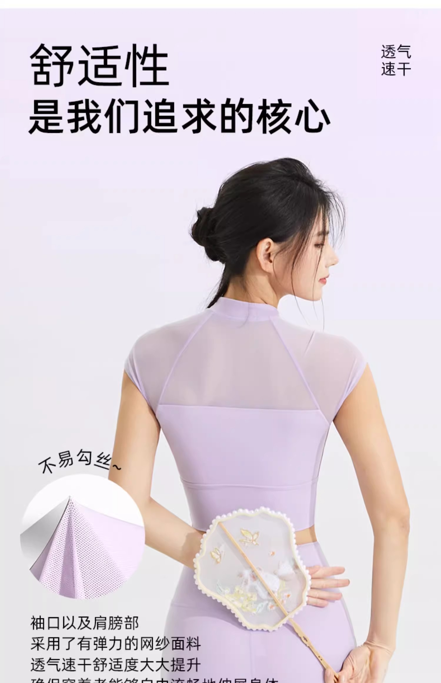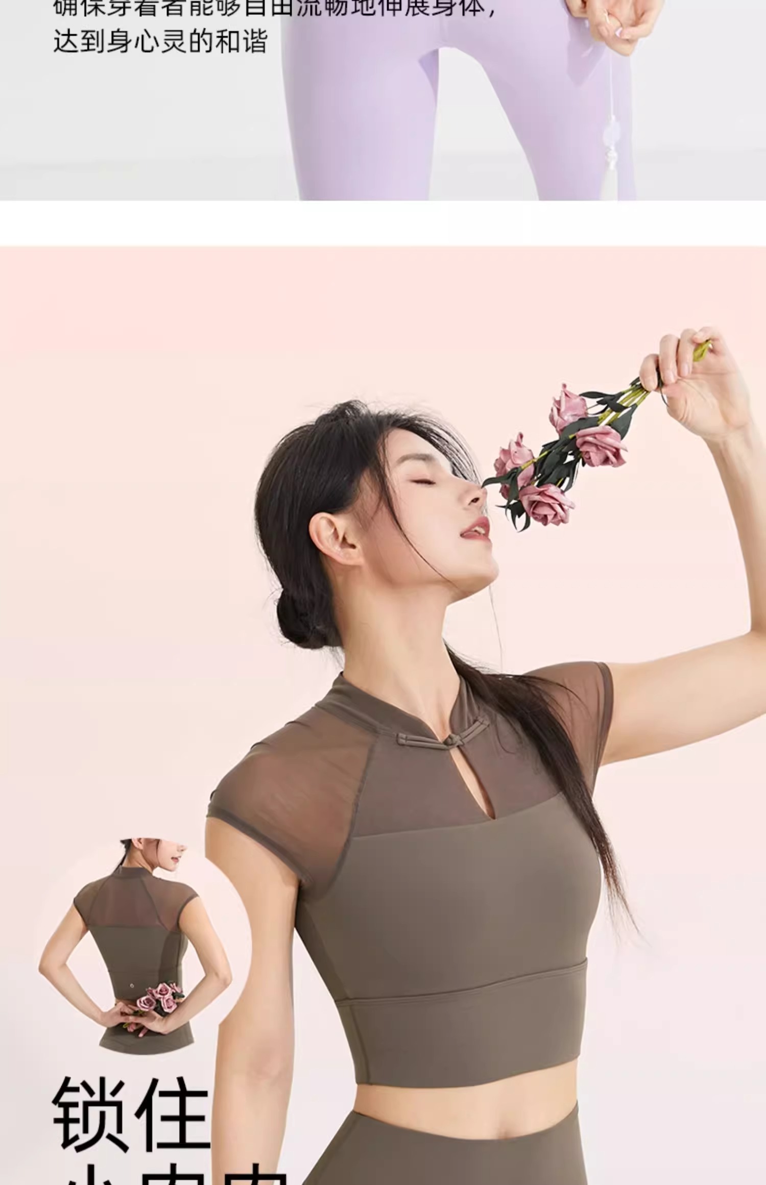跃牌【禅语梵心】国风网纱性感运动短袖内衣女春夏速干休闲t恤WX2558