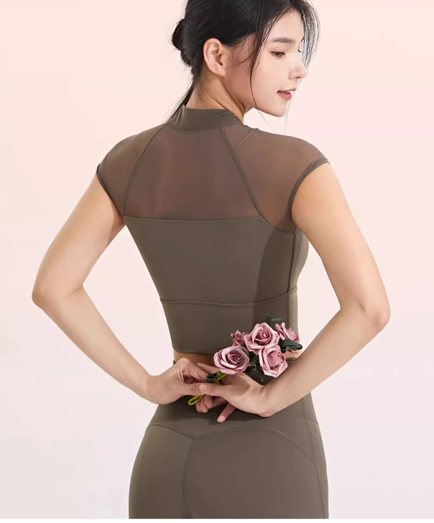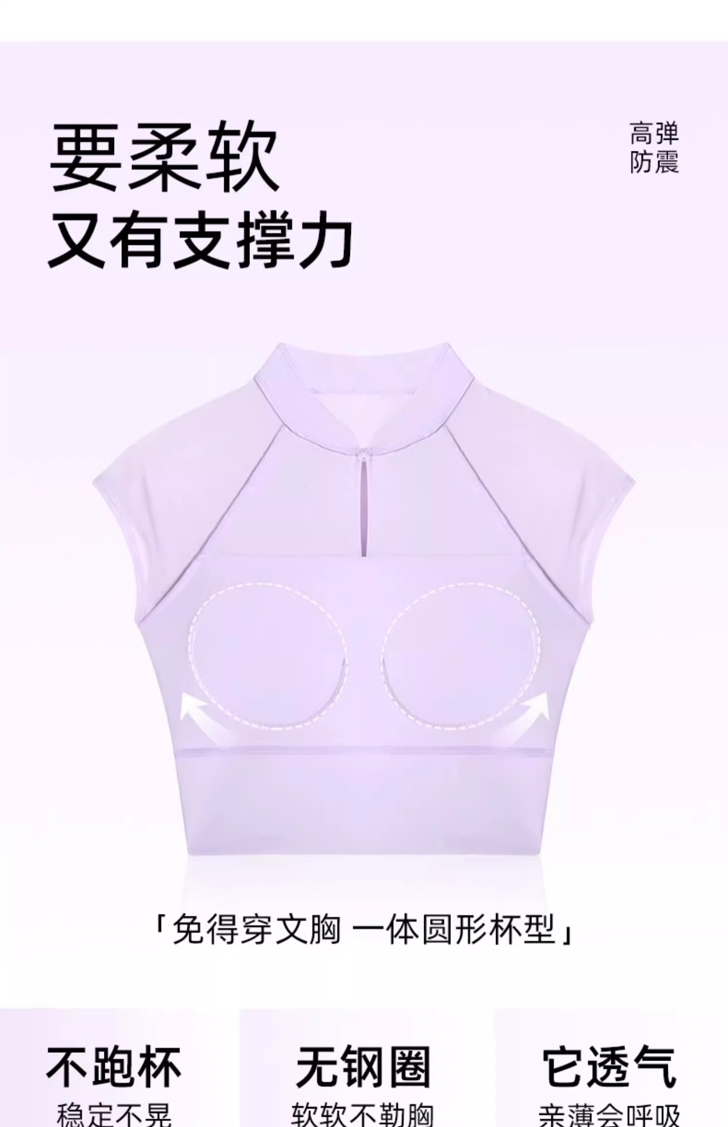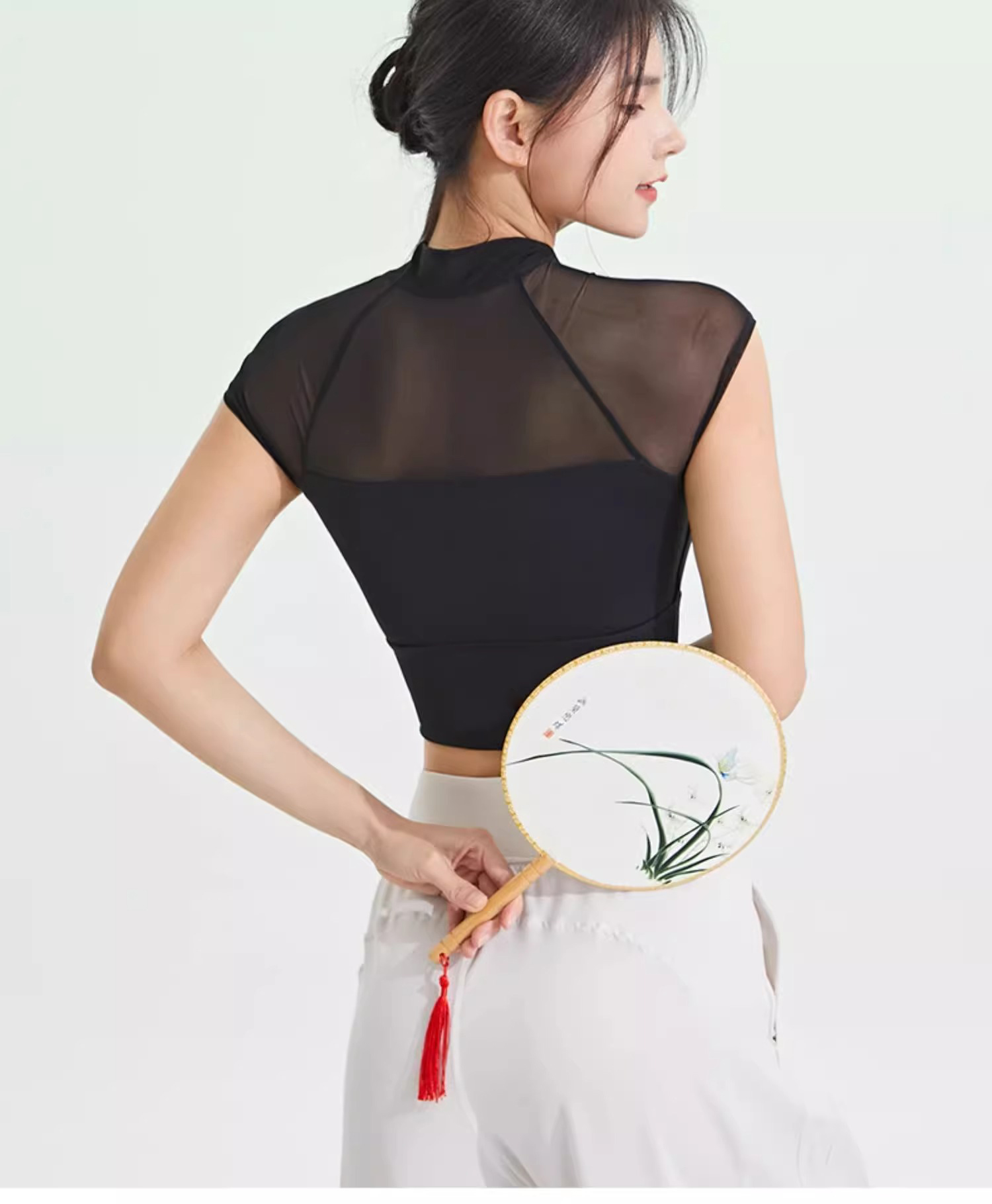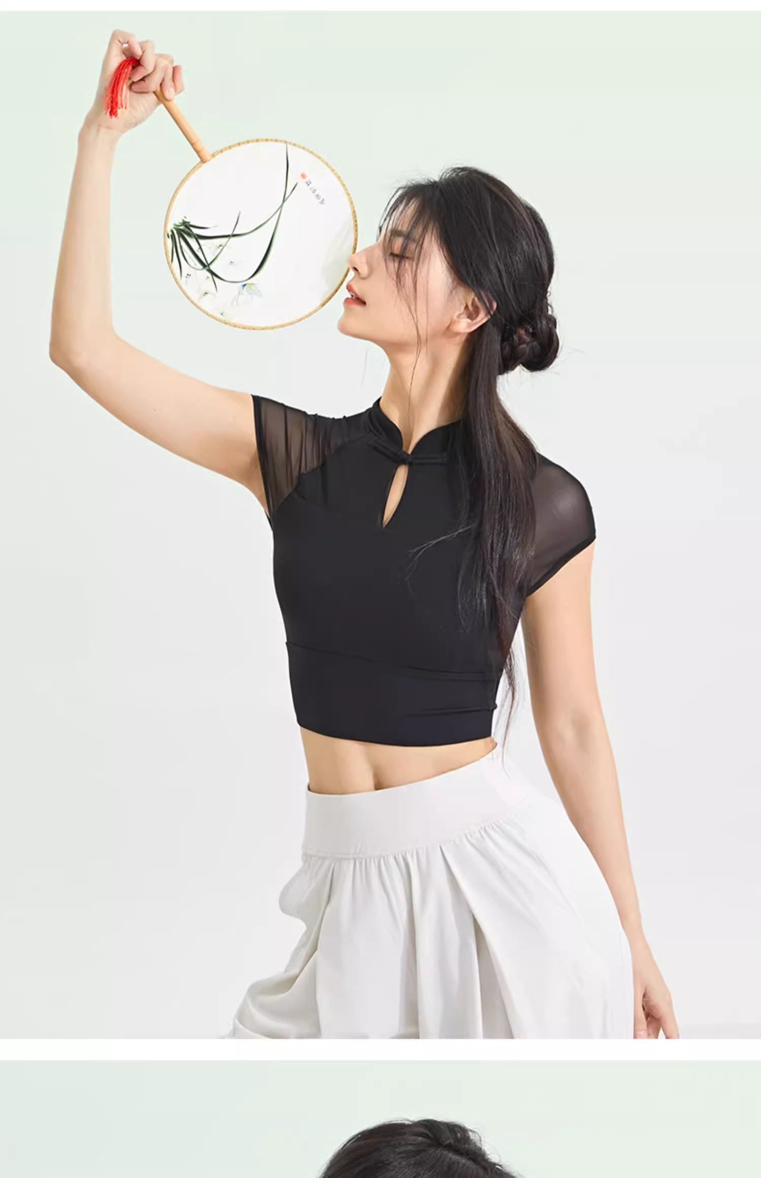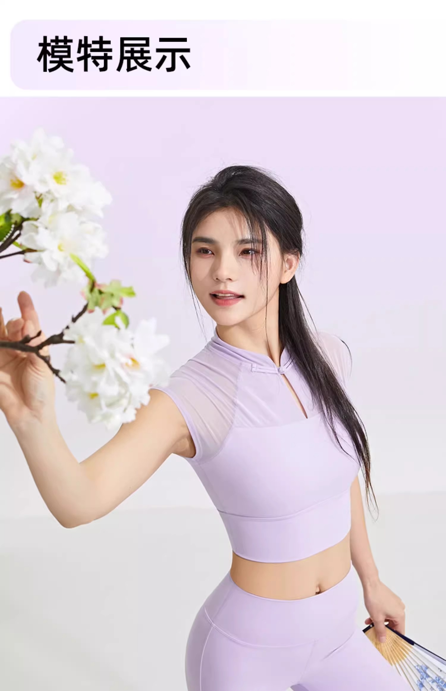 跃牌【禅语梵心】国风网纱性感运动短袖内衣女春夏速干休闲t恤WX2558