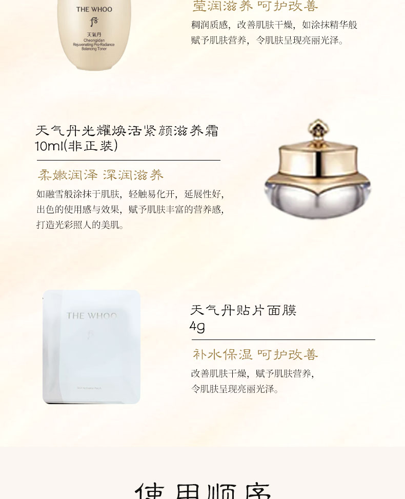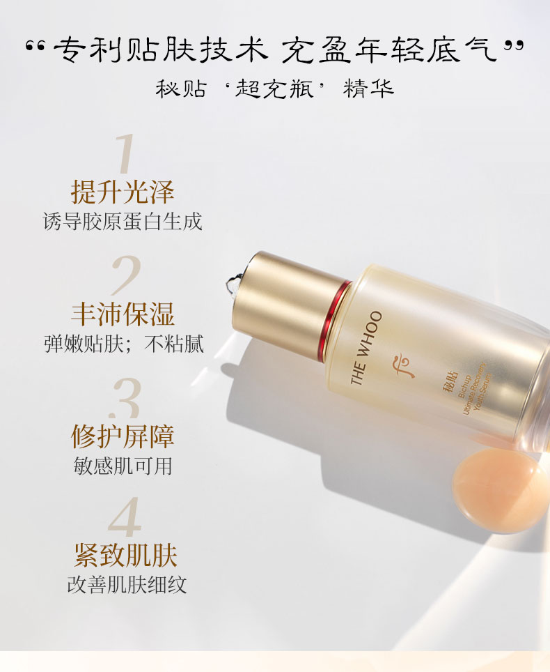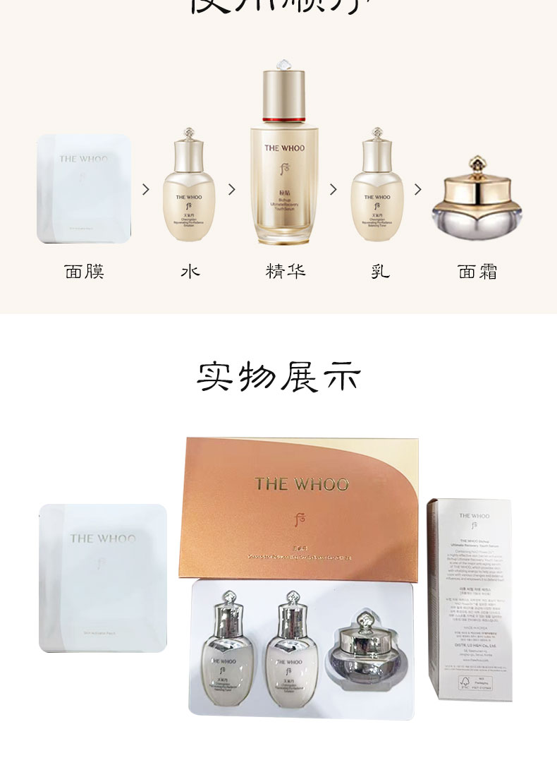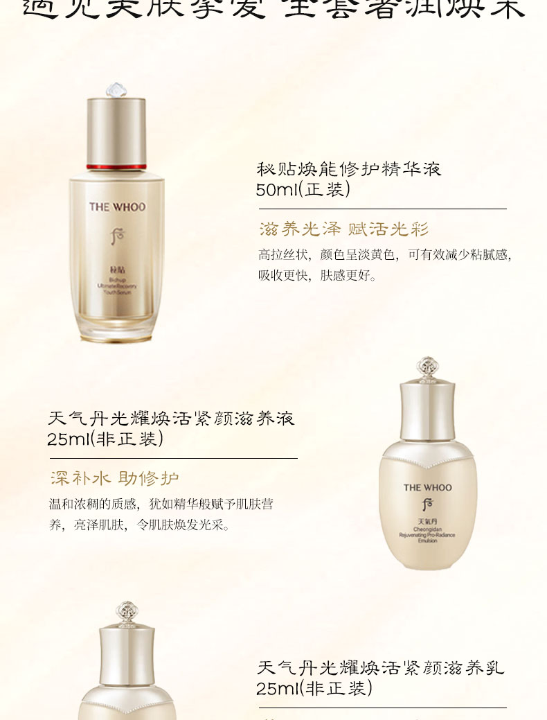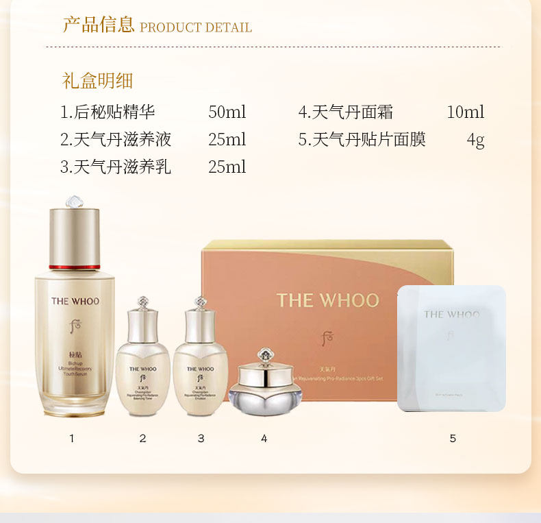 WHOO后 秘贴精华套(秘贴精华50ml+天气丹面霜10ml+天气丹贴片面膜4g+天气丹滋养液25ml+天气丹滋养乳25ml)【保税直发】