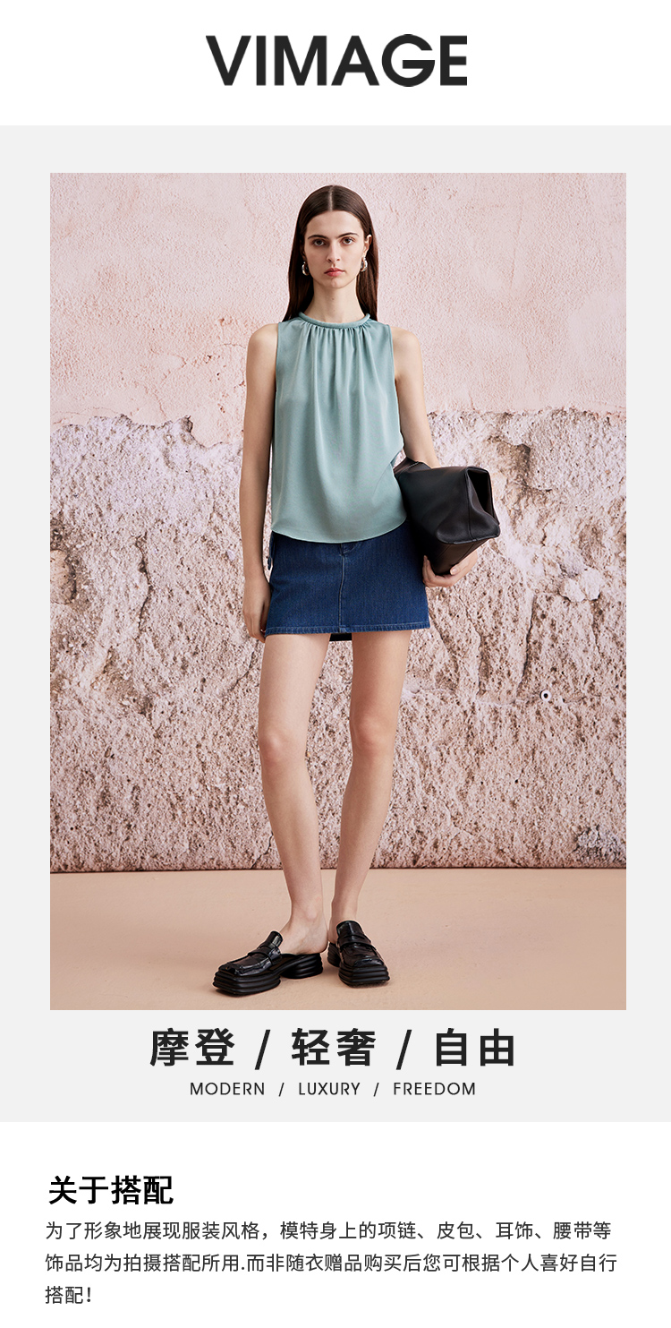 VIMAGE纬漫纪夏季新款气质显瘦轻薄无袖背心上衣V2113727