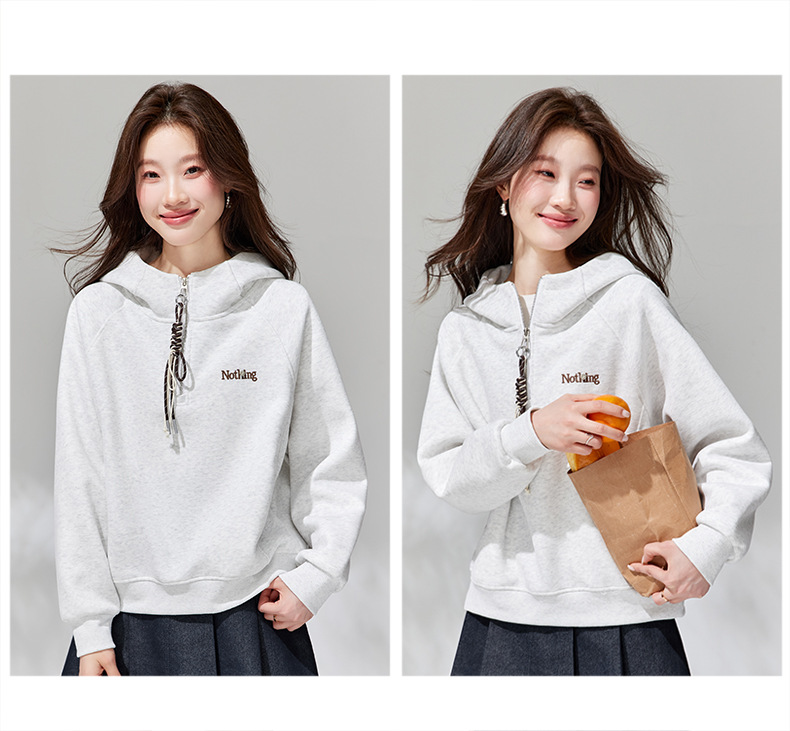 百媚生 短款连帽小个子卫衣休闲外套3165 商品图3