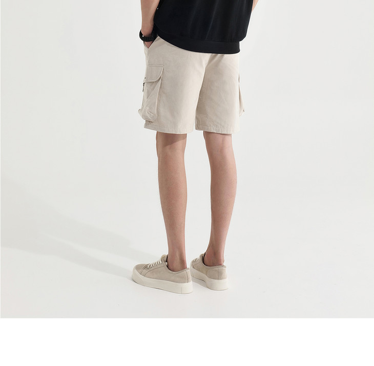 HIM漢崇 微弹休闲短袖T恤男士简约压花复古卡其圆领上衣 2026夏季