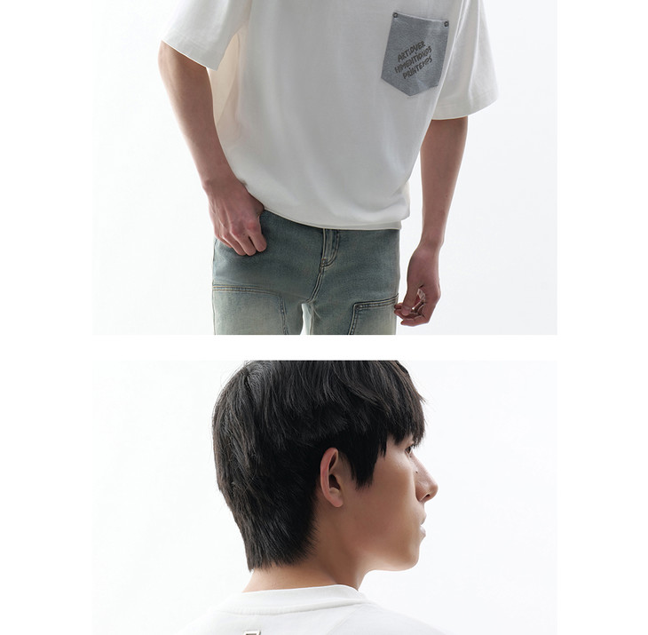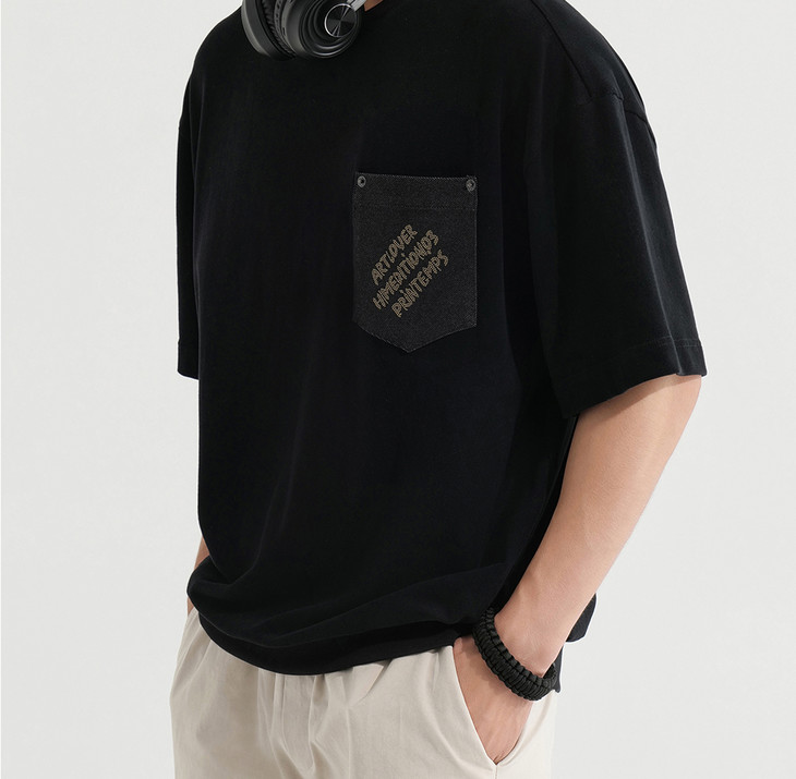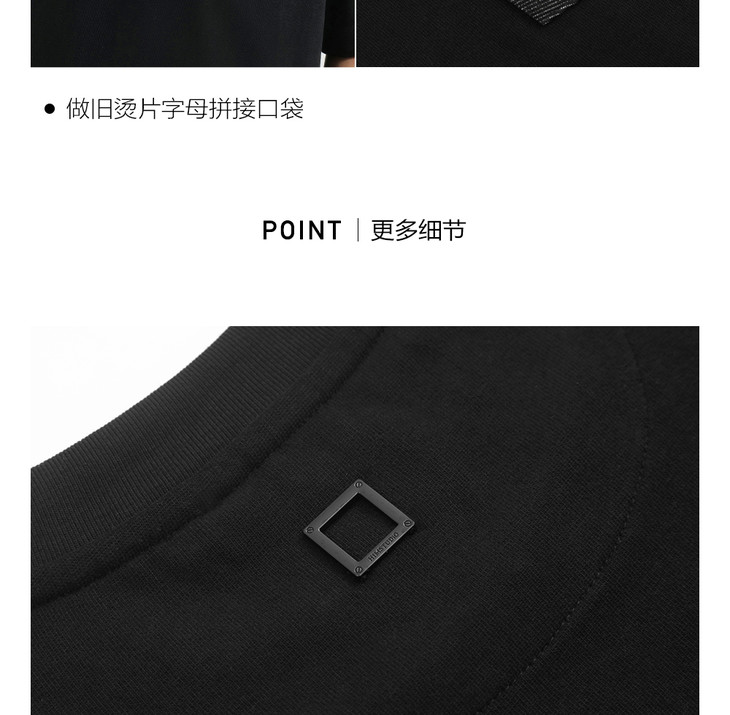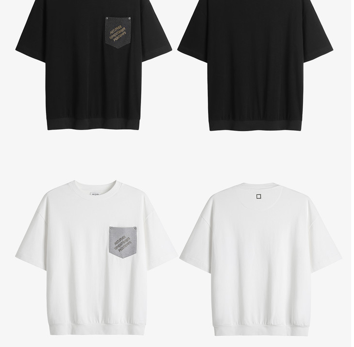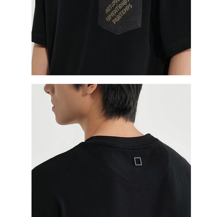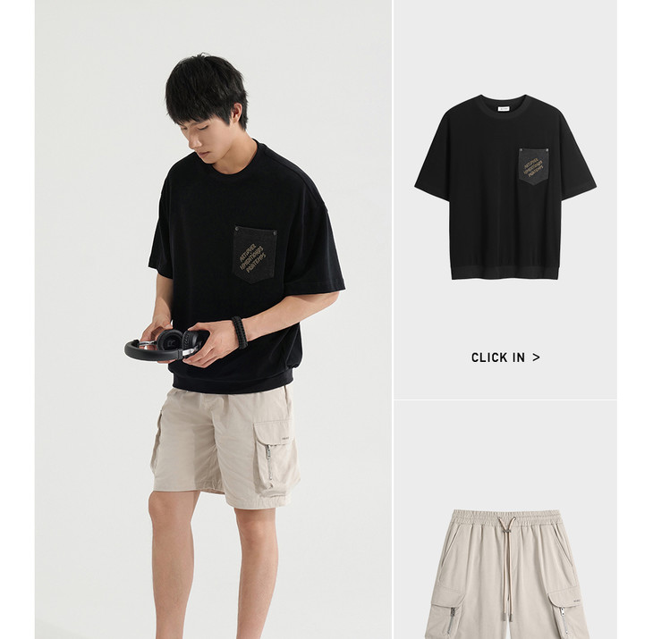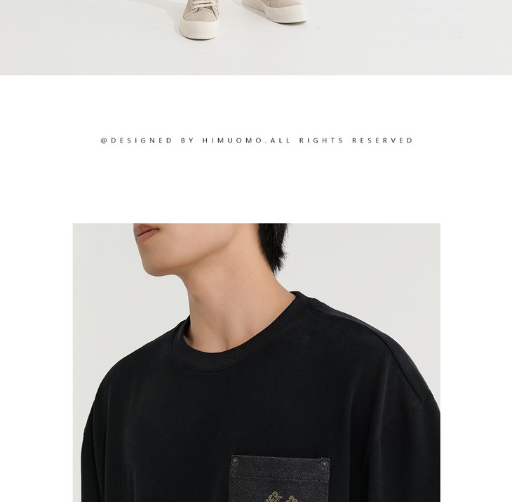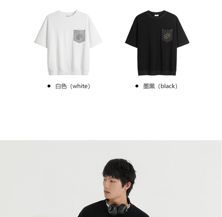 HIM漢崇 休闲宽松短袖卫衣简约拼接口袋舒适圆领上衣男 2026春夏