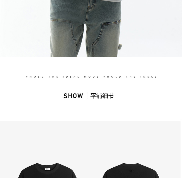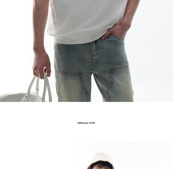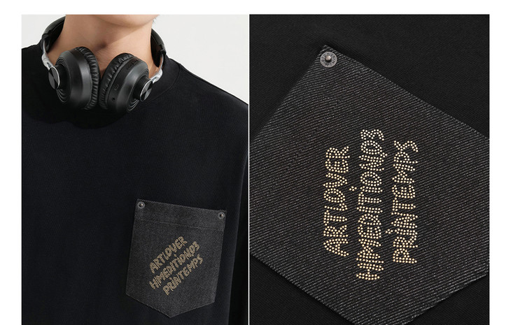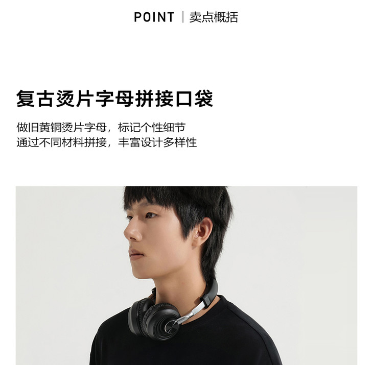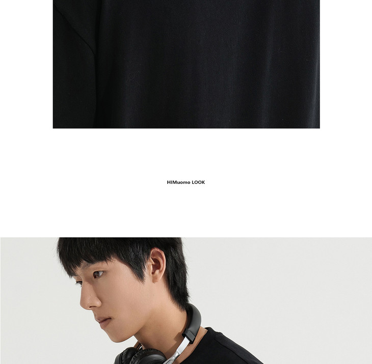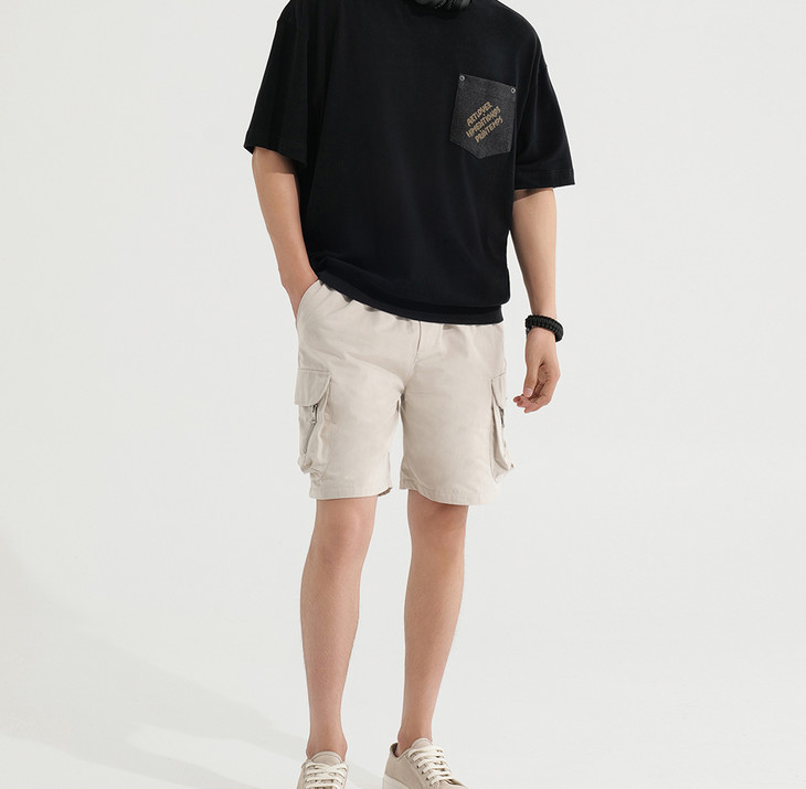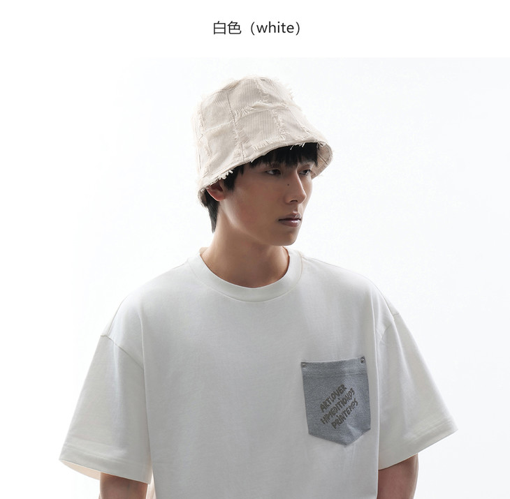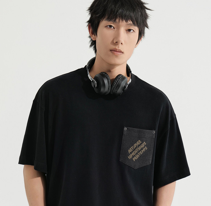 HIM漢崇 休闲宽松短袖卫衣简约拼接口袋舒适圆领上衣男 2026春夏