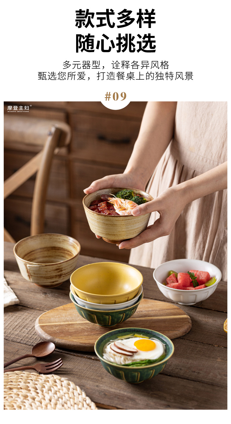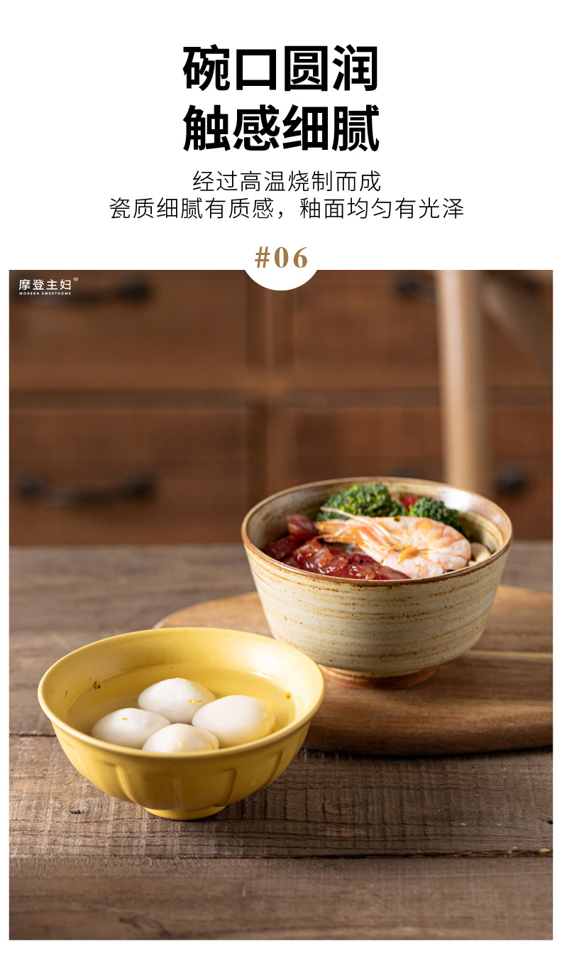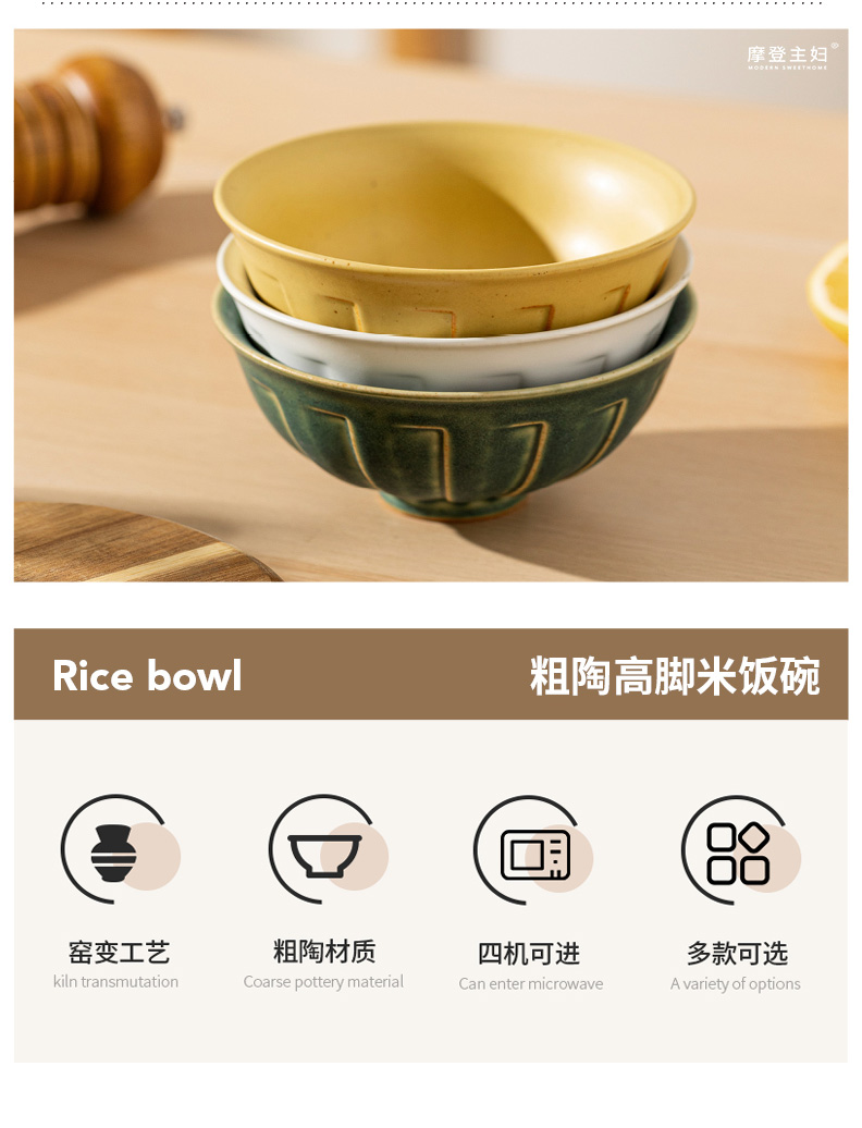 摩登主妇陶瓷米饭碗家用2025新款高颜值碗具个人专用斗笠吃饭小碗