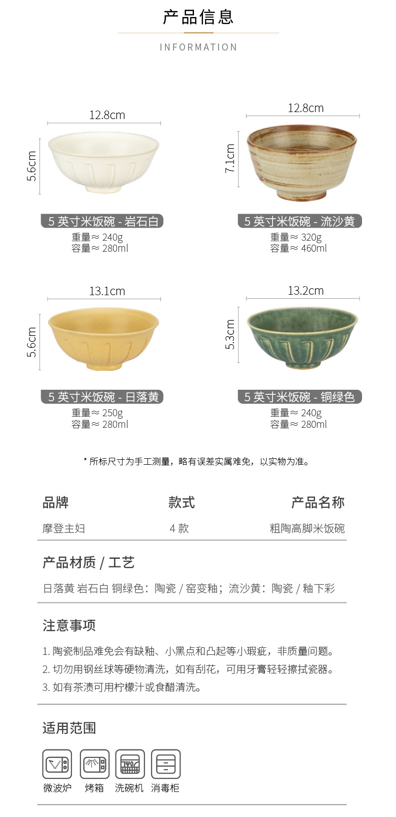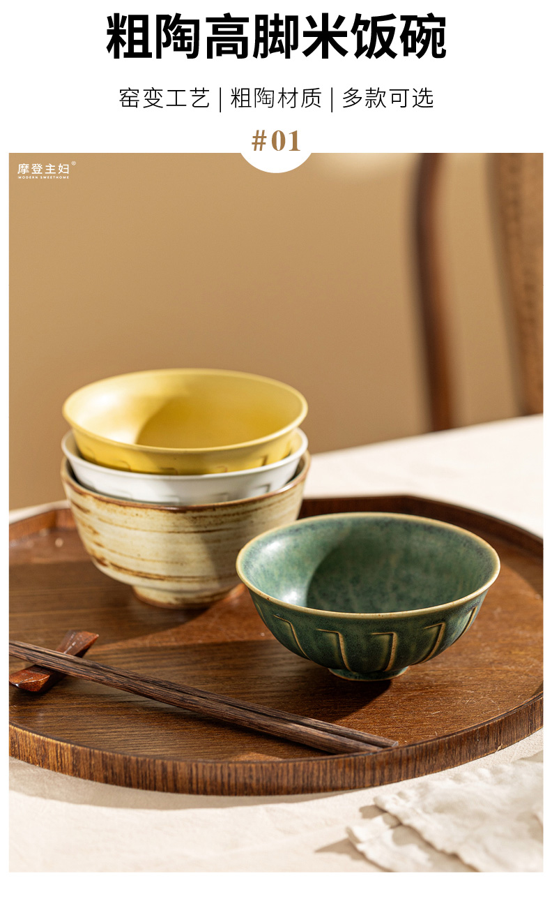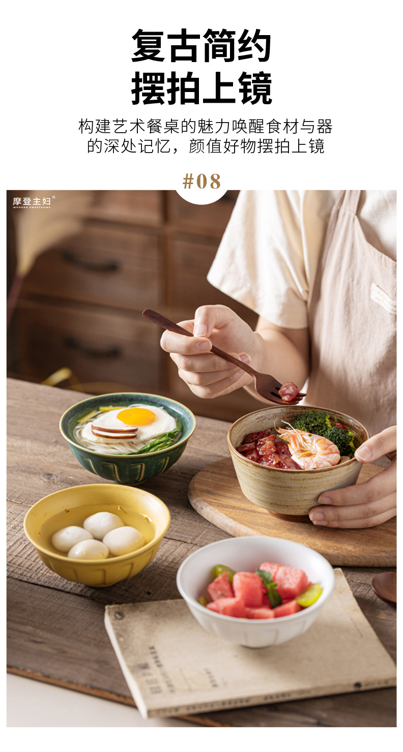 摩登主妇陶瓷米饭碗家用2025新款高颜值碗具个人专用斗笠吃饭小碗