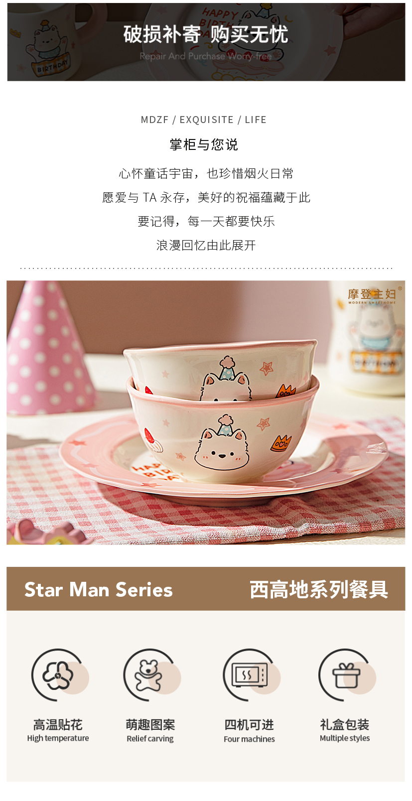 摩登主妇新年生日礼物女生送闺蜜新婚餐具套装一人食漂亮碗具礼盒