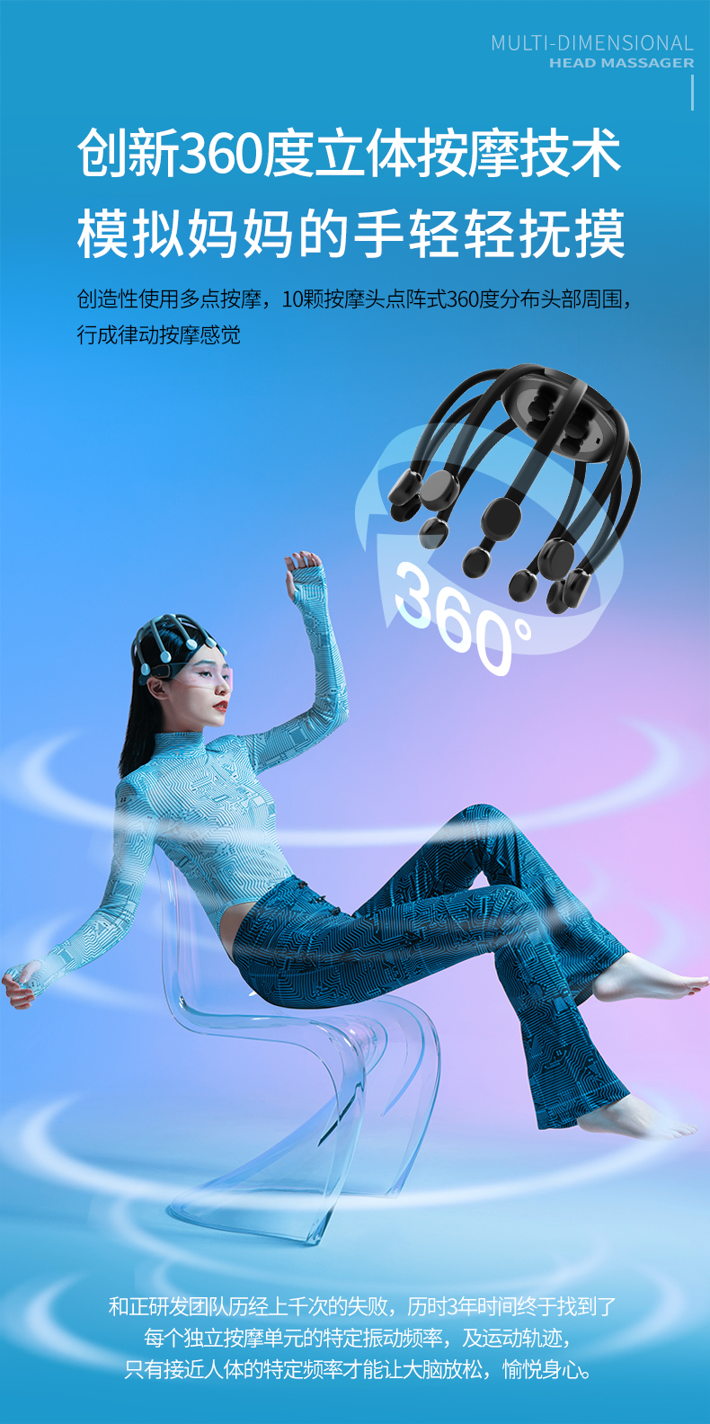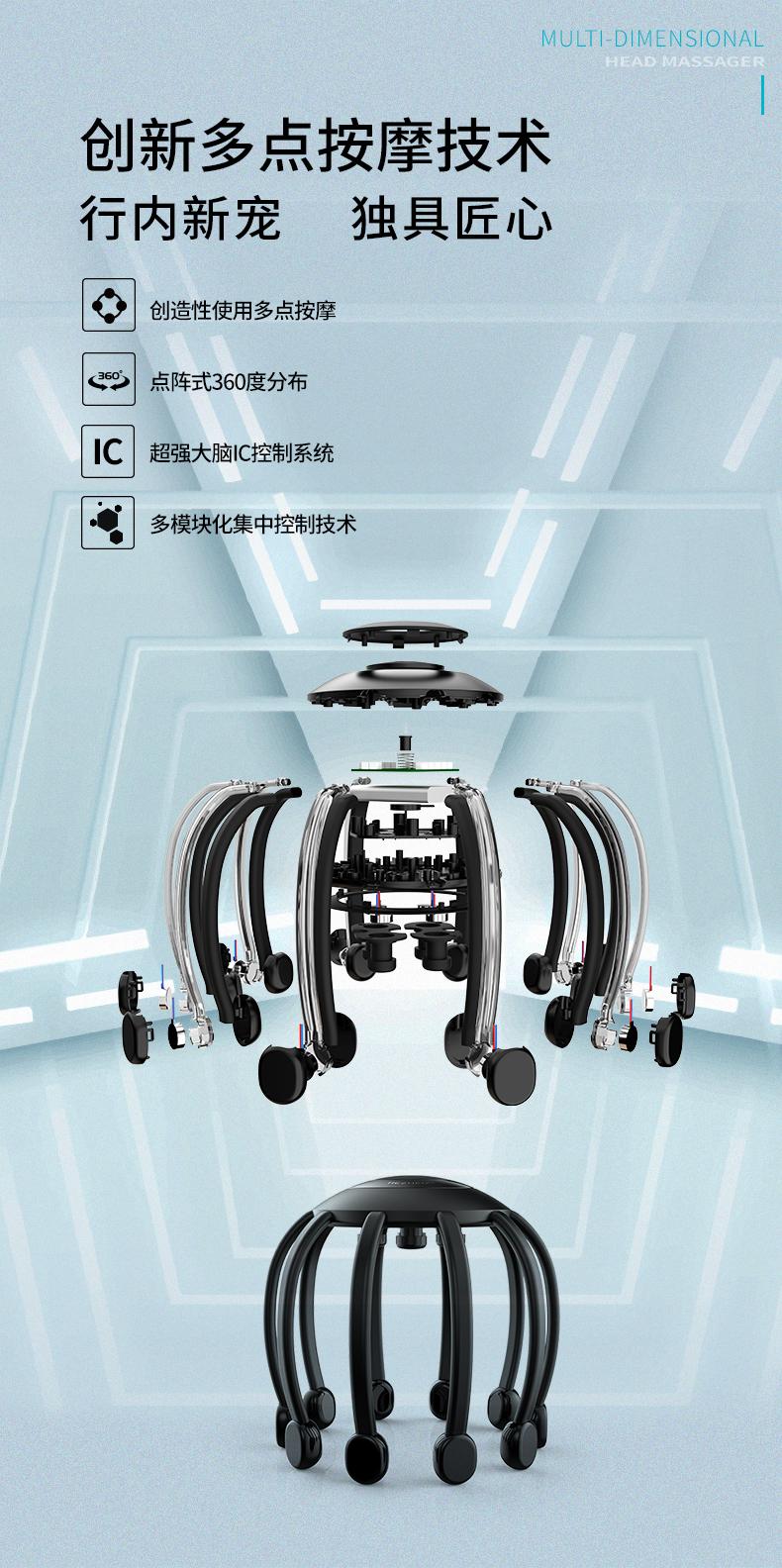 『“大脑放空”解压神器』多维度头部八爪按摩仪10个独立按摩头模拟真人10指智能定时省心安全