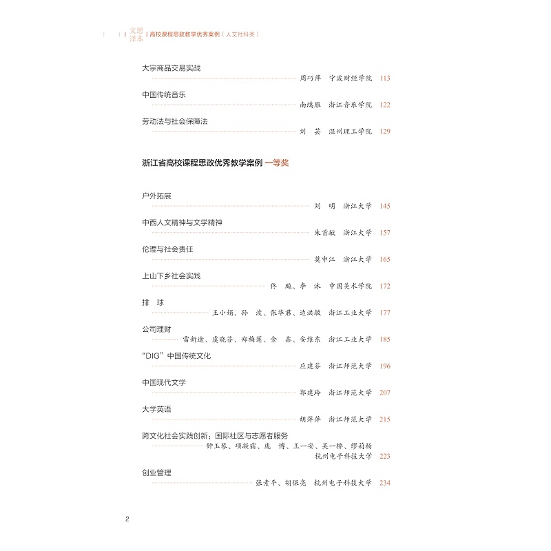 文思泽本:高校课程思政教学优秀案例(人文社科类)/浙江省高校课程思政教学改革联盟/责编:郑成业/李晨/浙江大学出版社