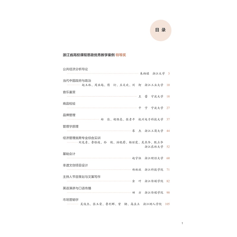 浙江省高校遵循教育教学规律和人才培养规律,引导广大教师不断将课程思政建设走向深处,形成了百花齐放的课程思政实践场景,涌现出大批课程思政教学案例。本书从全省优秀案例中选鉴50个教学案例,集结成册,以学科专业为依托,用超越代际的科学方式,展现了经、管、文、法等不同学科在传授知识与立德树人方面进行的探索和实践,彰显了广大教师践行立德树人的初心和使命。本书不仅为“课程思政”真正落实于各学科各专业提供了可借鉴的参考,同时对促进浙江省高校课程思政体系建设具有积极意义,其效能可辐射全国。