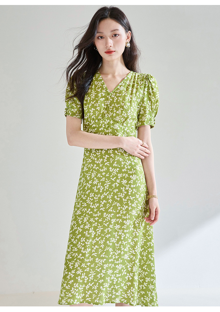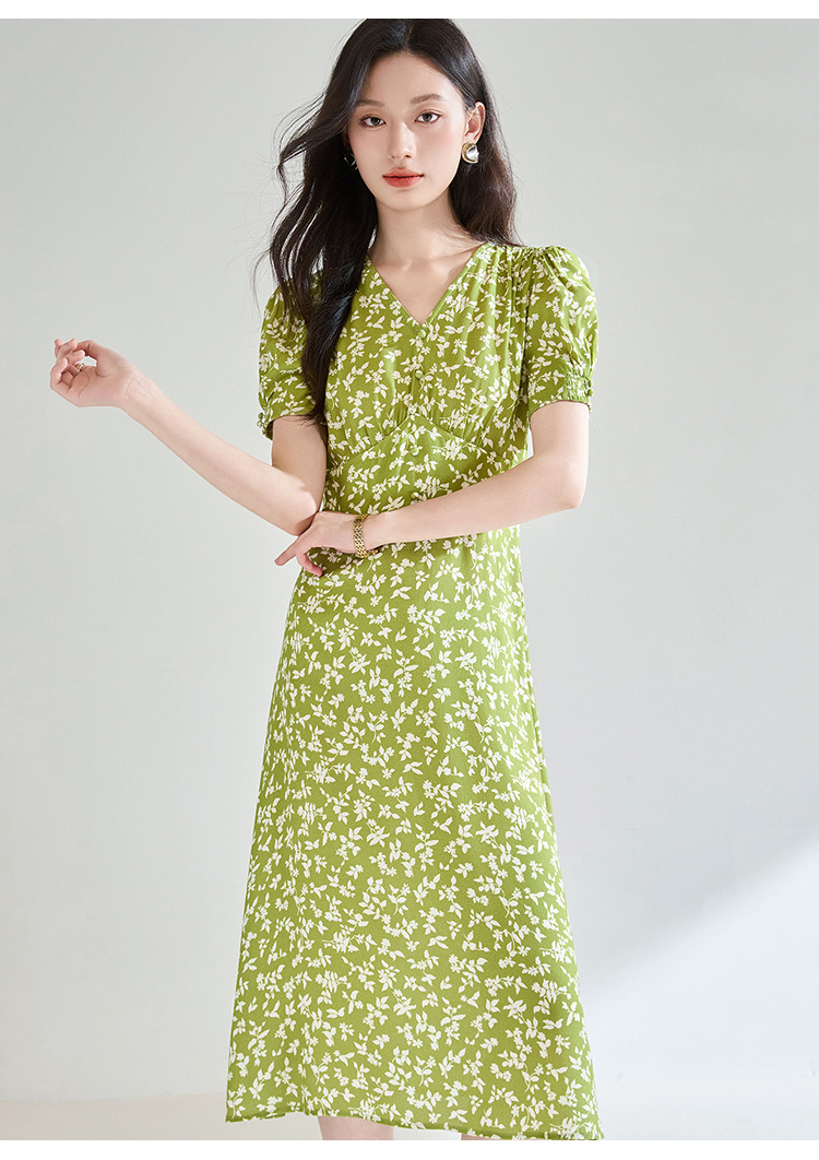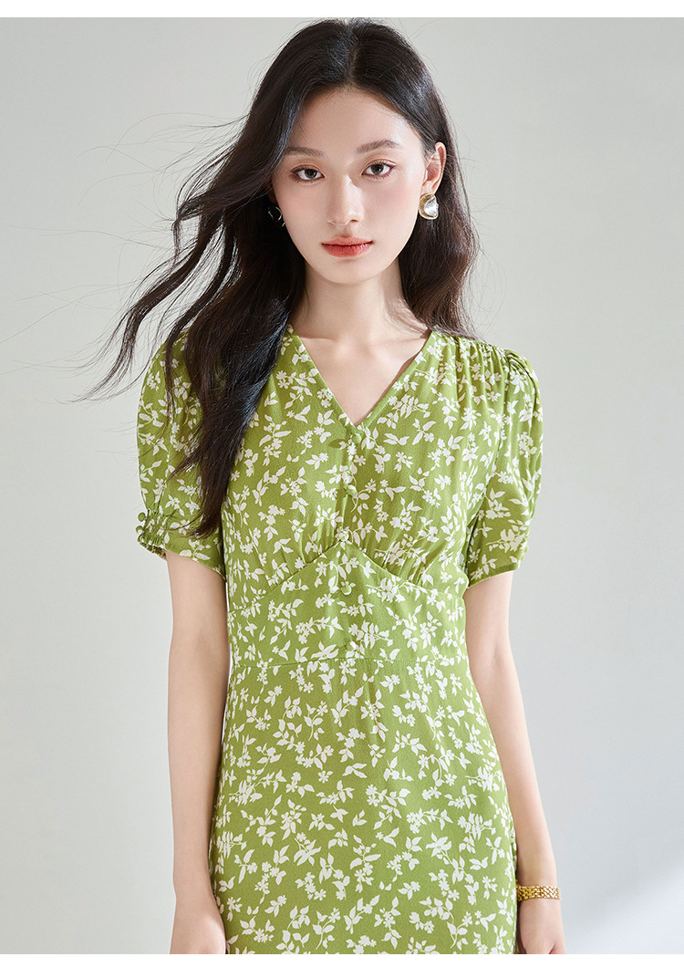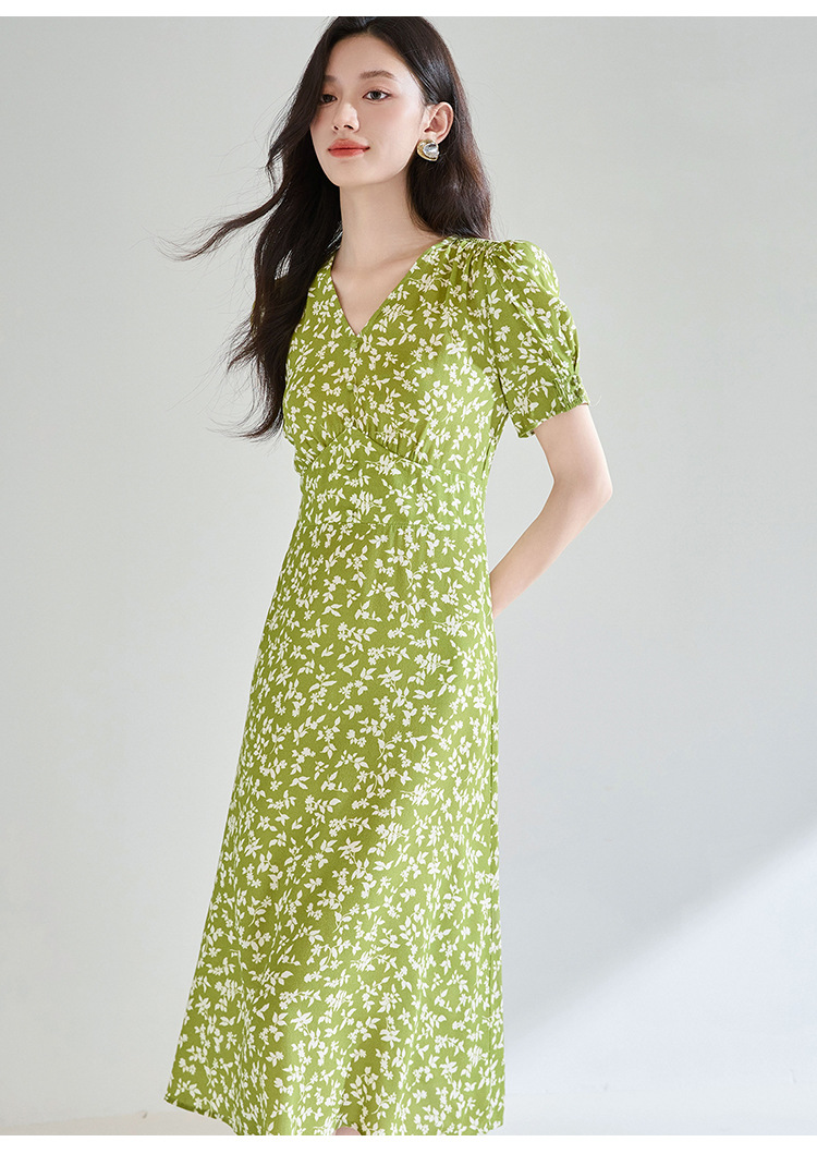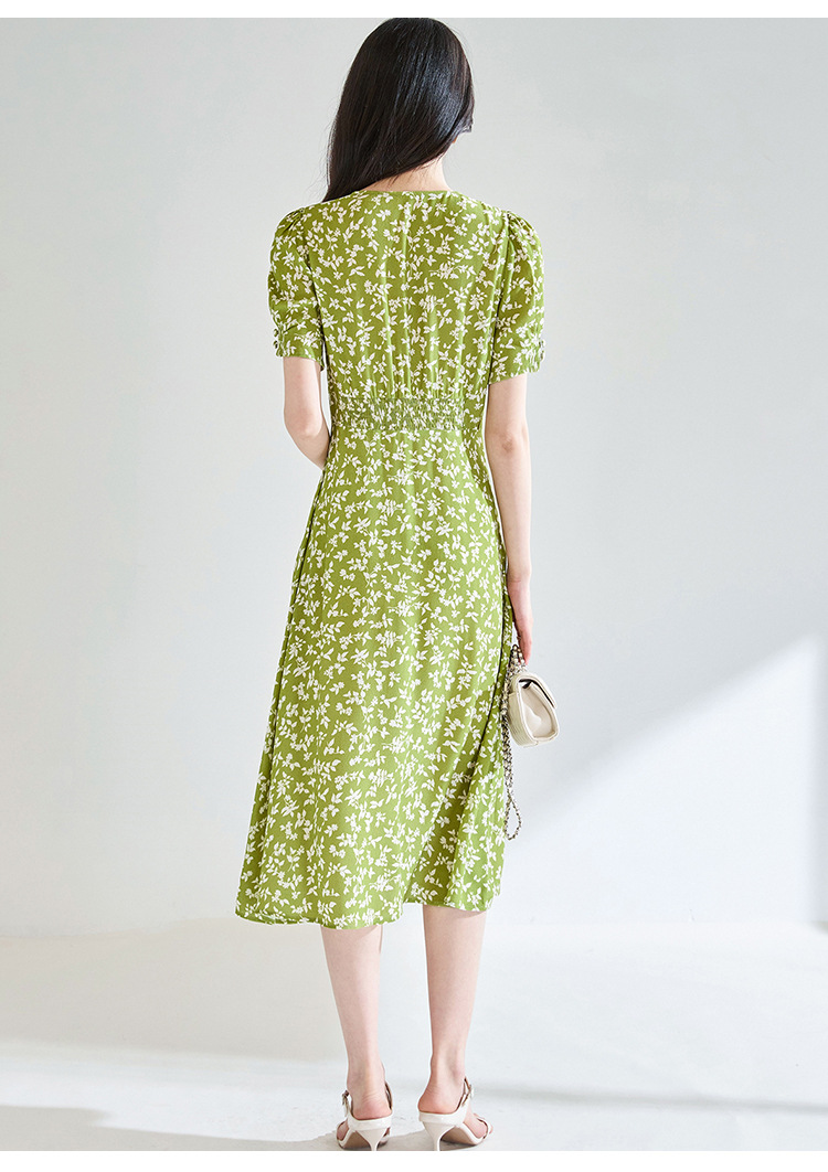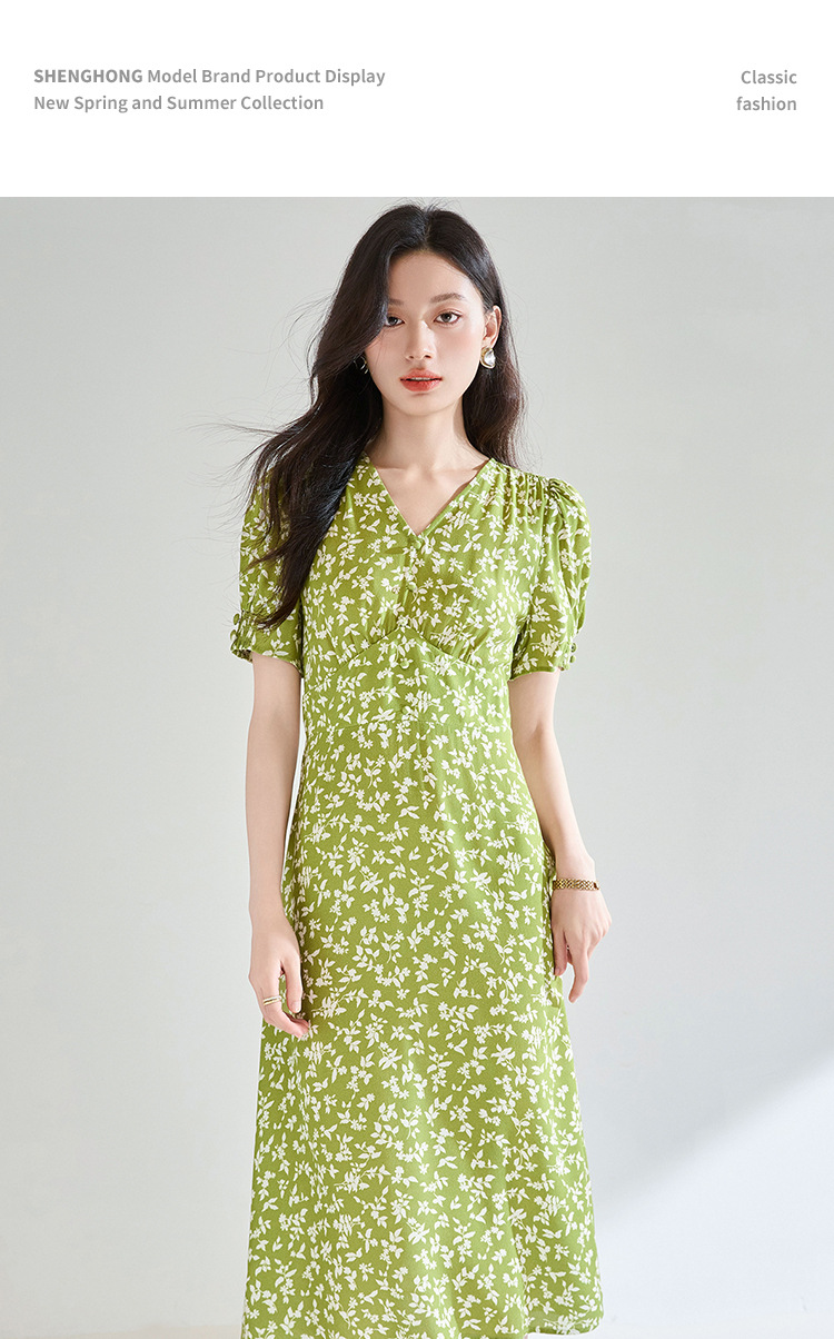 「高货sh」全新升级【铂金会员293/天猫399/差价106】(05046)洛诗琳夏季牛油果绿碎花茶歇裙2025收腰显瘦V领碎花连衣裙