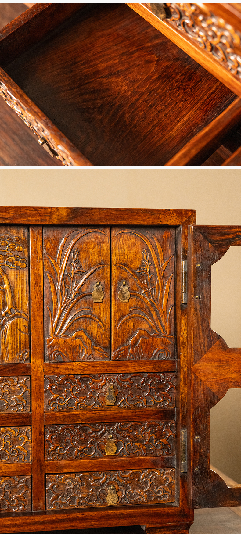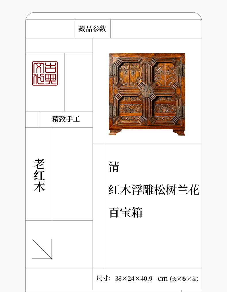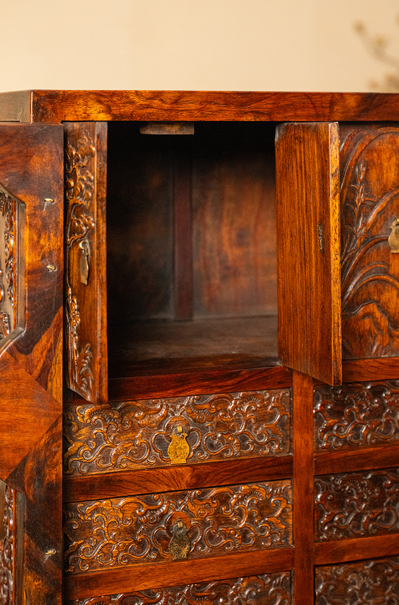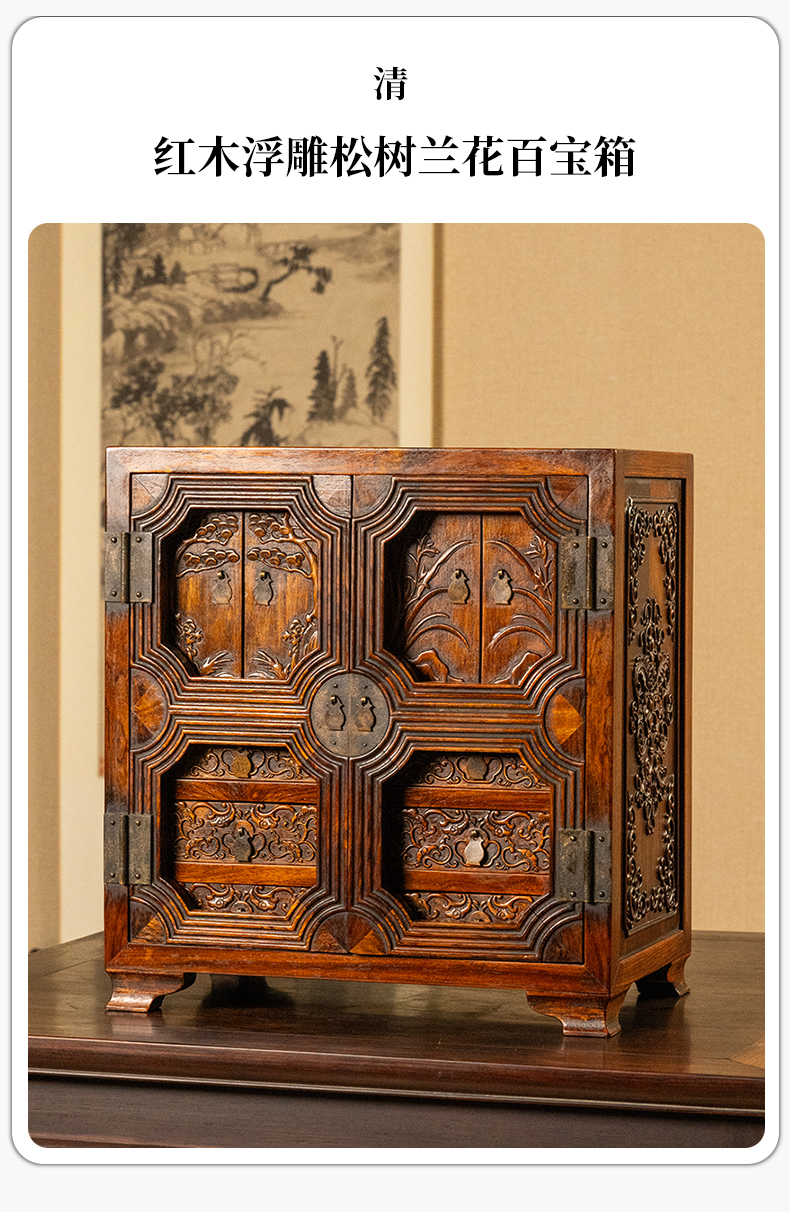 清 红木浮雕松树兰花百宝箱