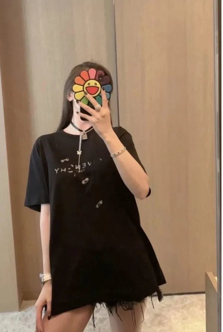 GIV情侣新款视觉陷阱错位字母logo涂鸦印花短袖T恤