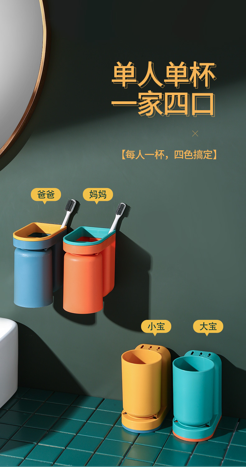 春艺轻奢杯洗漱套装免打孔家用挂墙式收纳套装牙刷置物架-M仓