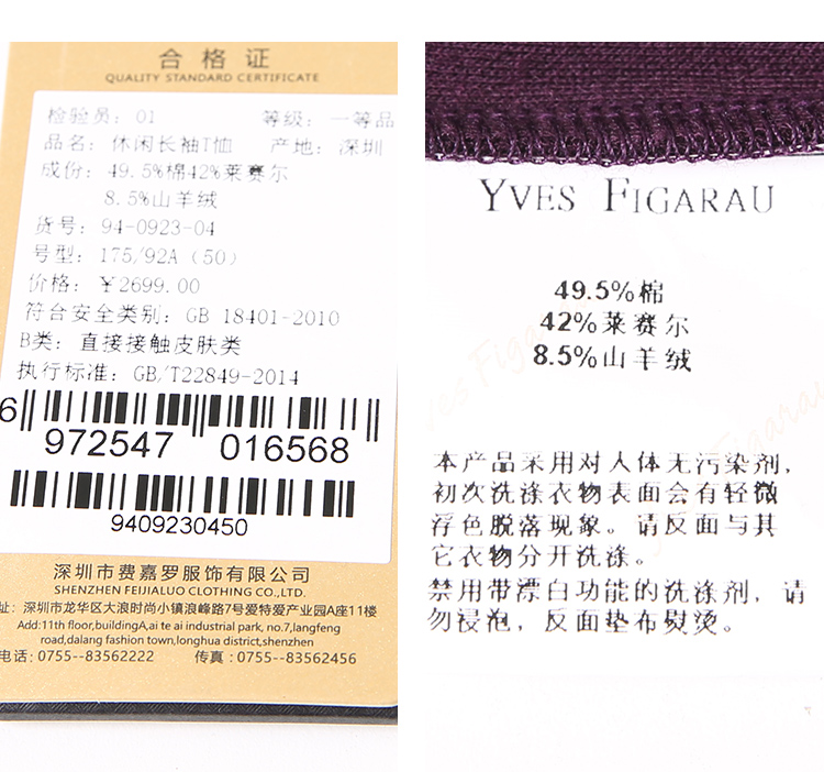 YvesFigarau伊夫·费嘉罗秋冬新款休闲长袖T恤940923
