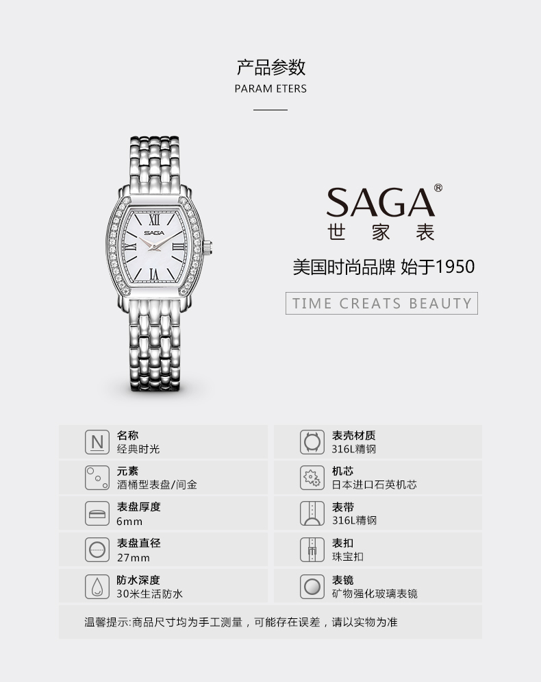 SAGA世家女士手表酒桶表腕表简约时尚潮流