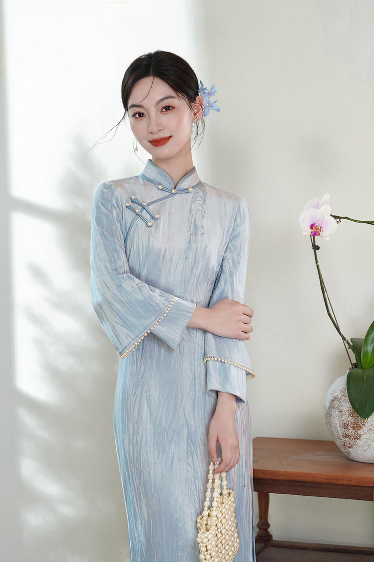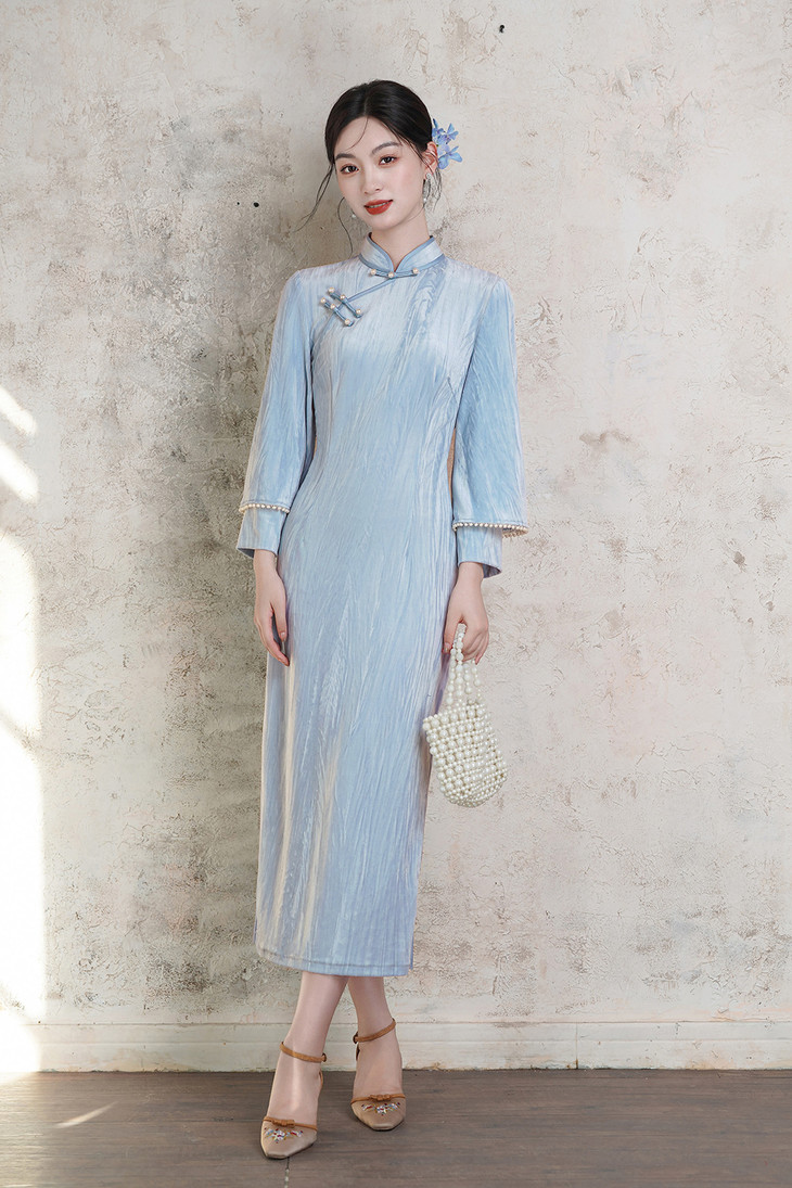 2025年秋季新款改常蕾丝包边年轻款丝绒倒大袖旗袍XL1612