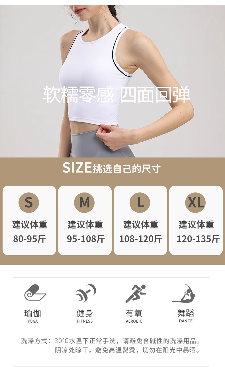 跃牌【安琪拉系列】新款运动背心女健身一体固定杯训练高强度防震瑜伽背心BX-5006