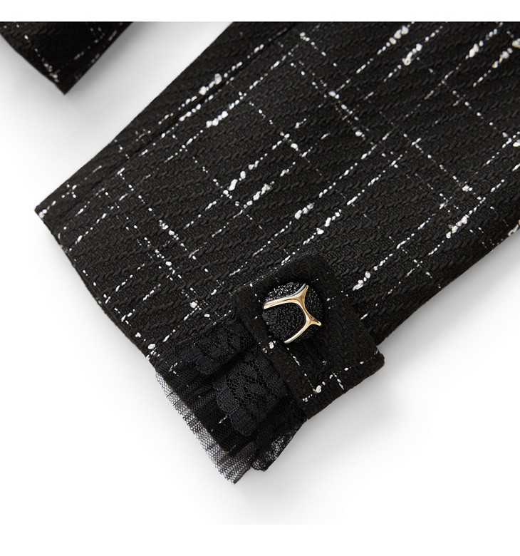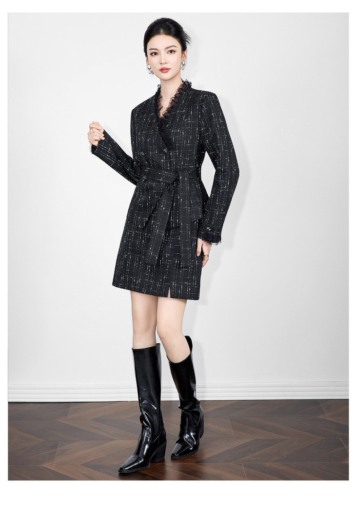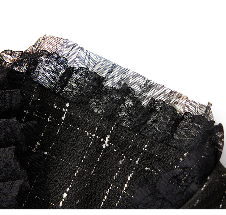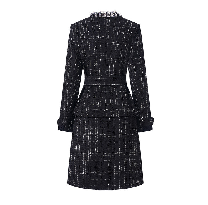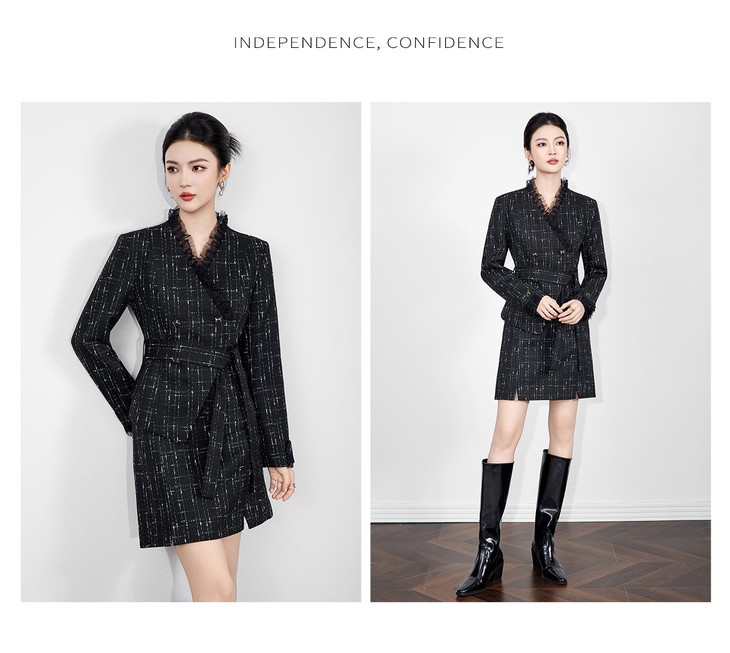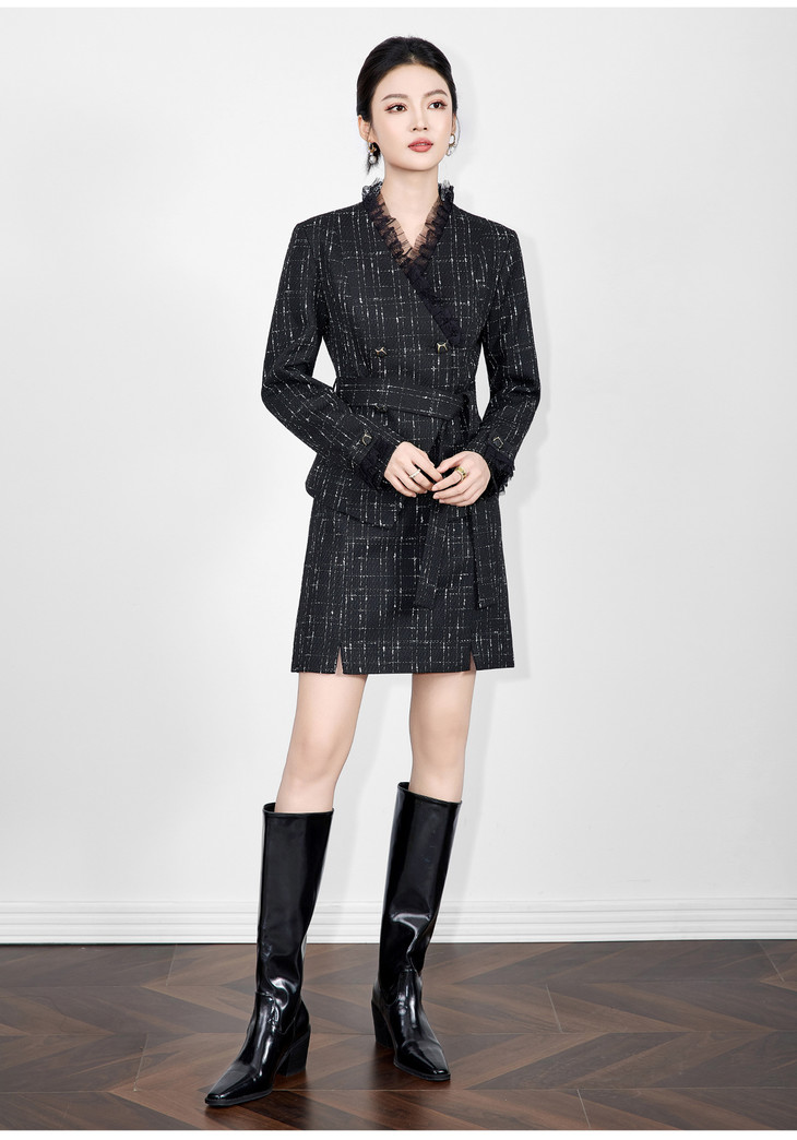 小香风复古格纹收腰蕾丝V领上衣+洋气半裙套装WLZD2515207