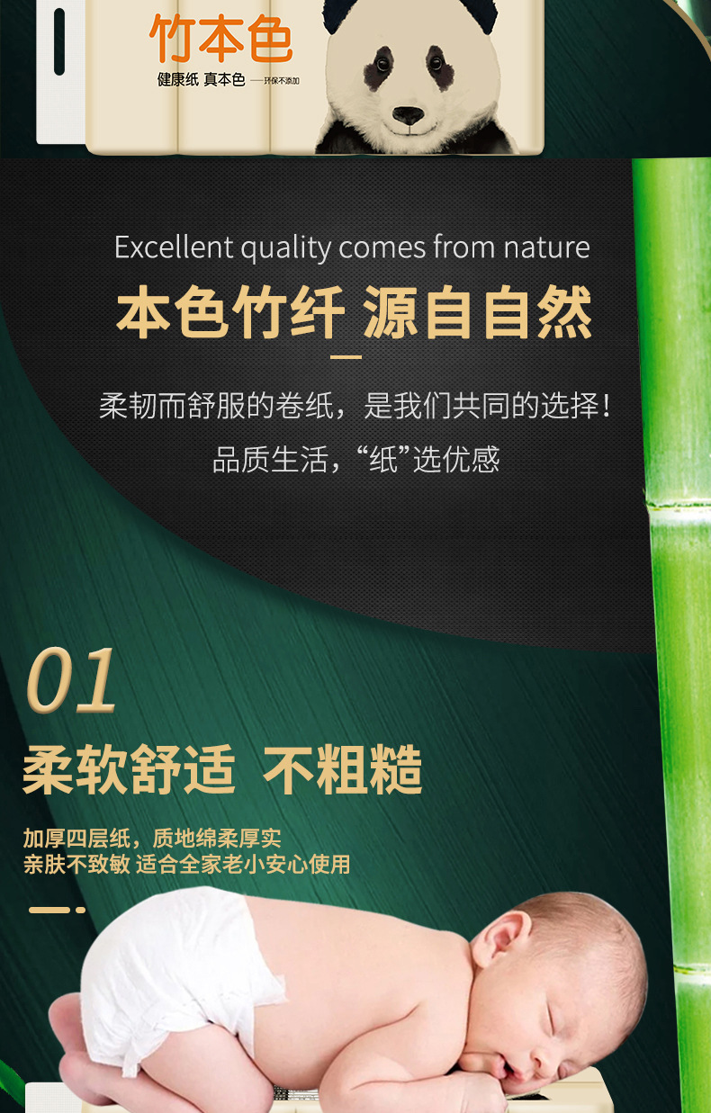 YG原色 40卷超实惠卫生纸家用竹浆纸四层厕纸整箱销售厕所手纸纸巾
