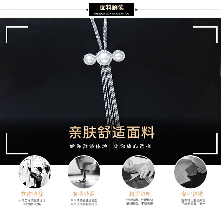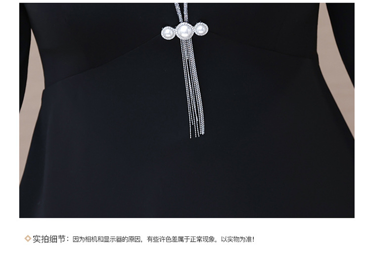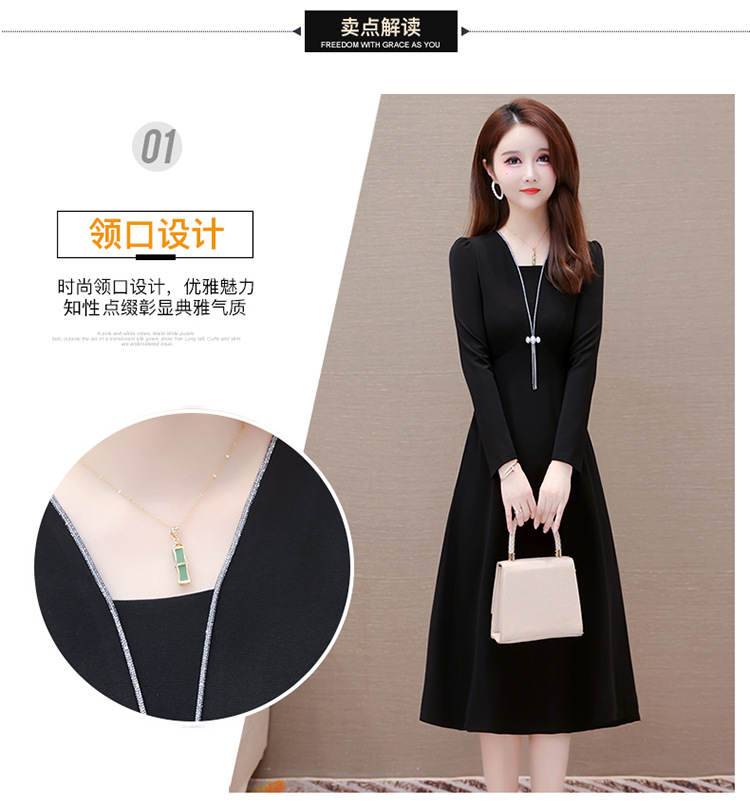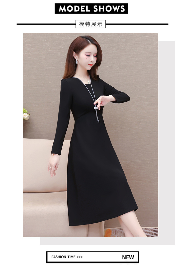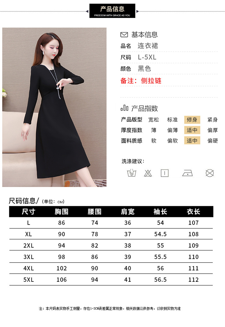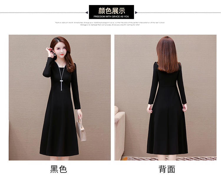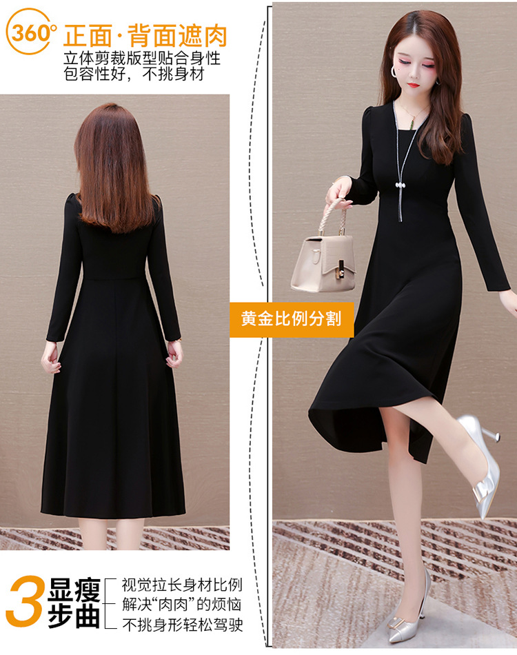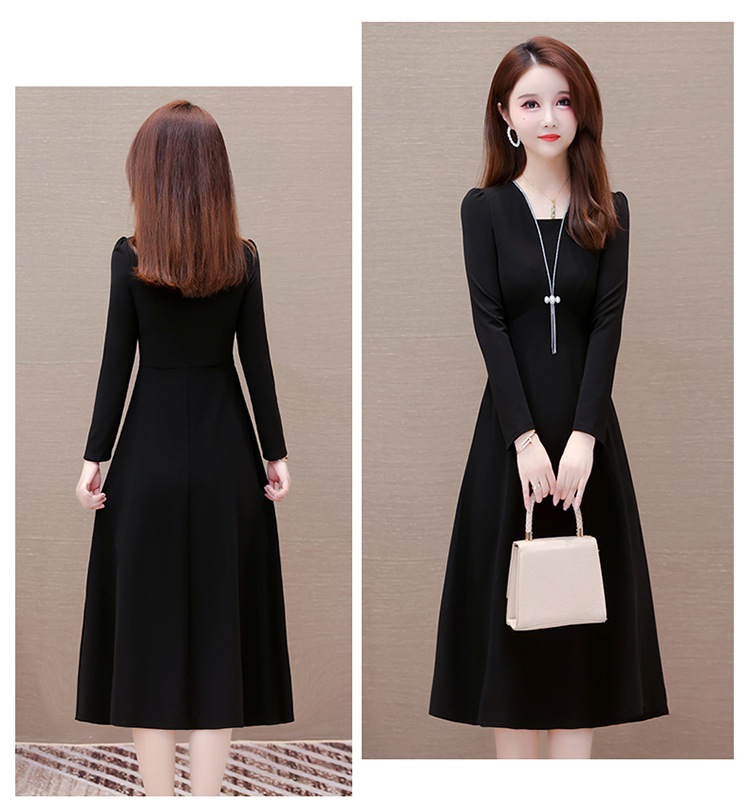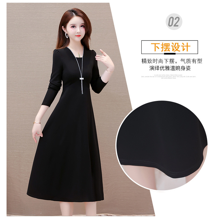 修身时尚,秋款V领长袖气质内搭打底裙黑色简约中长款连衣裙QYM-FL-23911-L