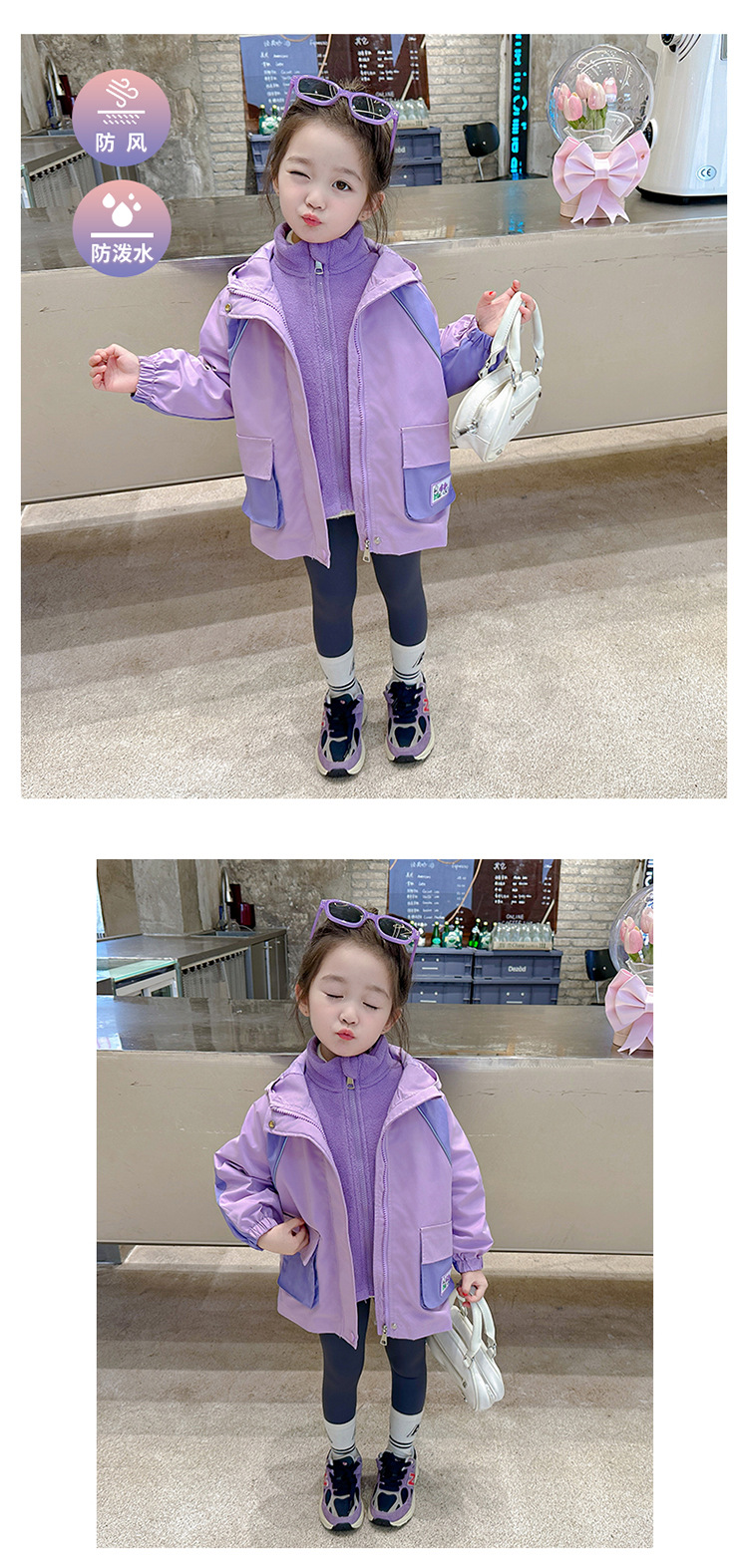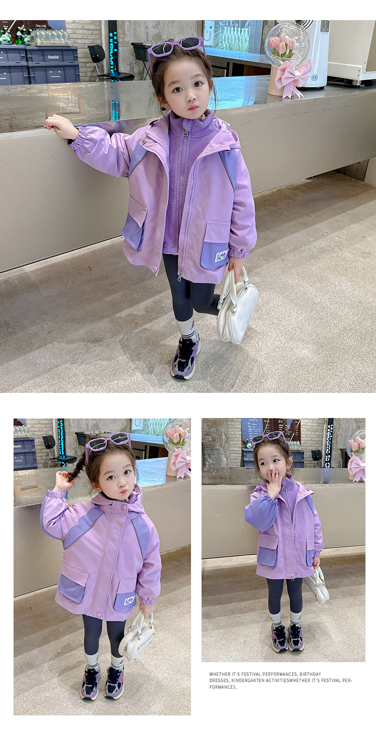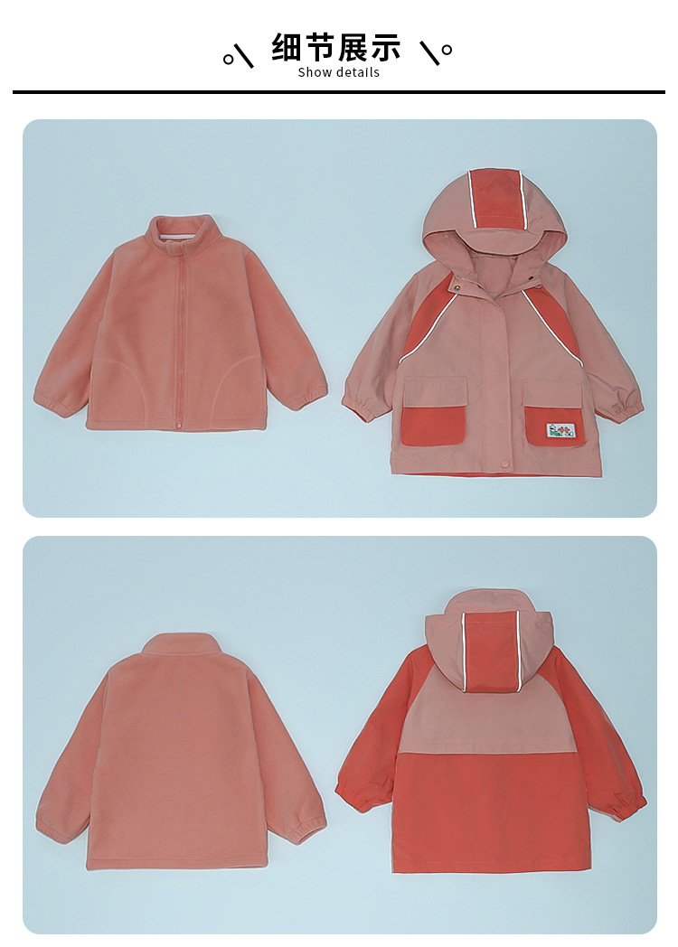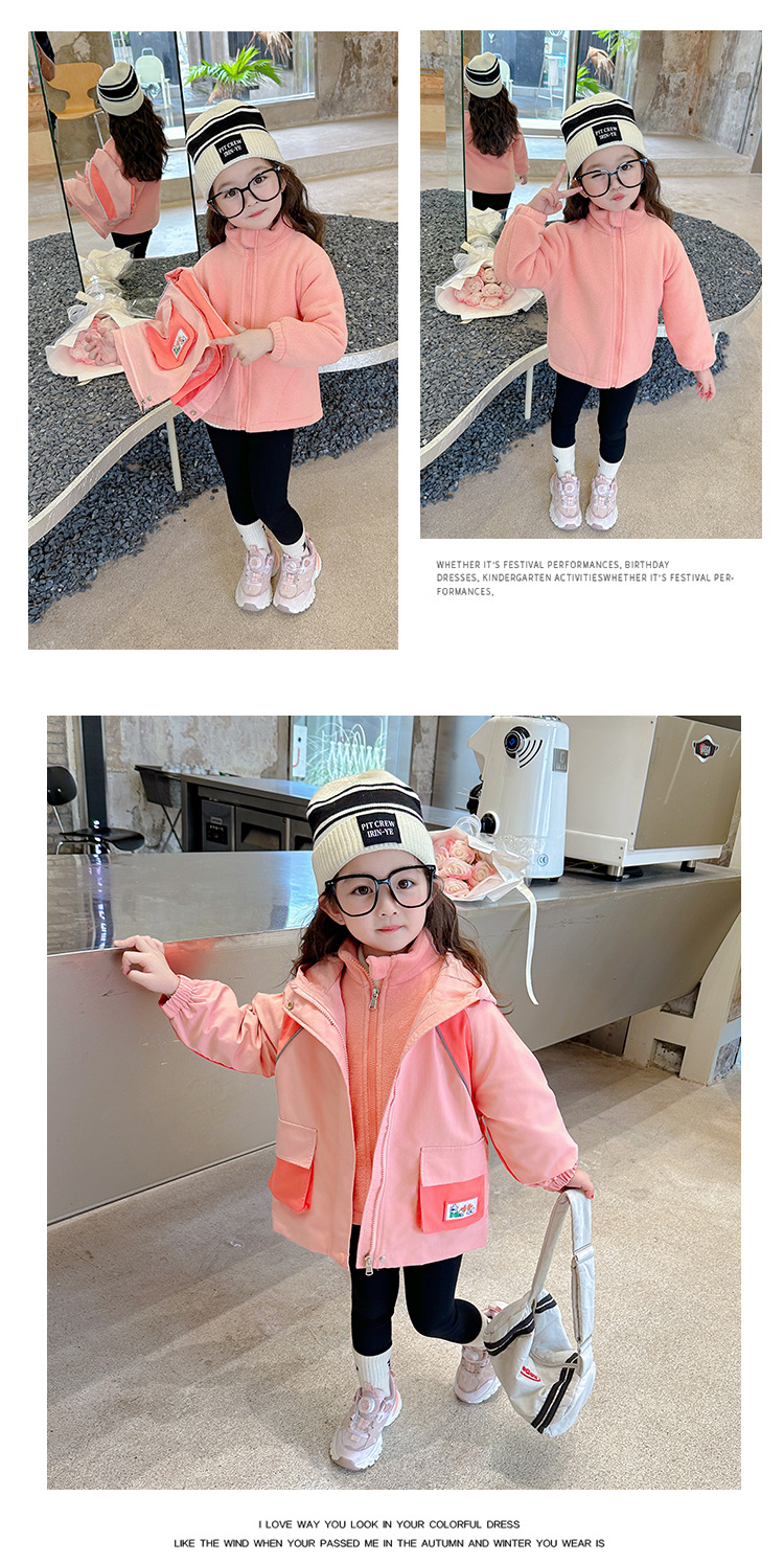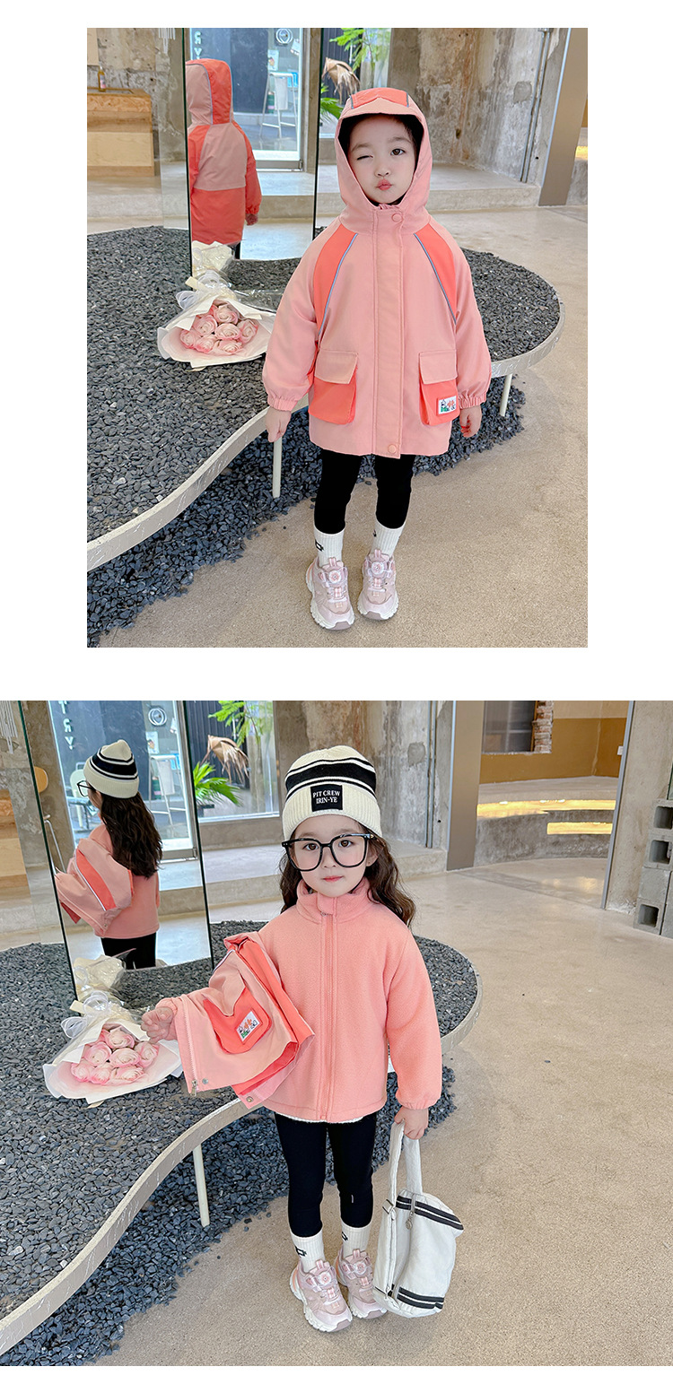 【时尚立领设计!女童冲锋衣】女童三合一可拆卸冲锋衣 秋冬新款 洋气女孩宝宝冬装儿童外套 可拆卸设计添趣味 三合一功能全面保护-QQ