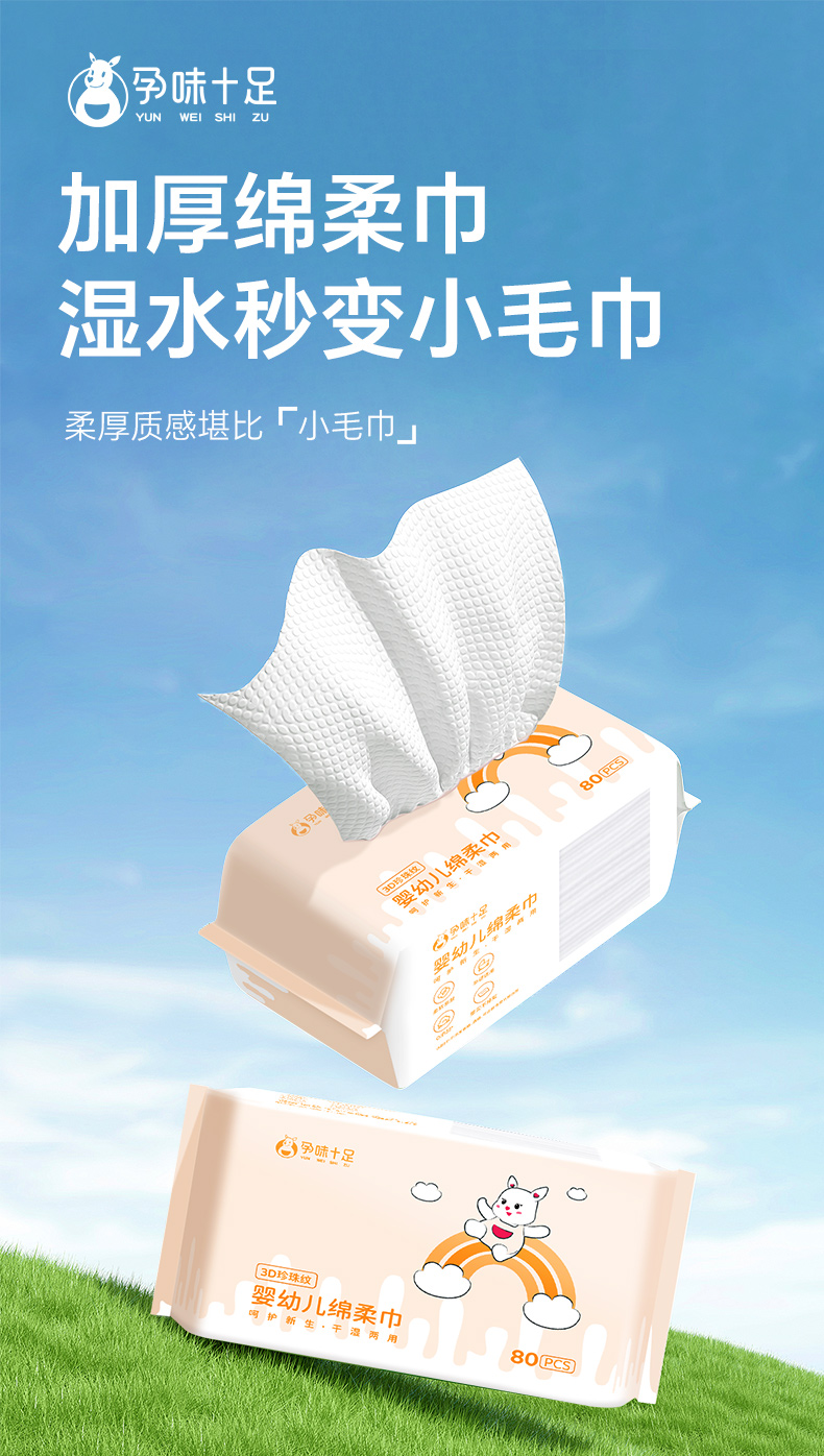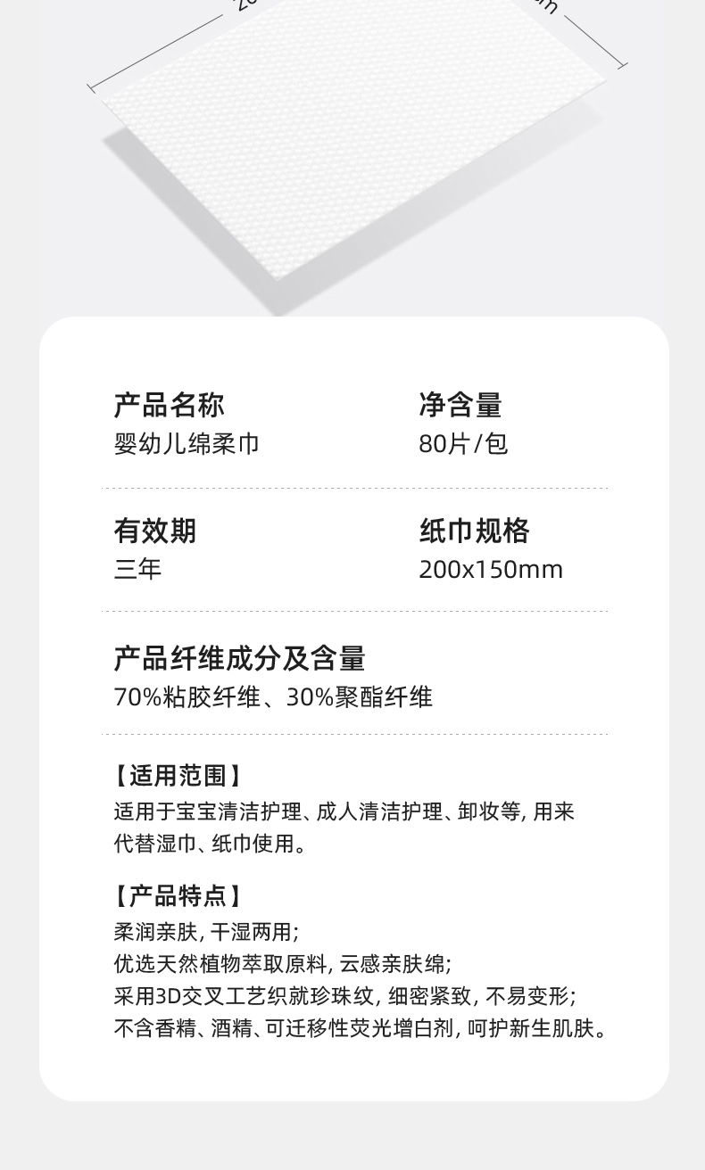 【品牌自营】孕味十足婴儿绵柔巾棉柔非湿纸巾婴儿宝宝干湿两用加厚亲肤洗脸巾