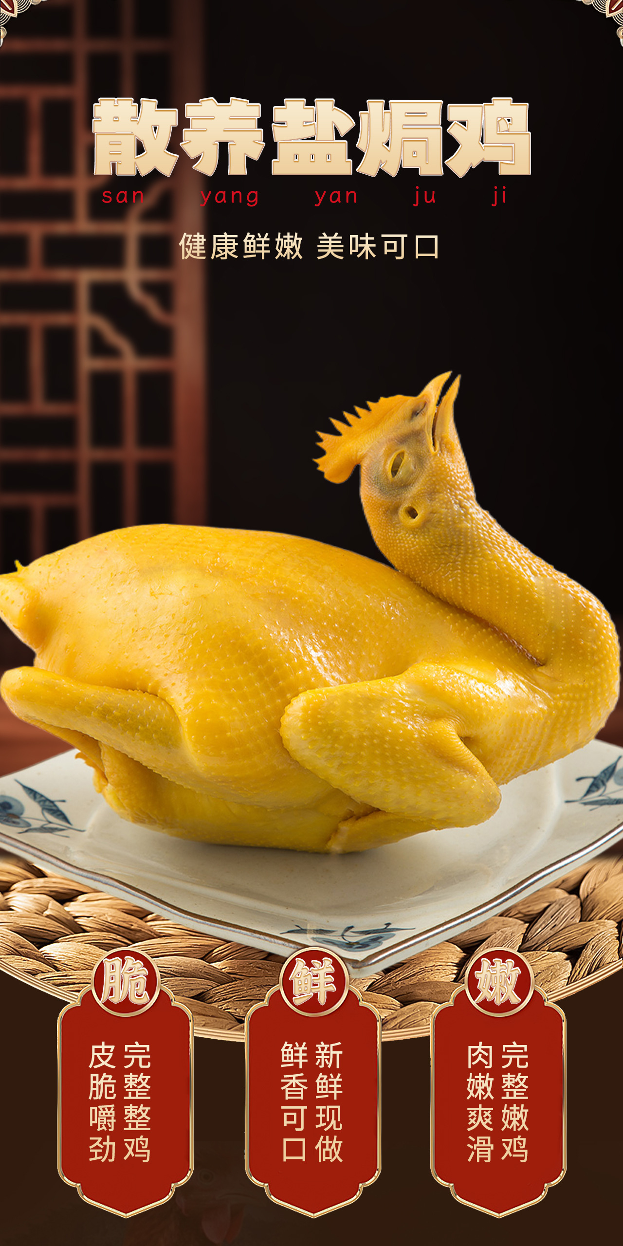【散养盐焗鸡,健康鲜嫩,美味可口】正宗广式盐焗鸡 即食盐焗鸡 整只手撕鸡 卤味熟食白切鸡 真空装熟食-QQ