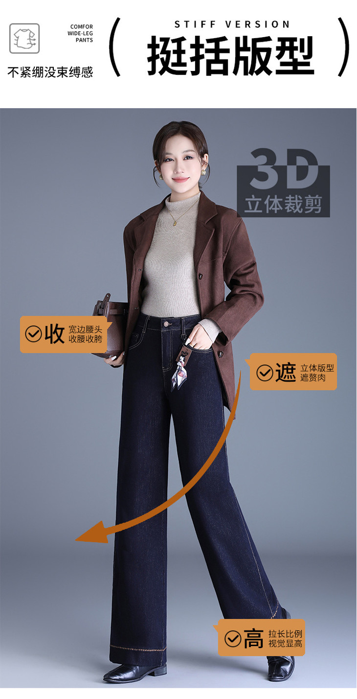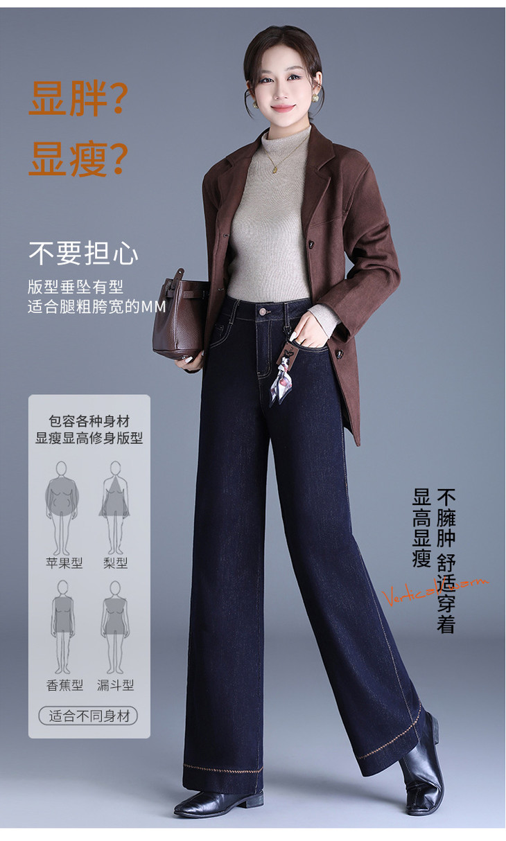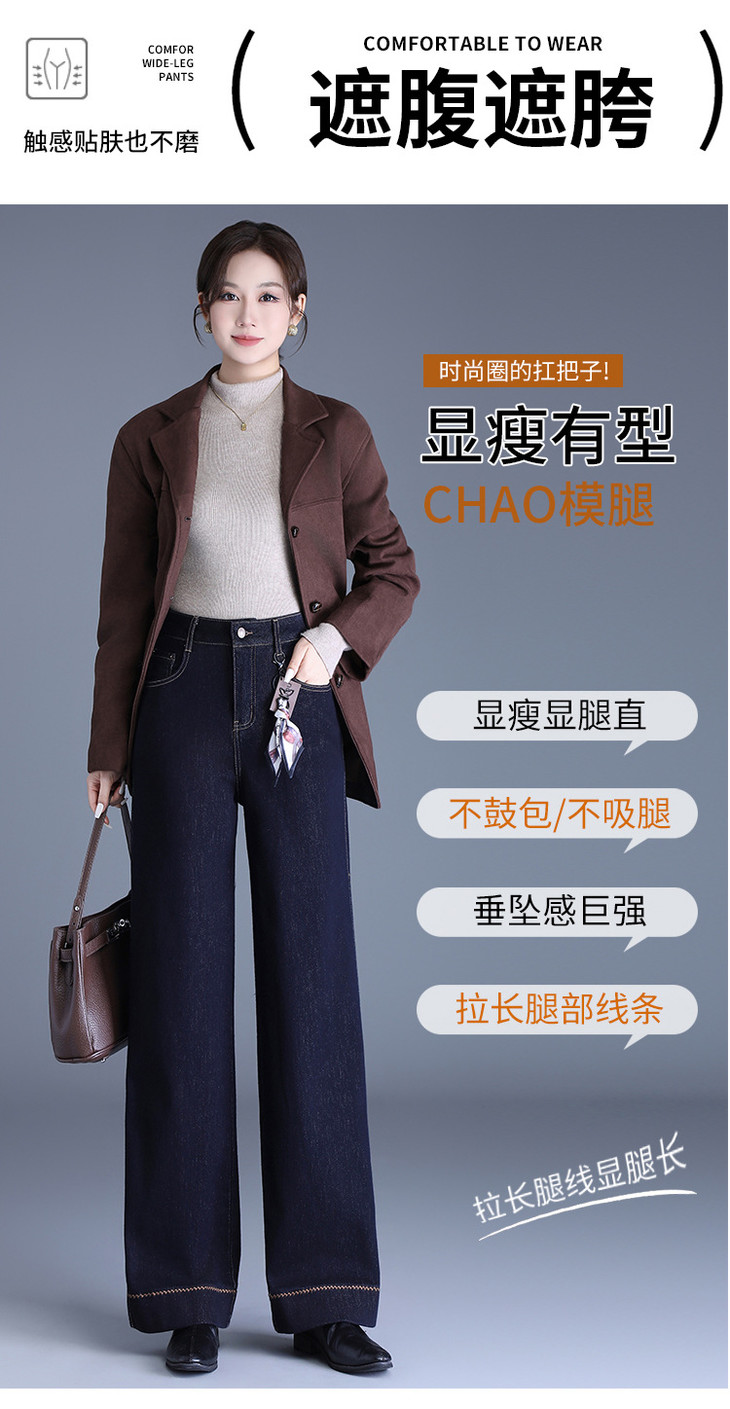 牛仔加绒阔腿裤,垂坠感窄版修身直筒裤MYX-QM-82569-L