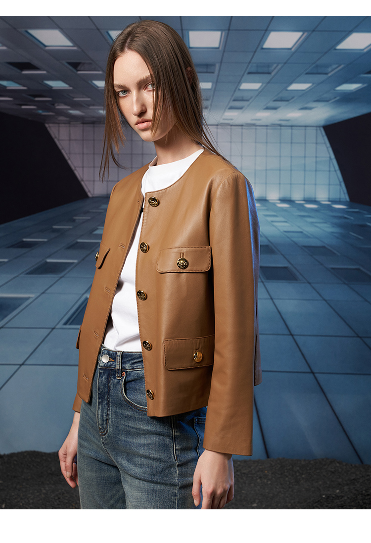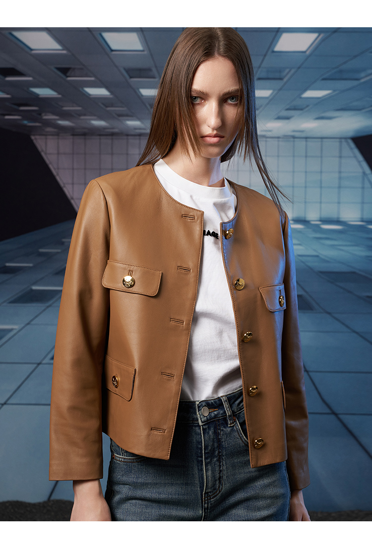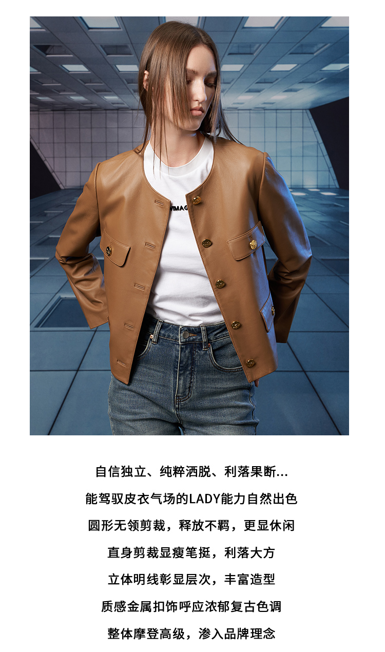 VIMAGE纬漫纪20202冬季新款保暖防风短款绵羊皮外套皮衣V1893404