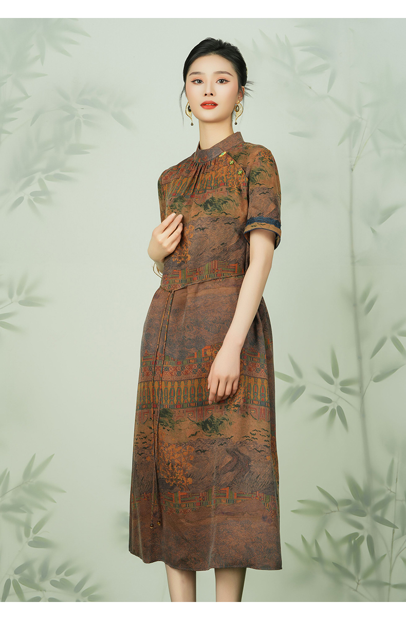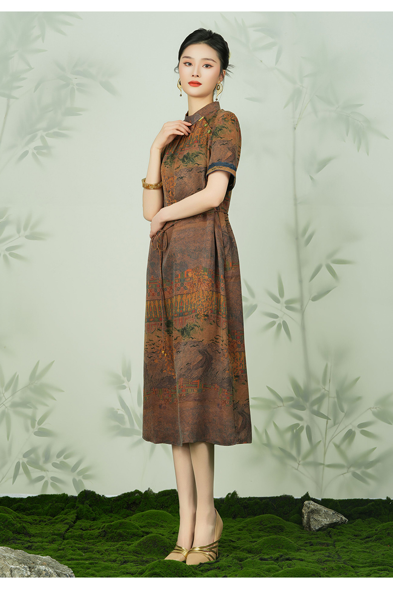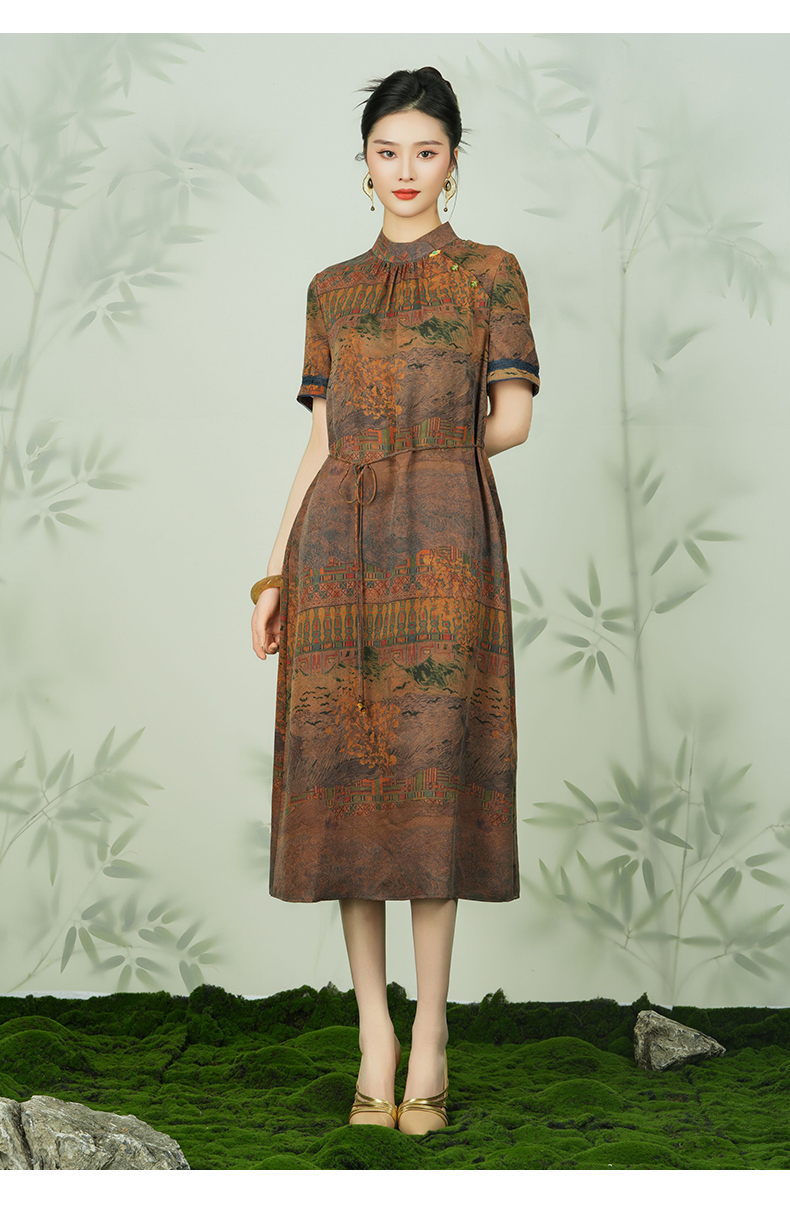 【香榭丽大道】【香云纱】乔万尼24mm重磅真丝连衣裙中长款收腰设计EM2E766