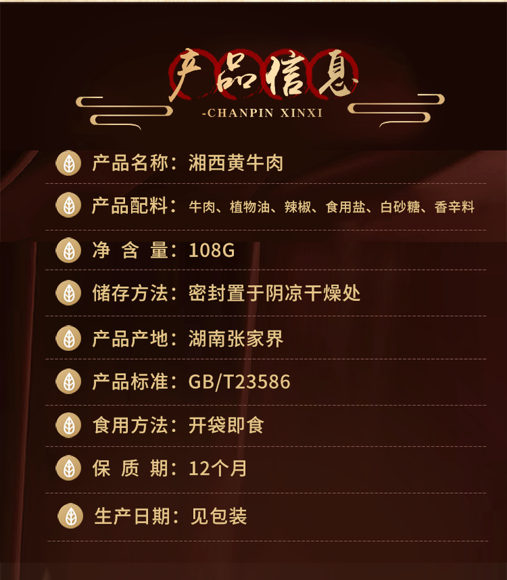 【周一满赠日买二赠一】黑色经典盒装湘西黄牛肉香辣味108g