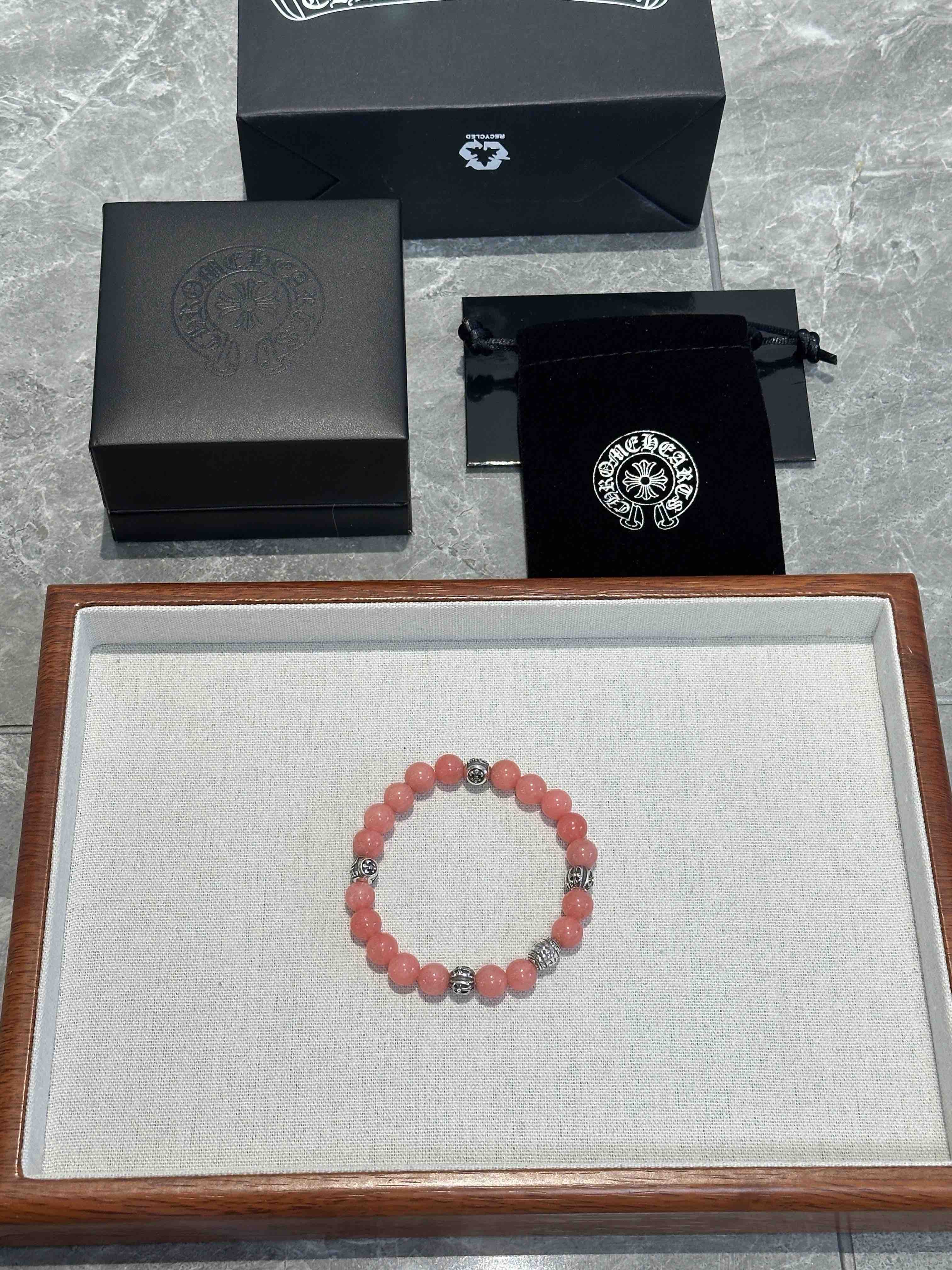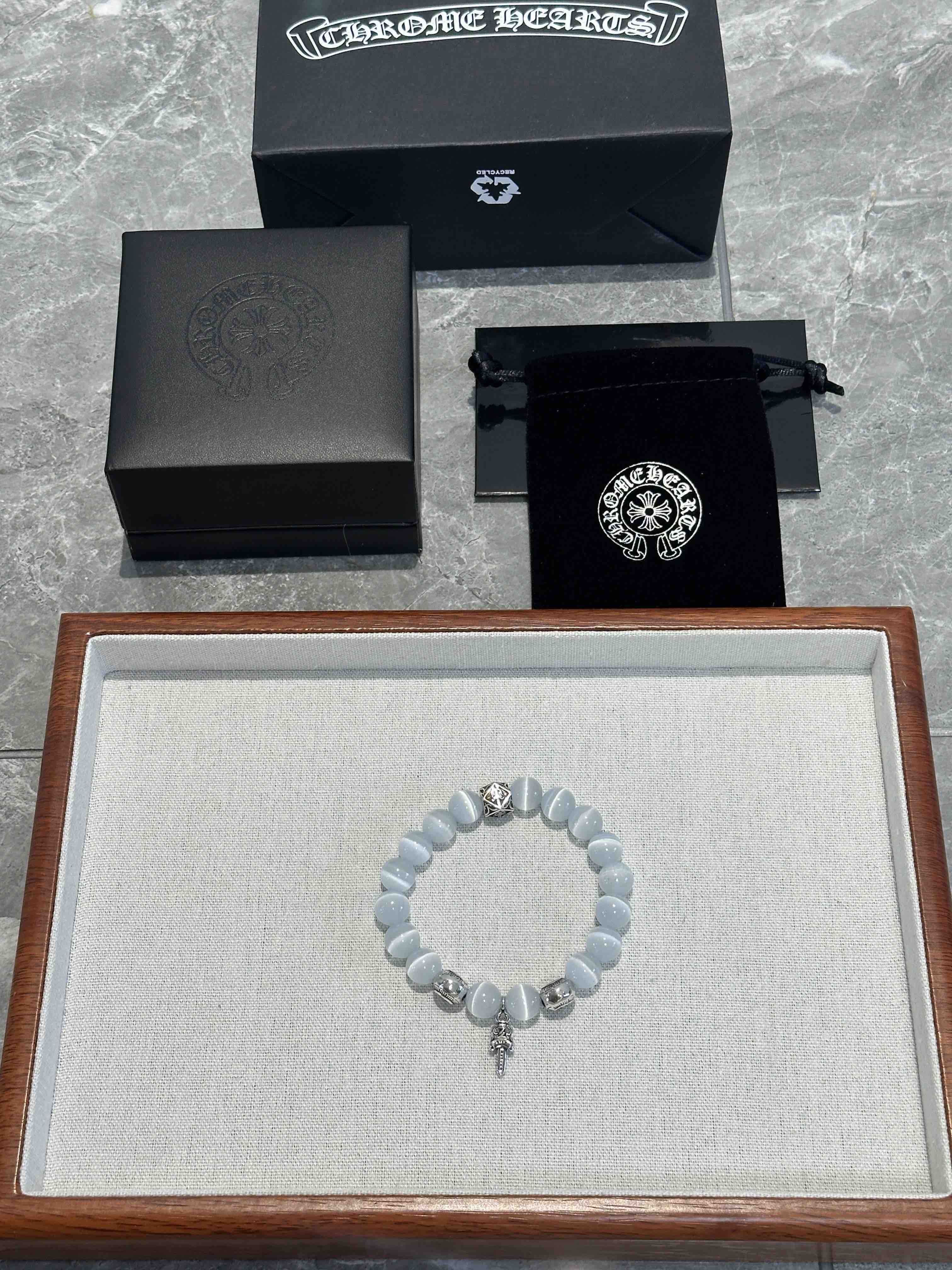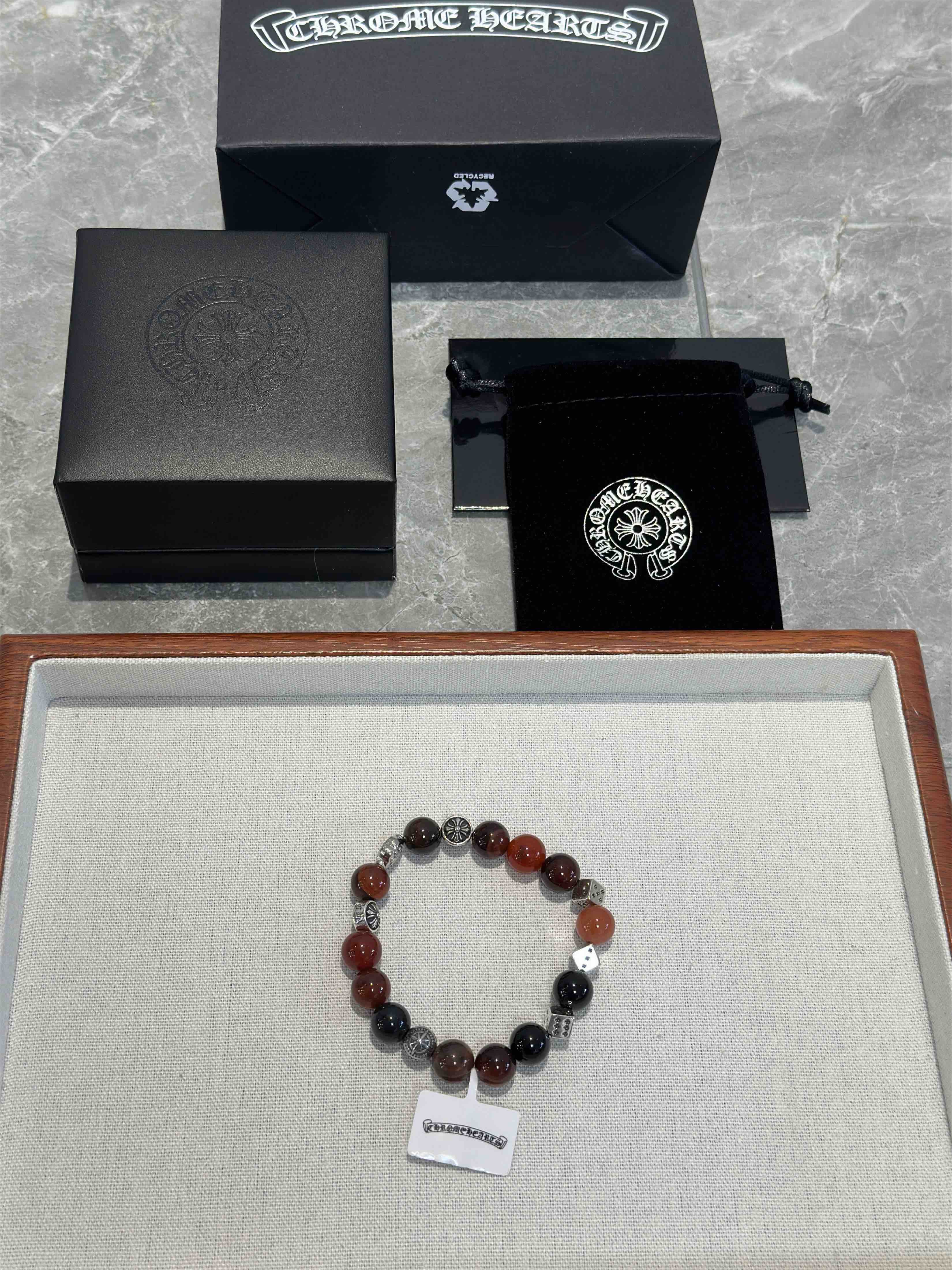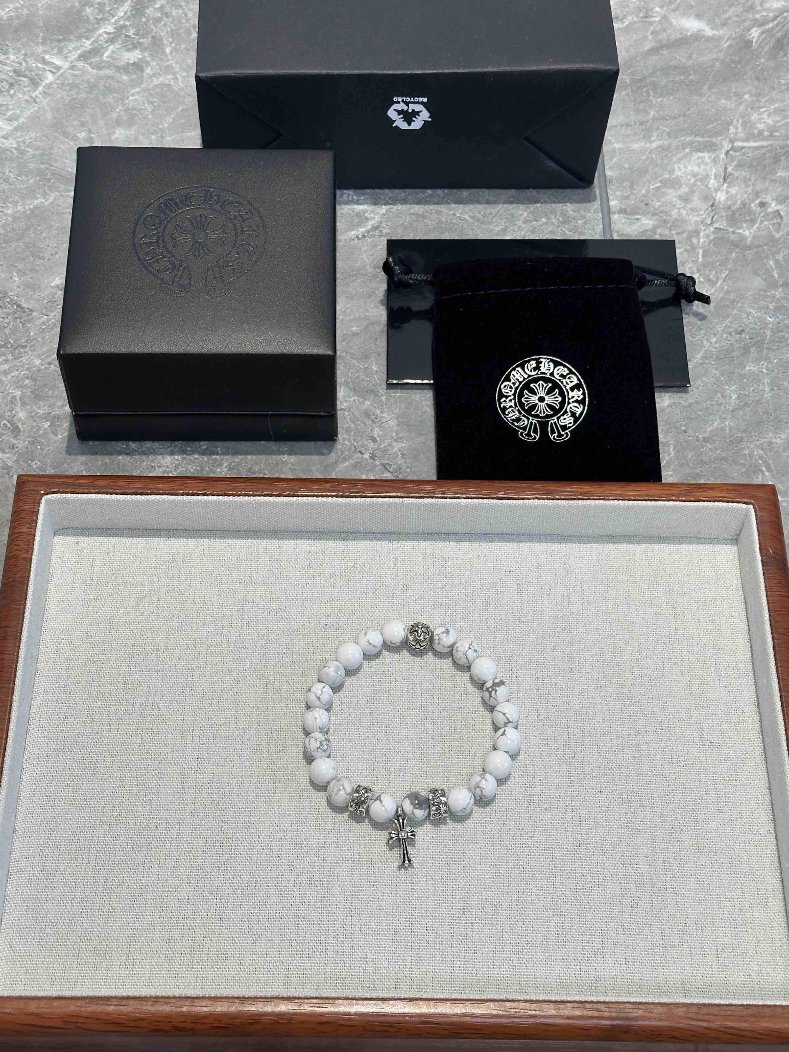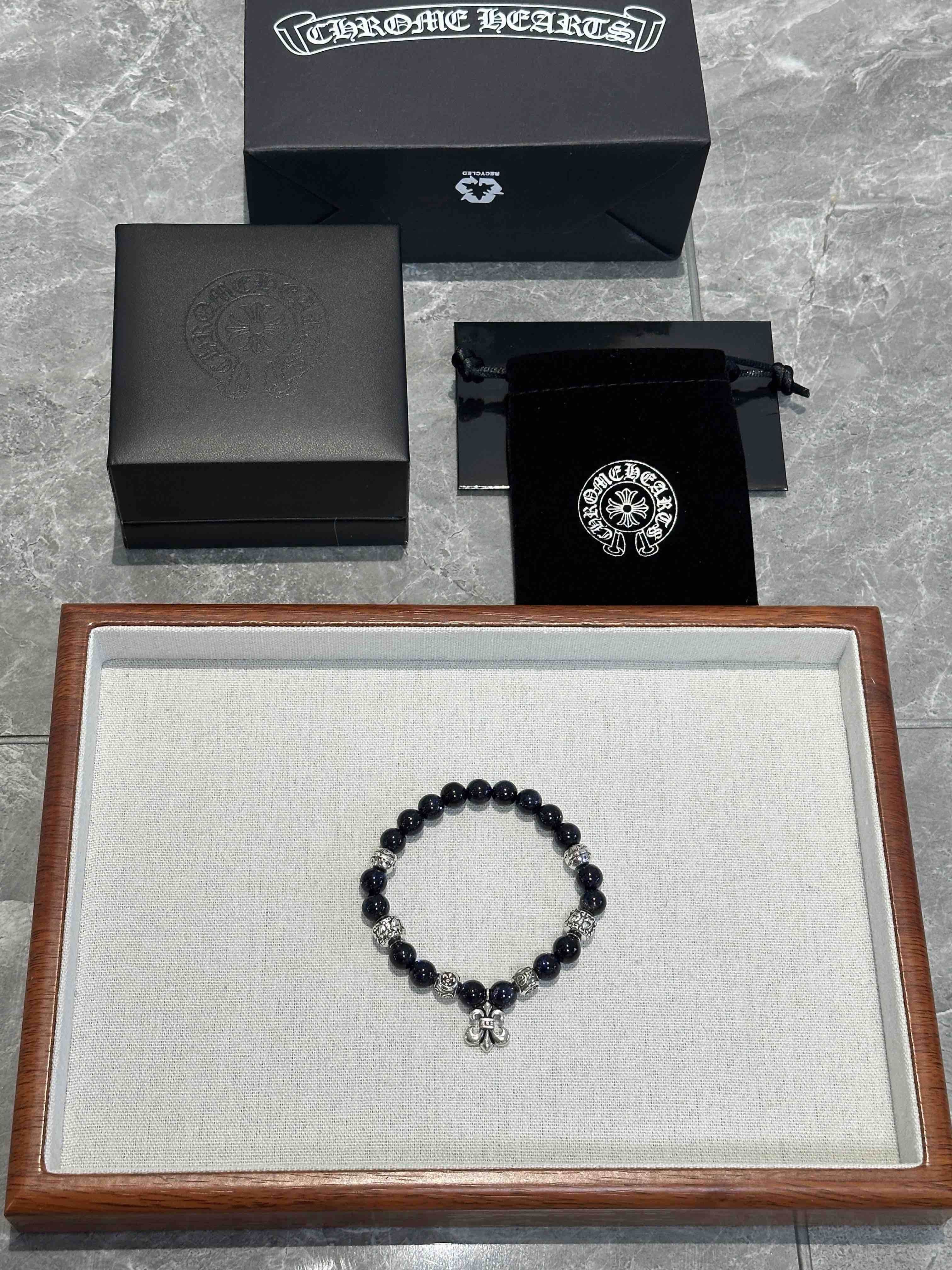 新款Chrome Hearts克罗心经典复古多元素手串手链 ,采用天然石料,抛光打磨出来.纯手工制作,有黑曜石,绿松石,琉璃珠,海蓝宝,猫眼石,玛瑙石,贝克组合而成,配件 925 银,凹凸造型不同的花纹设计风格呈现出与众不同 十字架童军花是克罗心的标志 所以更经久不,Chrome Hearts克罗心 对版对标品质 看字印细节 复古做旧灰氧程度.精工版本!实物比图片好看百倍