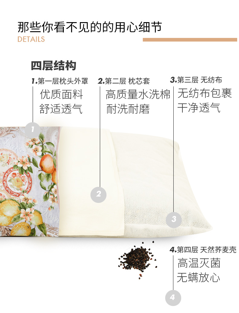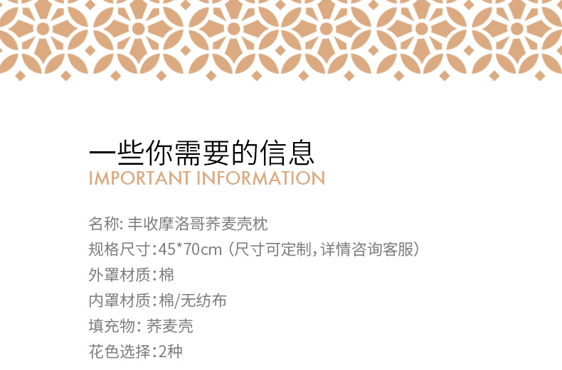 丰收摩洛哥单人荞麦枕枕芯枕罩
