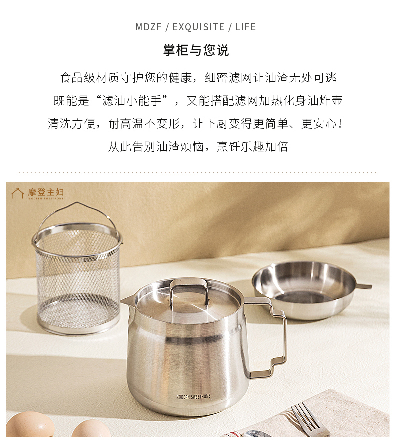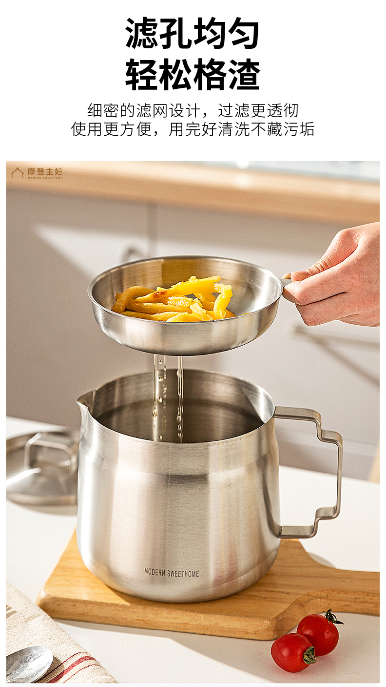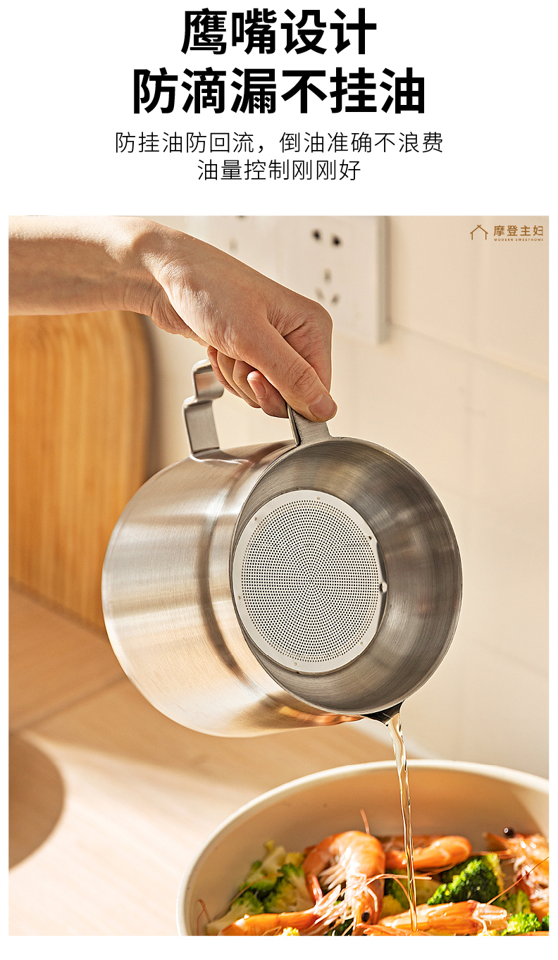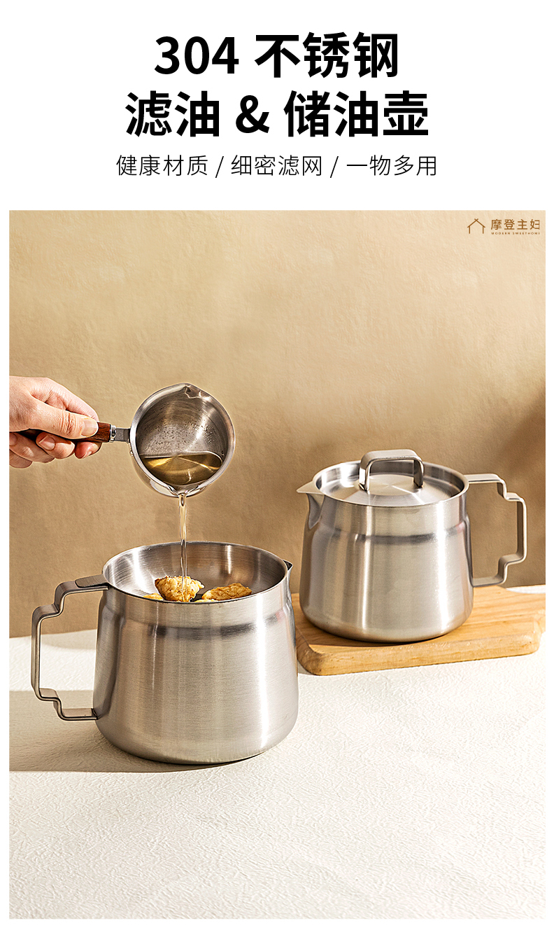 摩登主妇滤油壶304不锈钢家用大容量储油罐厨房带过滤网装油容器