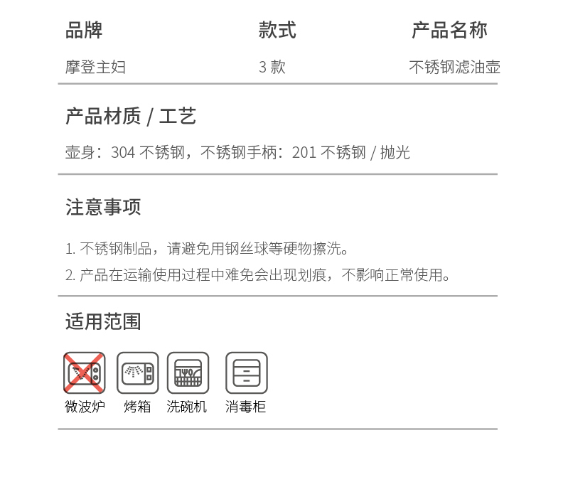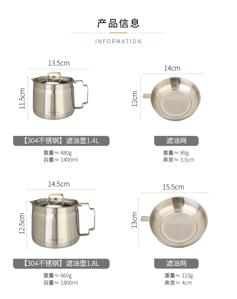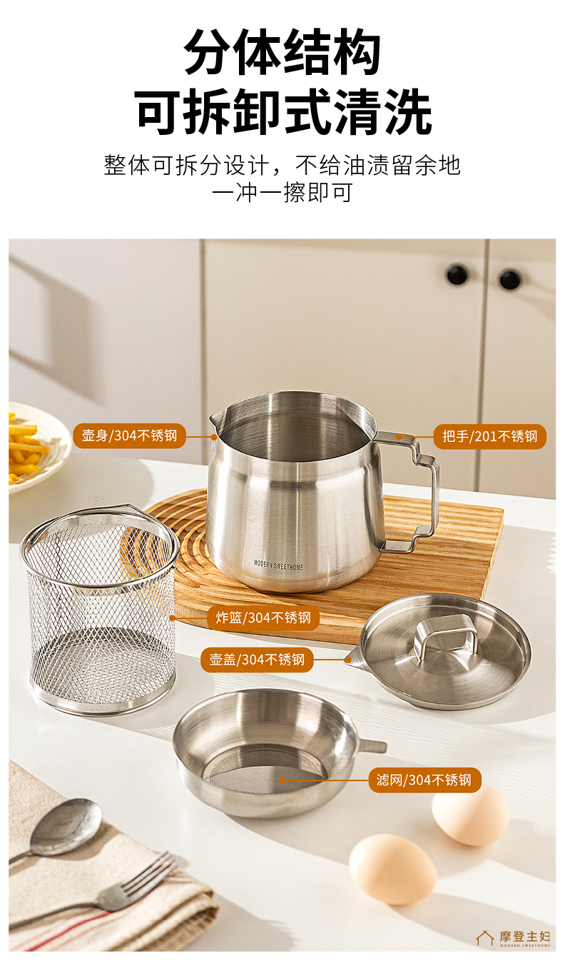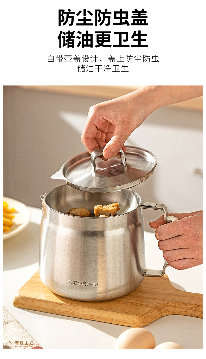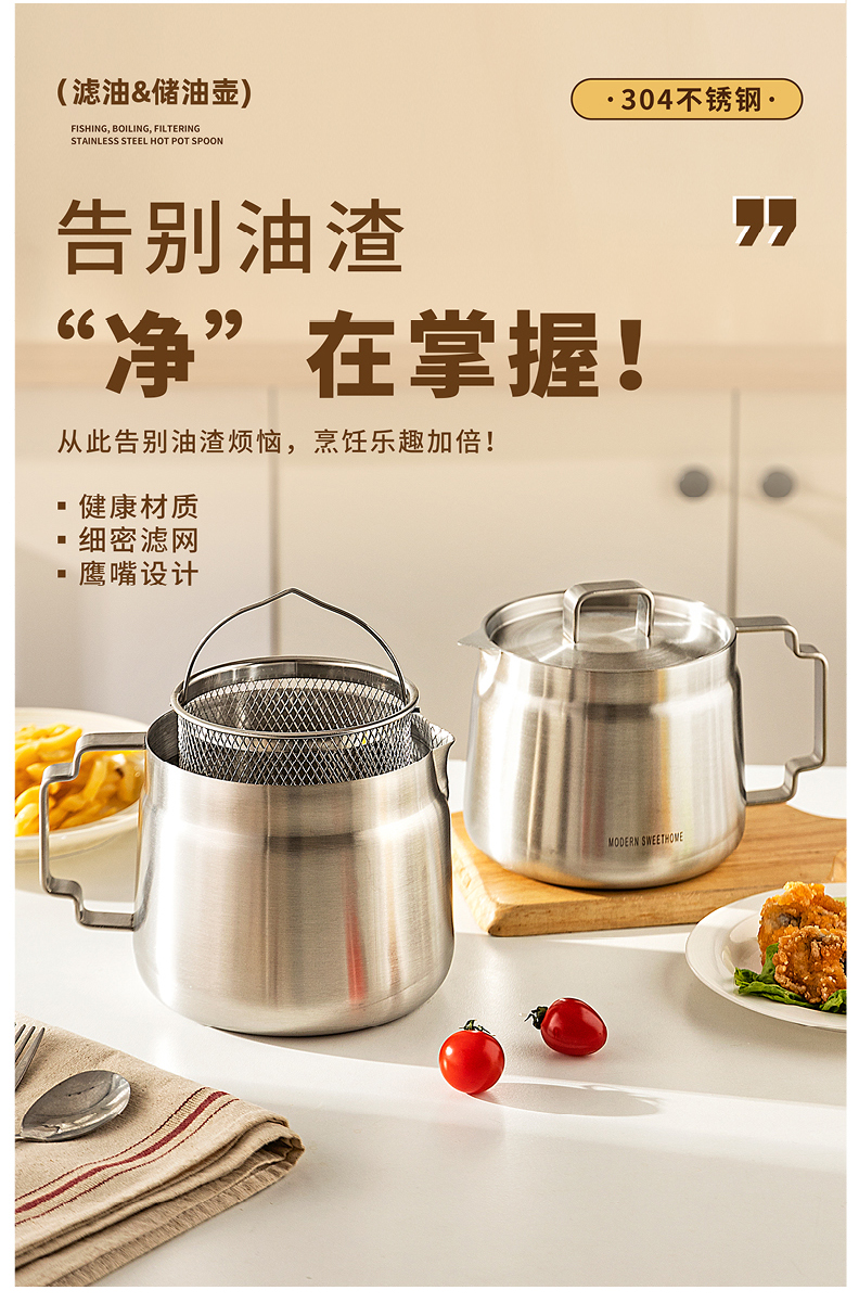 摩登主妇滤油壶304不锈钢家用大容量储油罐厨房带过滤网装油容器
