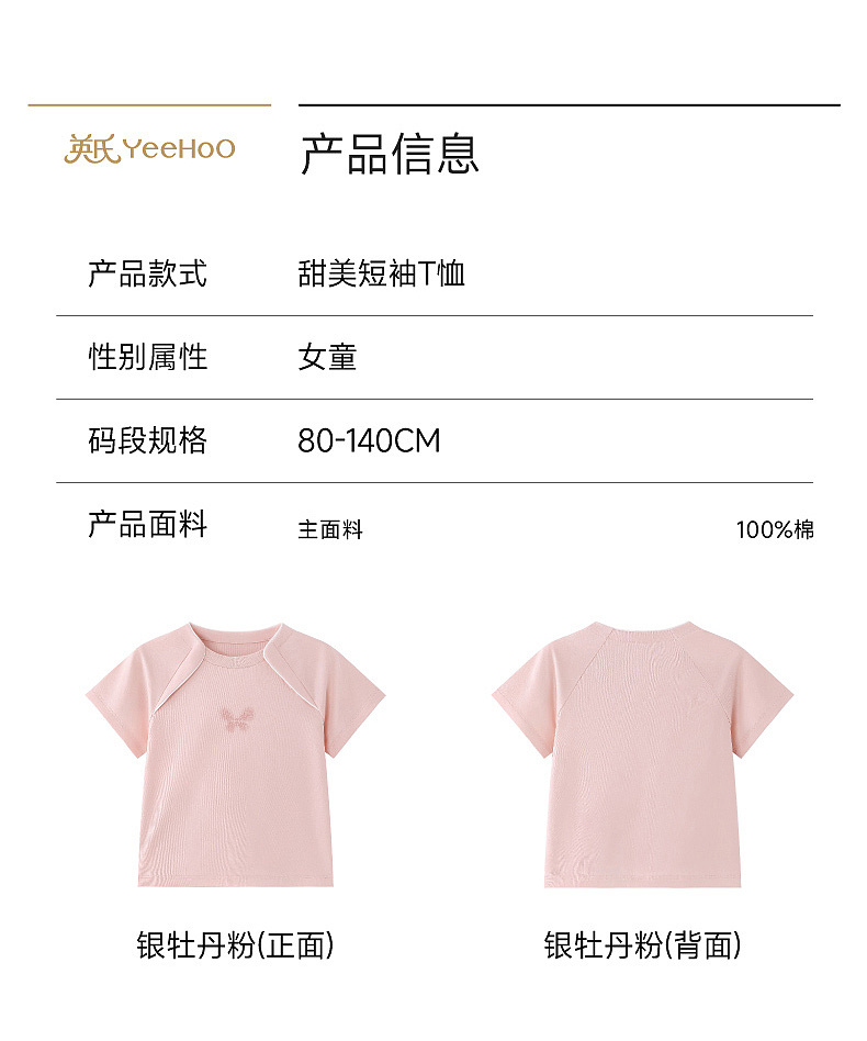 【商场同款】英氏女童短袖T恤夏季新款女宝宝圆领套头打底衫上衣