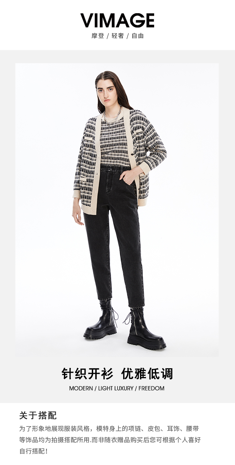 VIMAGE纬漫纪秋季新款显瘦百搭舒适针织开衫外套V1601204