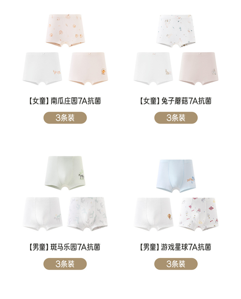 英氏四角裤纯棉内裤中大童女童男童平角裤抗菌舒适亲肤贴合新款