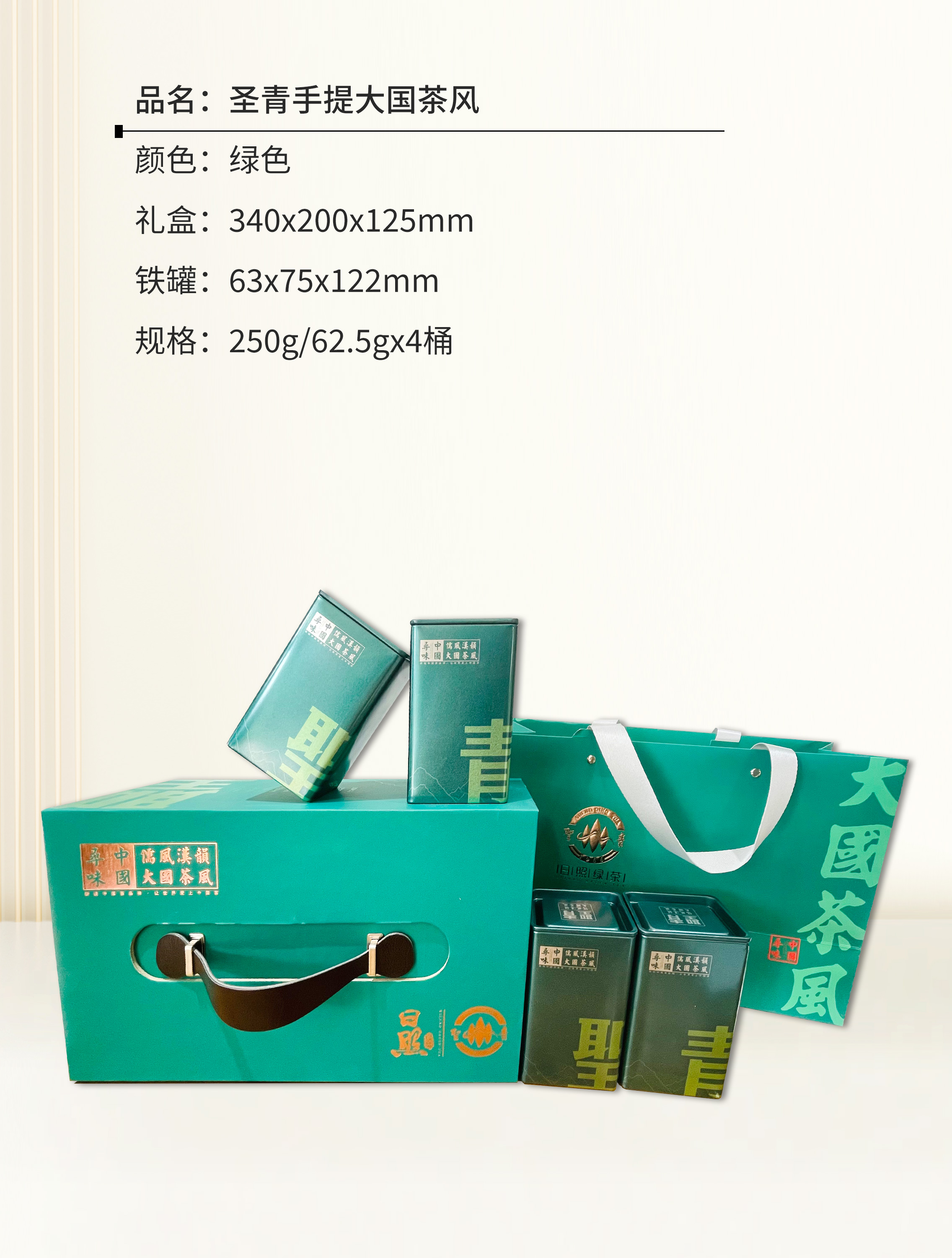 【2024春茶礼】圣青日照绿茶 圣青手提大国茶风 精品头采芽茶春茶茶礼(62.5g*4罐/提)