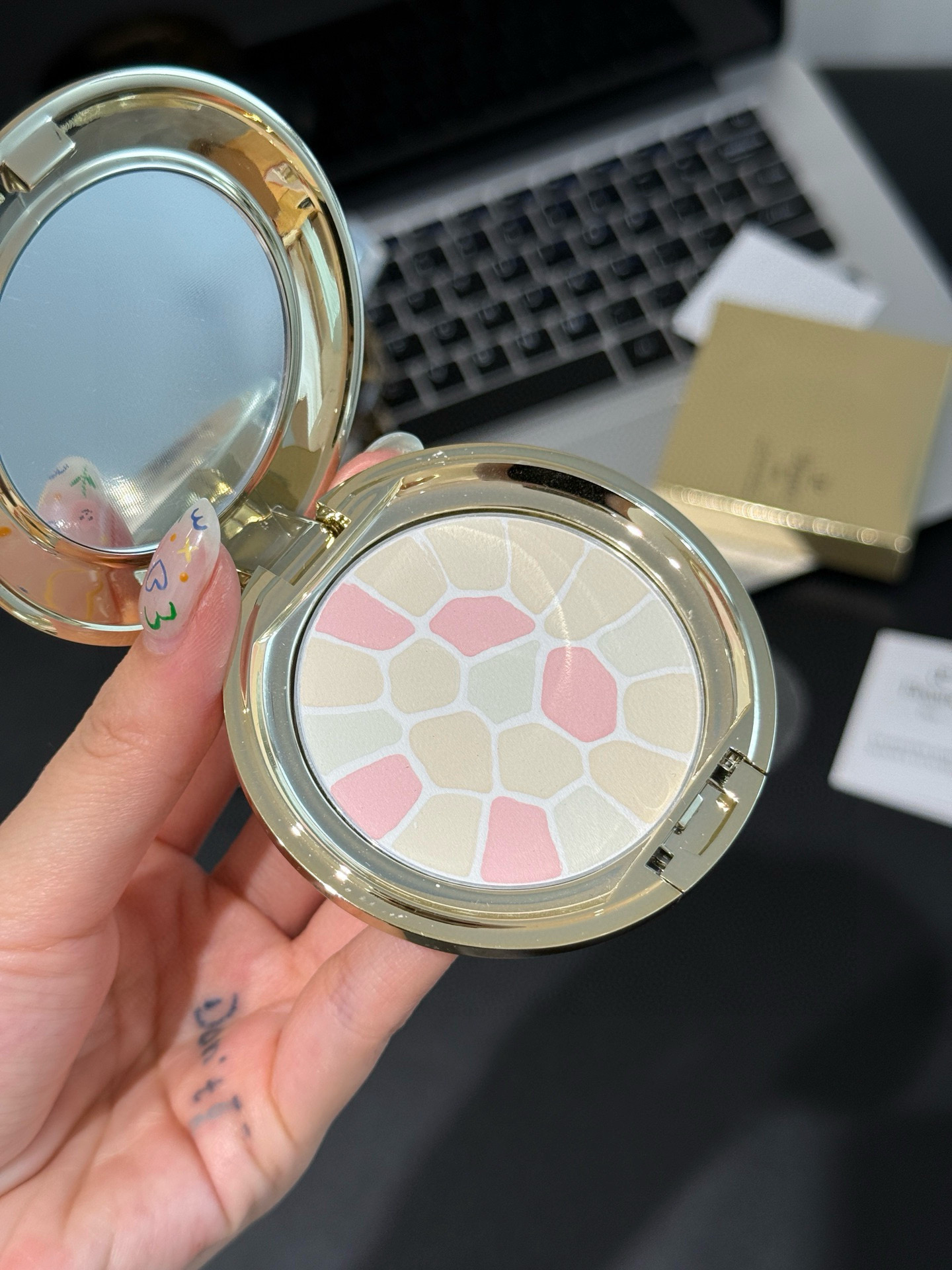 整个定妆界的鼻祖 不仅颜值高 实力也相当的厉害 纯手工制作粉质相当的细腻 能够轻松打造出自然帖服的妆效 让你的肌肤看起来又嫩又白净!而且 它的控油效果也非常出色 能够让你的妆容一整天都保持清爽 毕竟就连白敬亭雨天红毯不脱妆 也都是靠用它来出圈的!❗️注意了 它的遮盖力一般 斑点、痘痘和明显瑕疵e大饼是盖不住的 如果你皮肤本身没什么瑕疵又喜欢薄透妆感 用E大饼很合适!⚠️规格:便携装. 家庭装 粉质都压得紧实 一盘能用很久