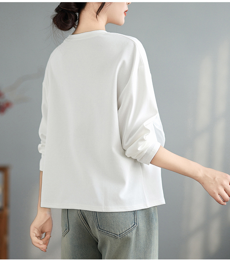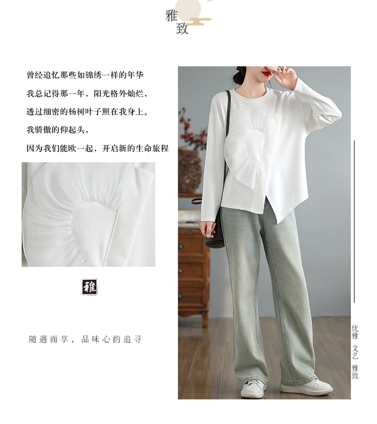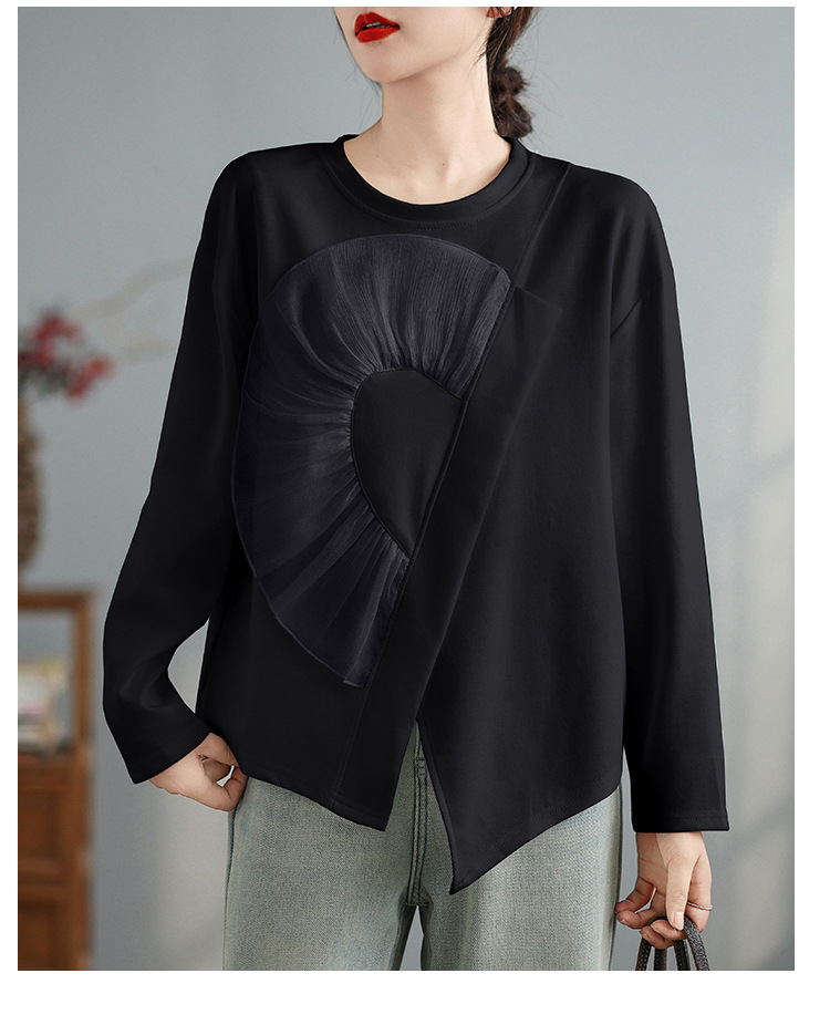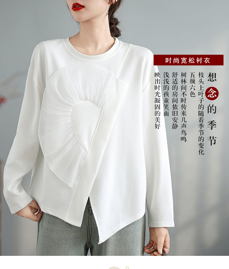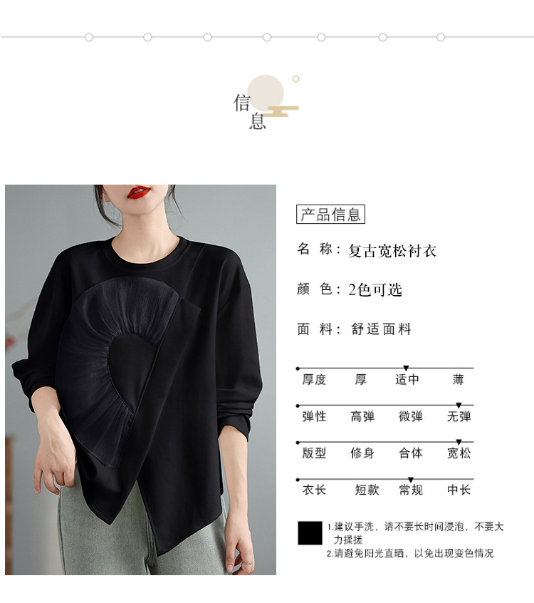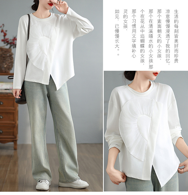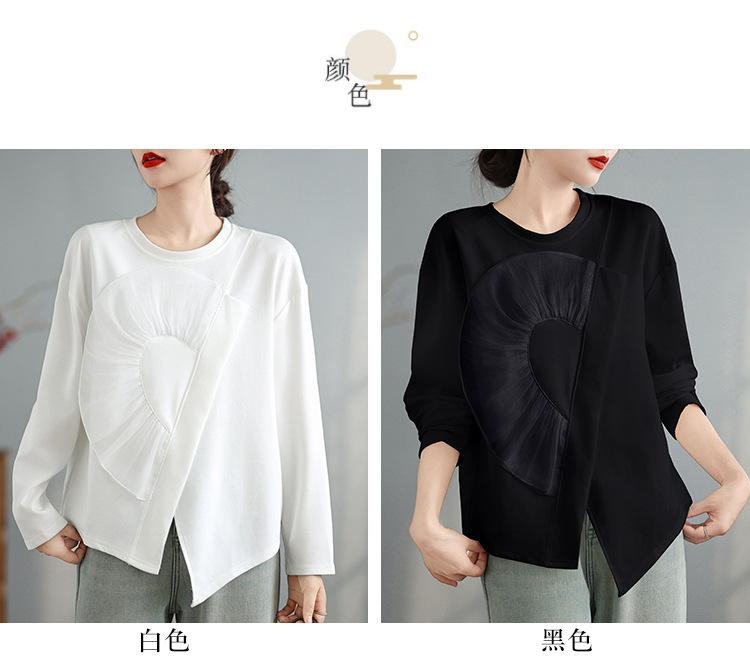 AHM wyss6969大码宽松显瘦花朵长袖T恤时尚洋气上衣 商品图3