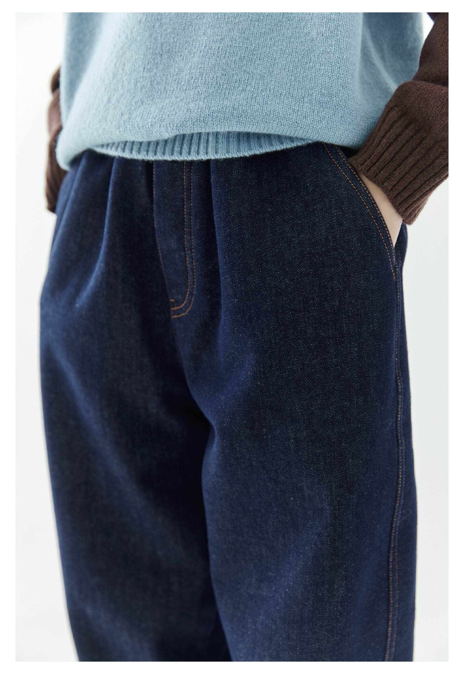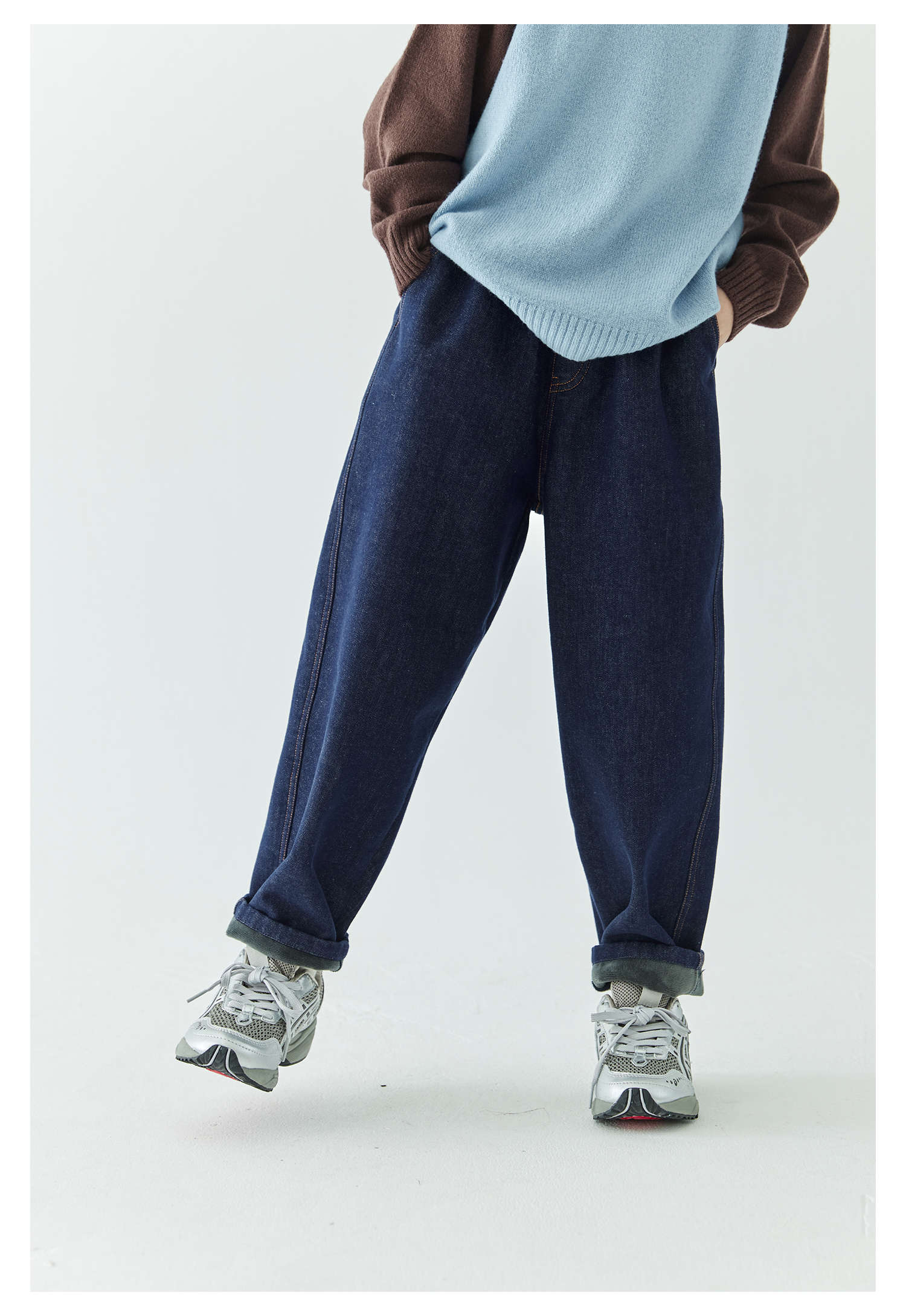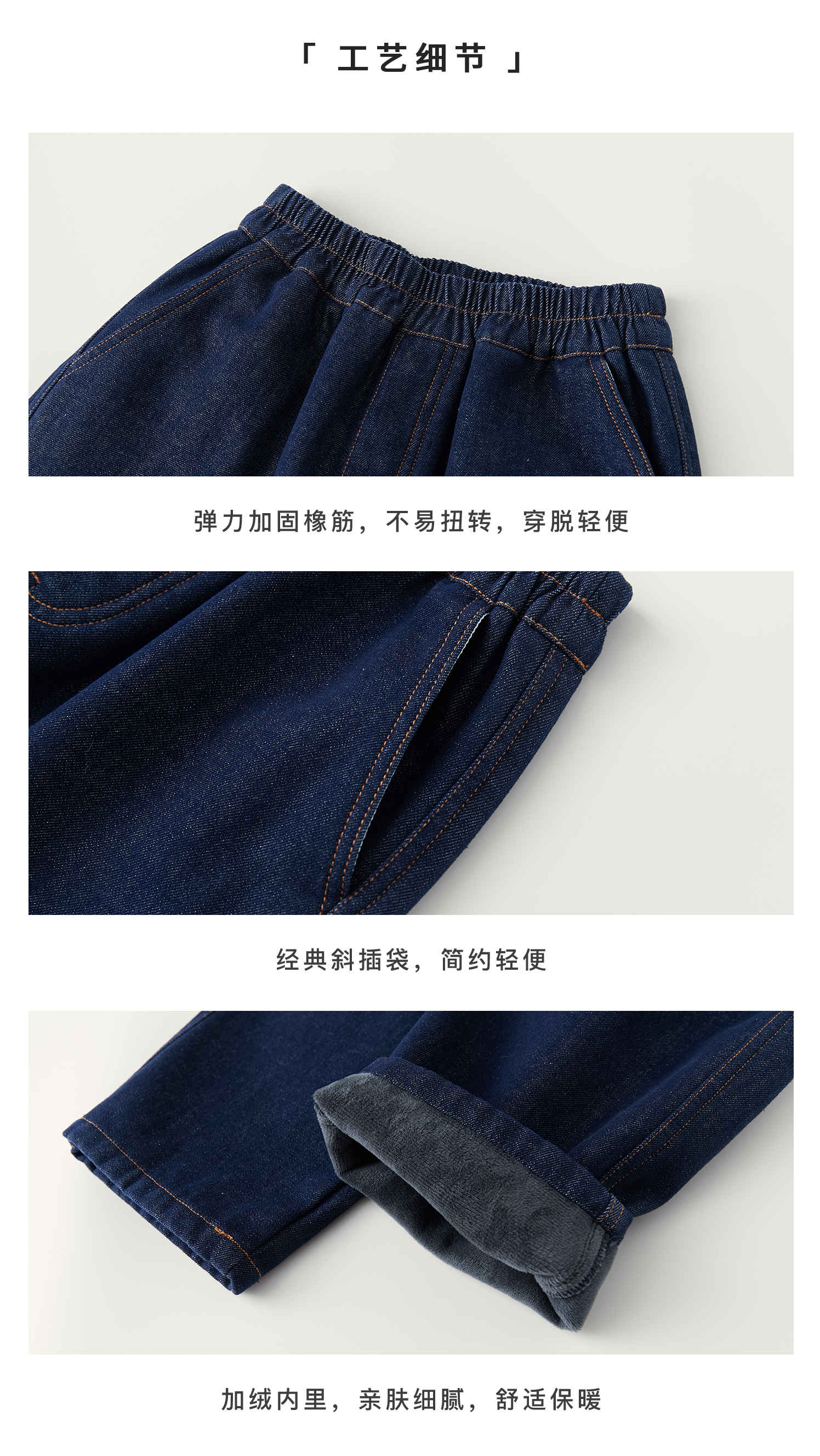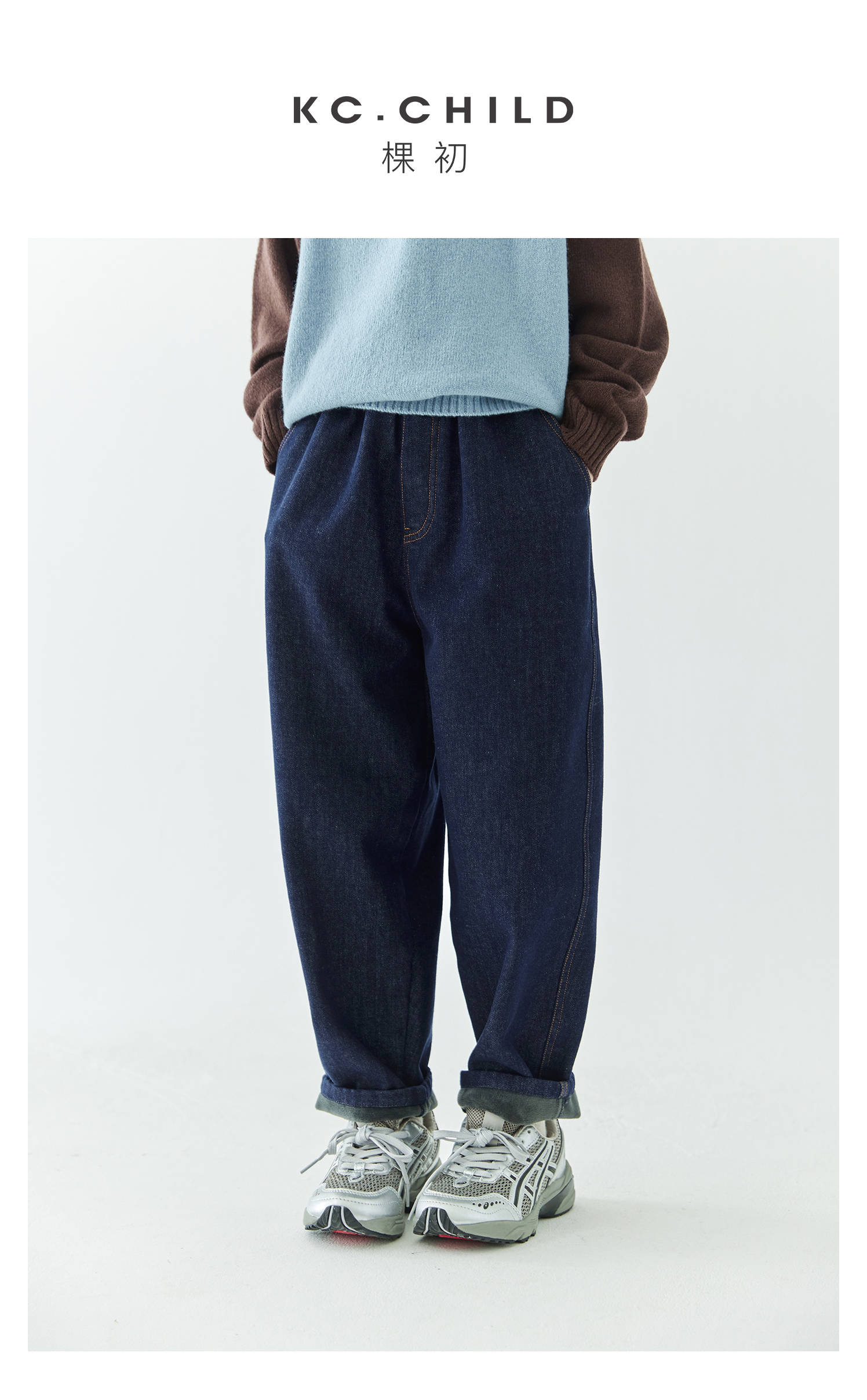 棵初2024年冬装新款不落色加绒牛仔裤中大童亲肤保暖锥形裤子
