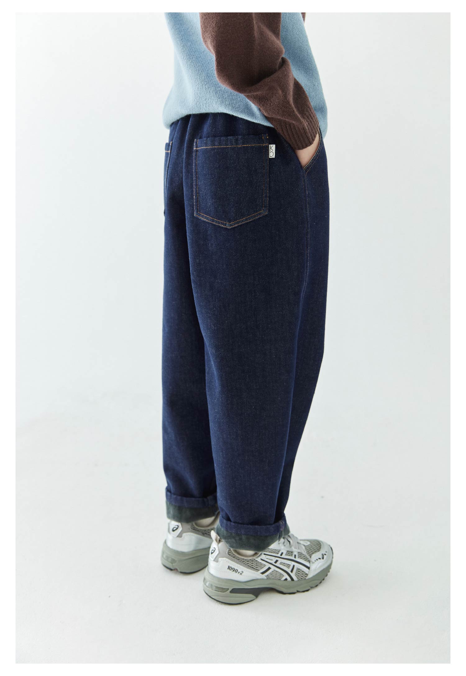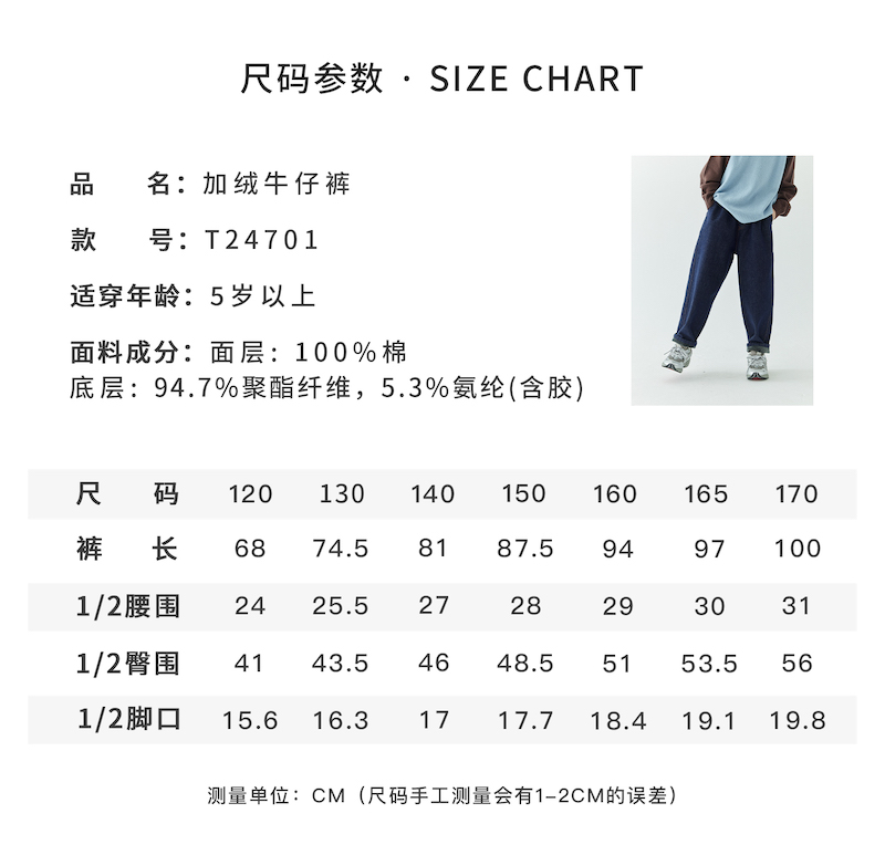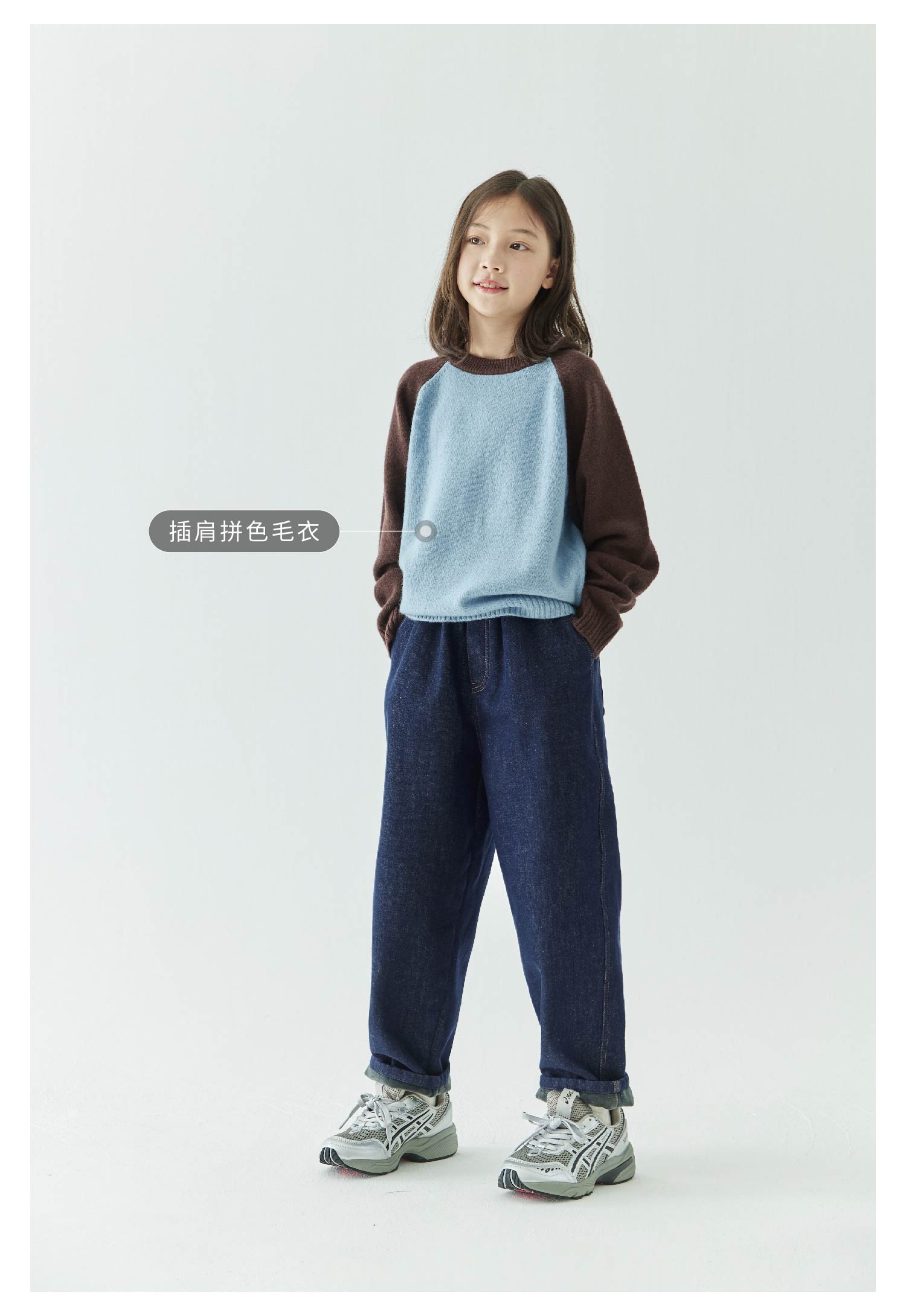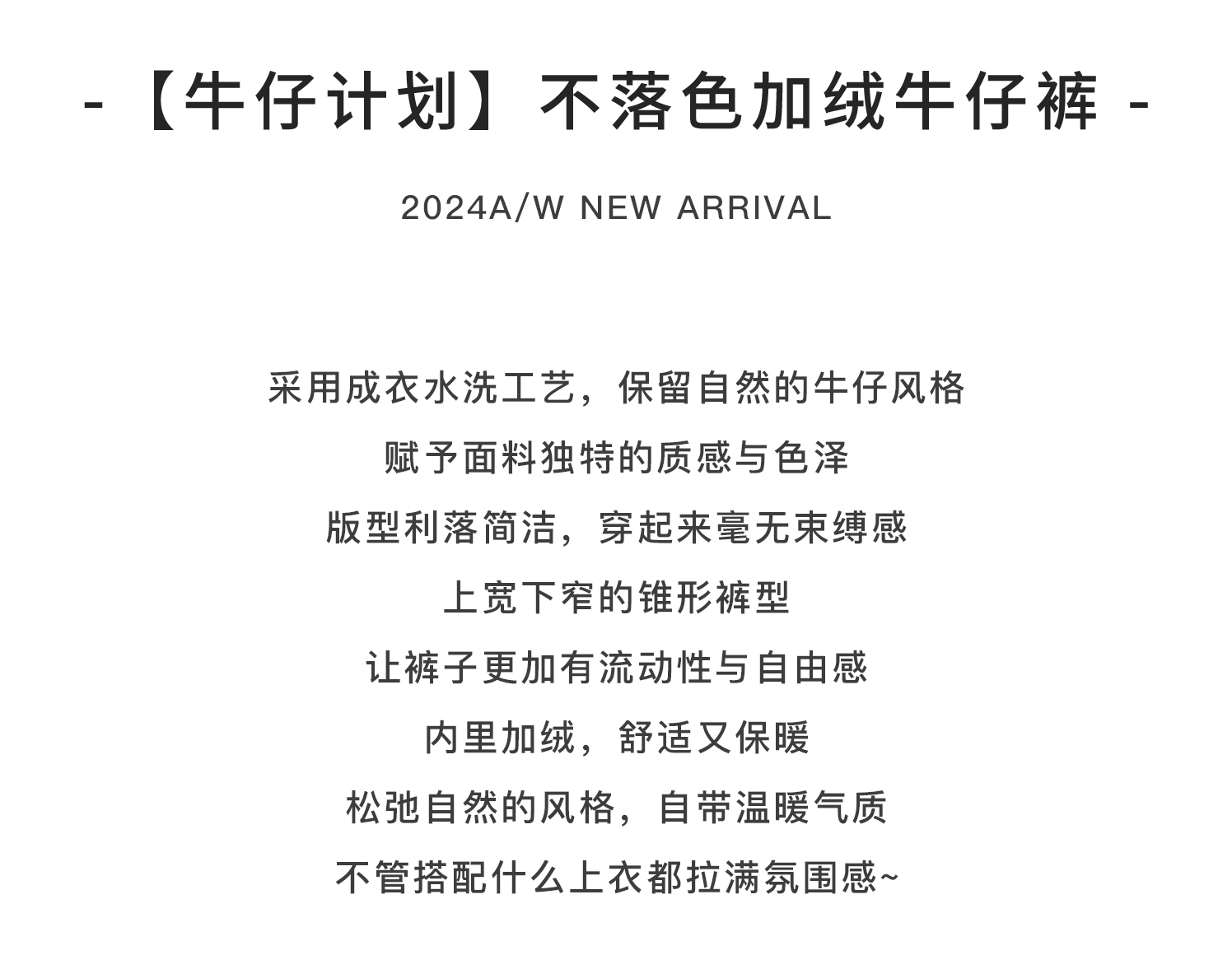 棵初2024年冬装新款不落色加绒牛仔裤中大童亲肤保暖锥形裤子
