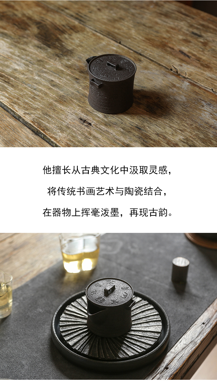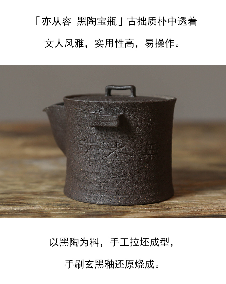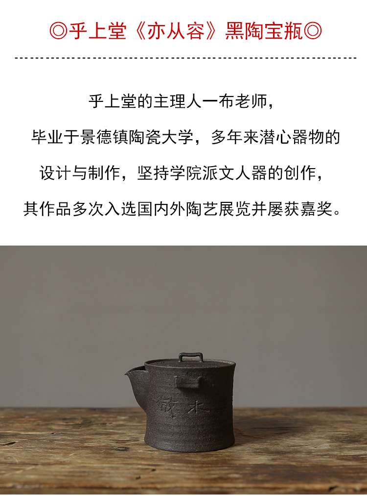 茶香记 景德镇乎上堂《亦从容》黑陶宝瓶140ml手工刻绘泡茶壶古拙