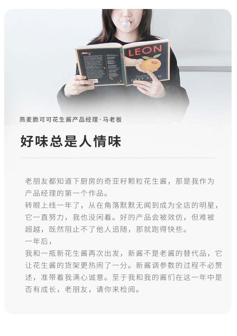 【品名】【超值2罐装】下厨房 奇亚籽颗粒花生酱/燕麦脆花生酱 膳食纤维 可抹面包 200g*2罐 【规格】 奇亚籽颗粒花生酱200g/罐 燕麦脆可可花生酱200g/罐 【产地】国内 【保质期】12个月 【发货包装】独立包装 【发货地】江苏 【发货快递】中通 【不发货区域】新疆、西藏、港澳台 【发货时效】48-72小时,周末节假日顺延 |