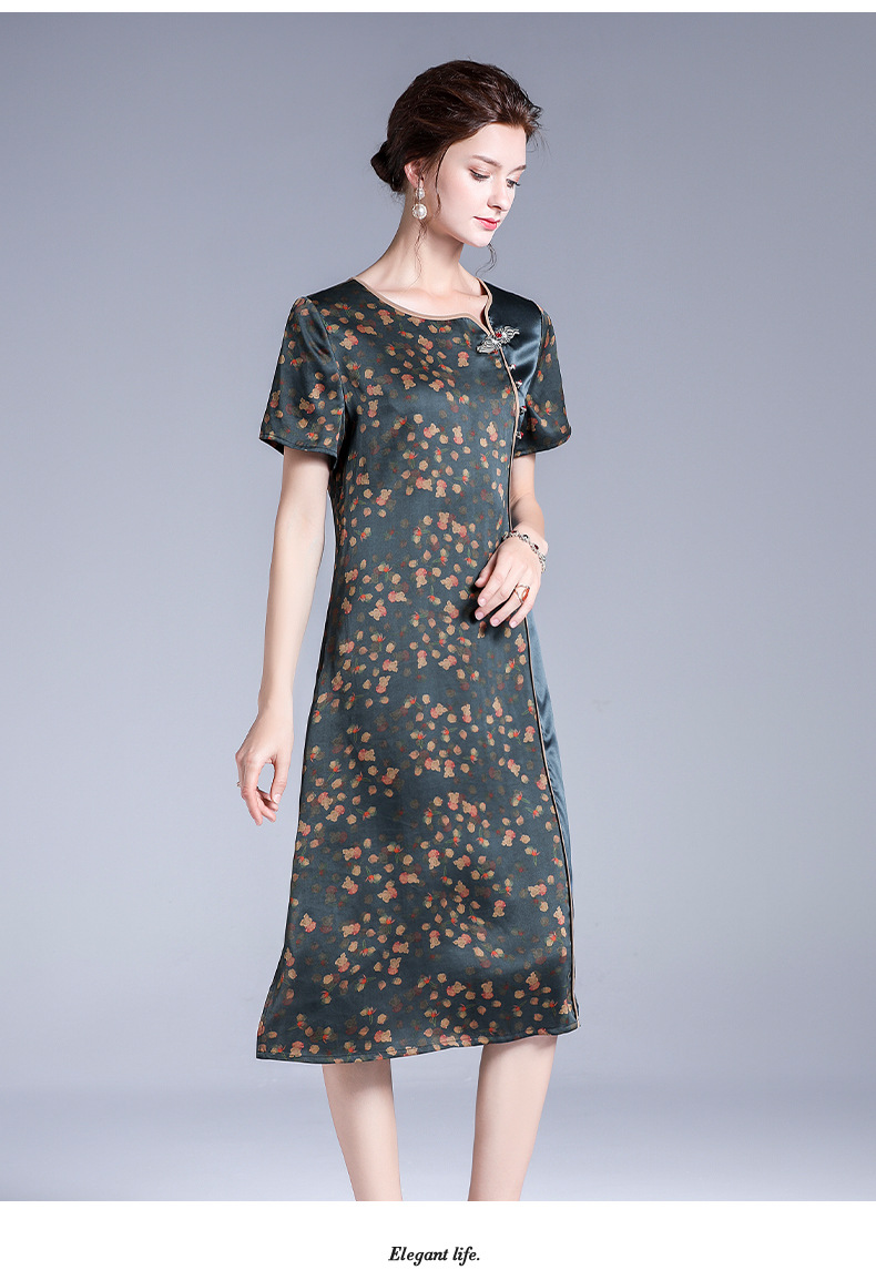 上海旗袍厂XT-20301-1香云纱真丝连衣裙