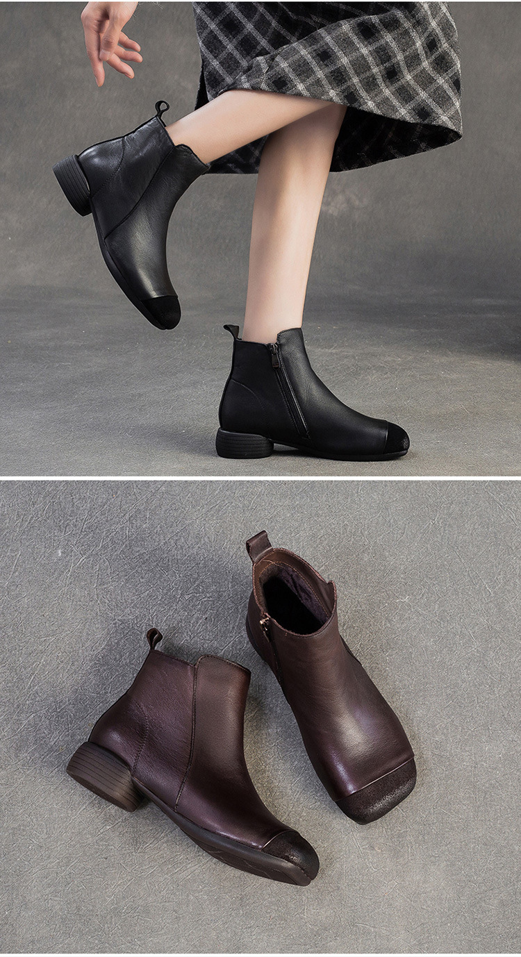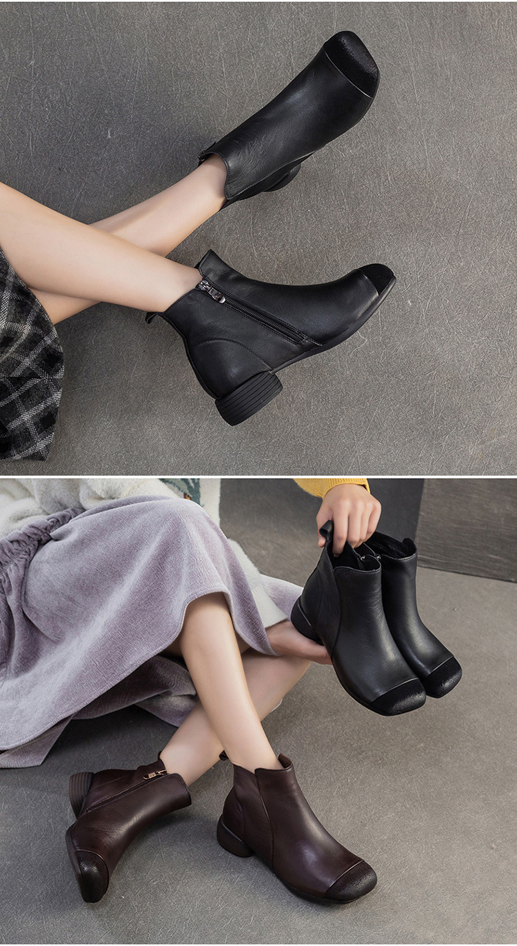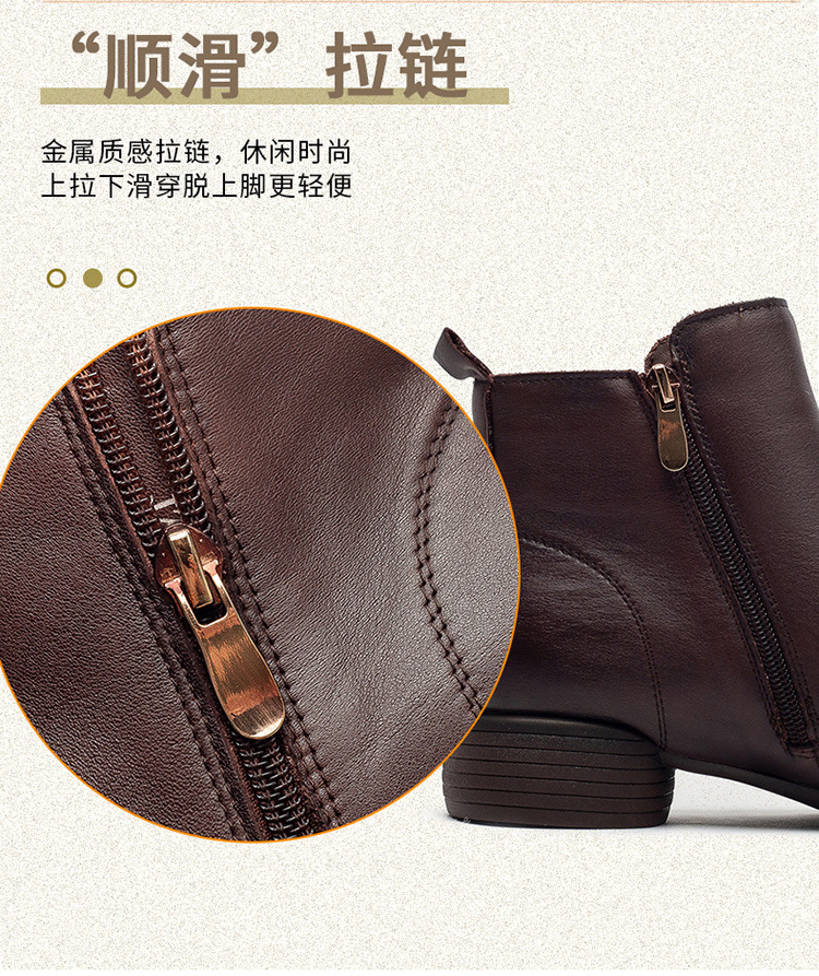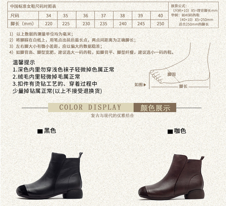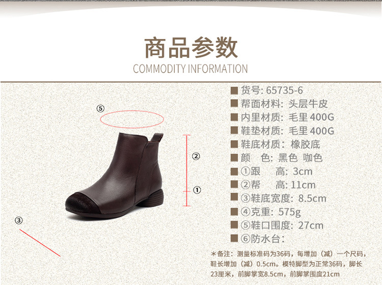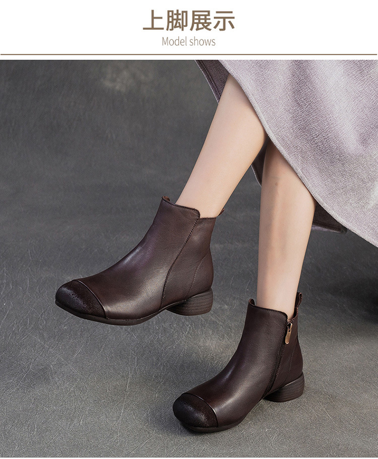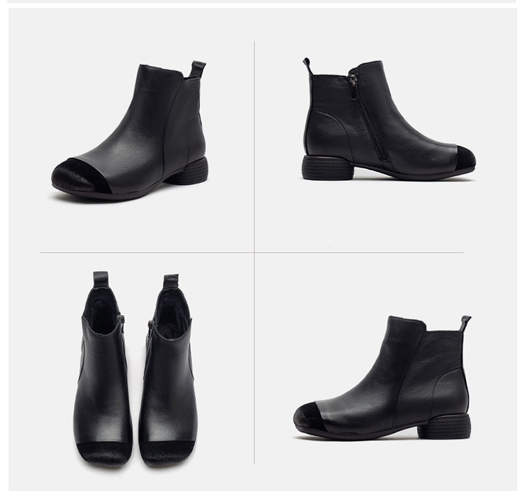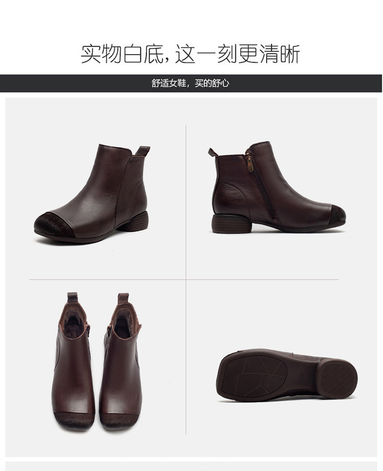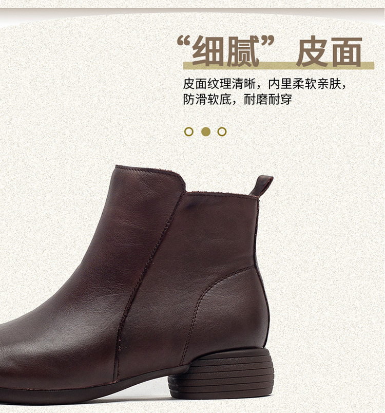 JZ65735-6 2025冬季新款加绒保暖头层牛皮复古粗跟短靴通勤棉鞋百搭女鞋